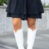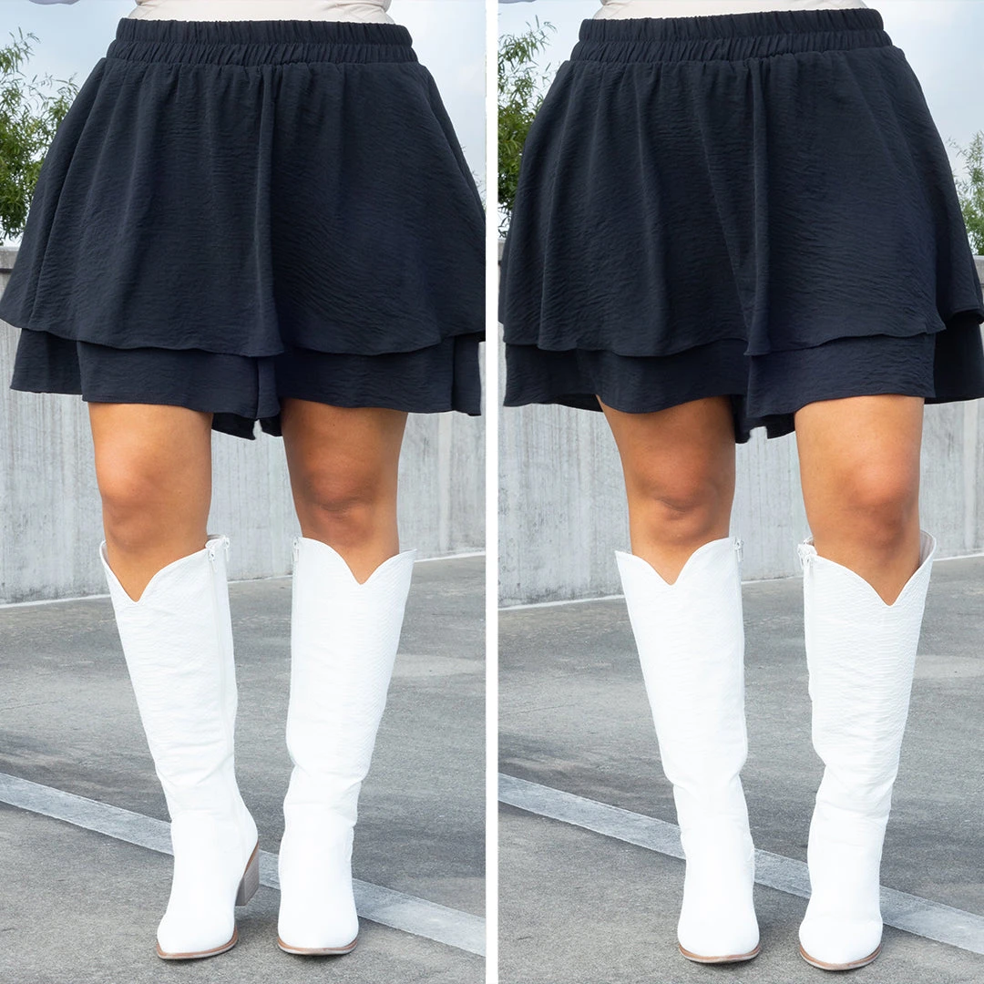 You will feel in perfect harmony with this skort! The black fabric gives this beauty a flirty feel and the layered look is so sweet! The elastic waistband will give you a comfy fit and the neutral color is easy to pair with anything! Style this with a fun top and some cute accessories for a perfect look!Â