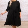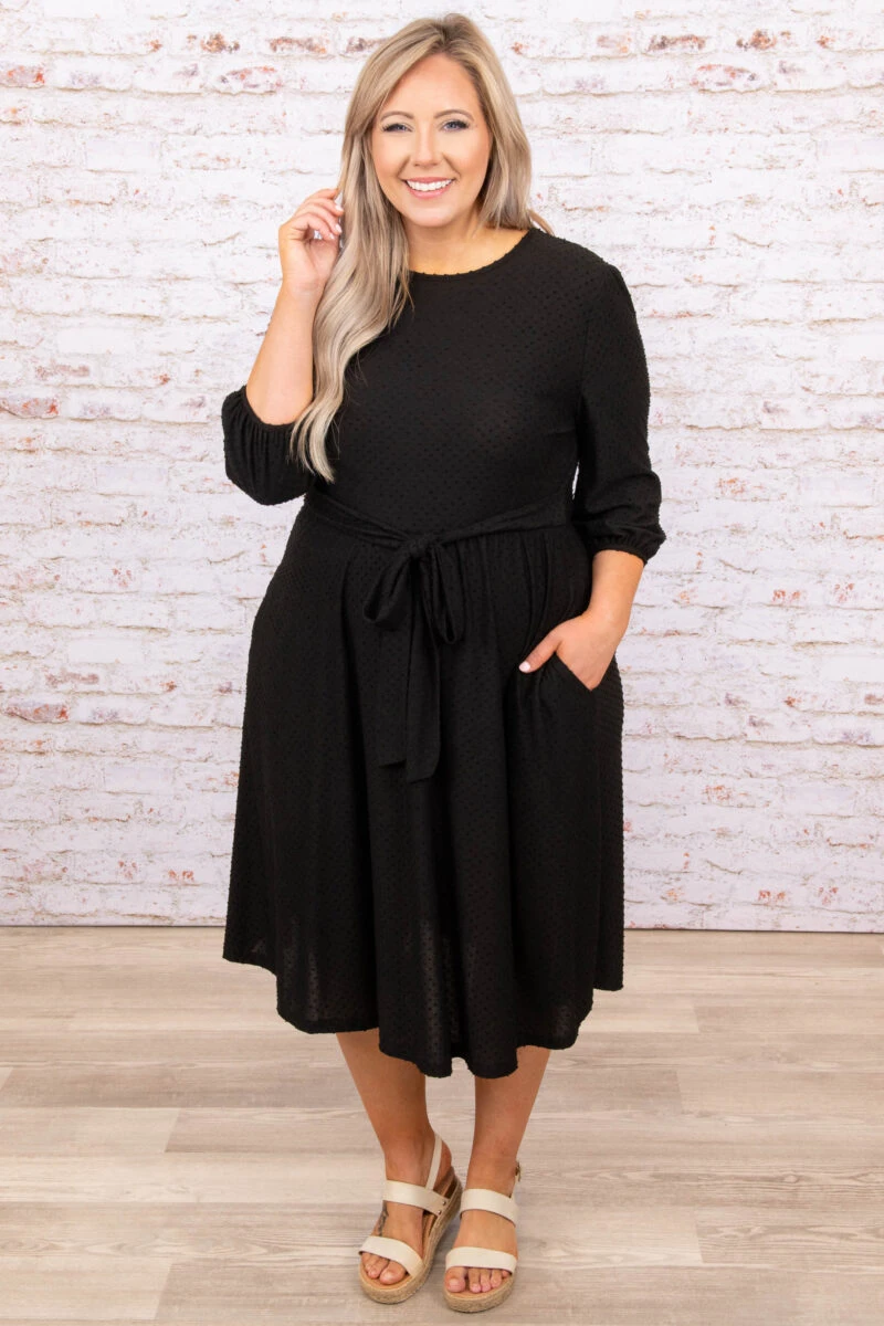 This dress is perfect for every occasion! This dress has a simple monotoned polka dot pattern with neutral colors you can style for every occasion! It’s comfortable for all-day wear, has a flowy fit, and features the cutest tied waistline we adore! Pair this dress with wedges or sandals for an effortlessly chic look!Â