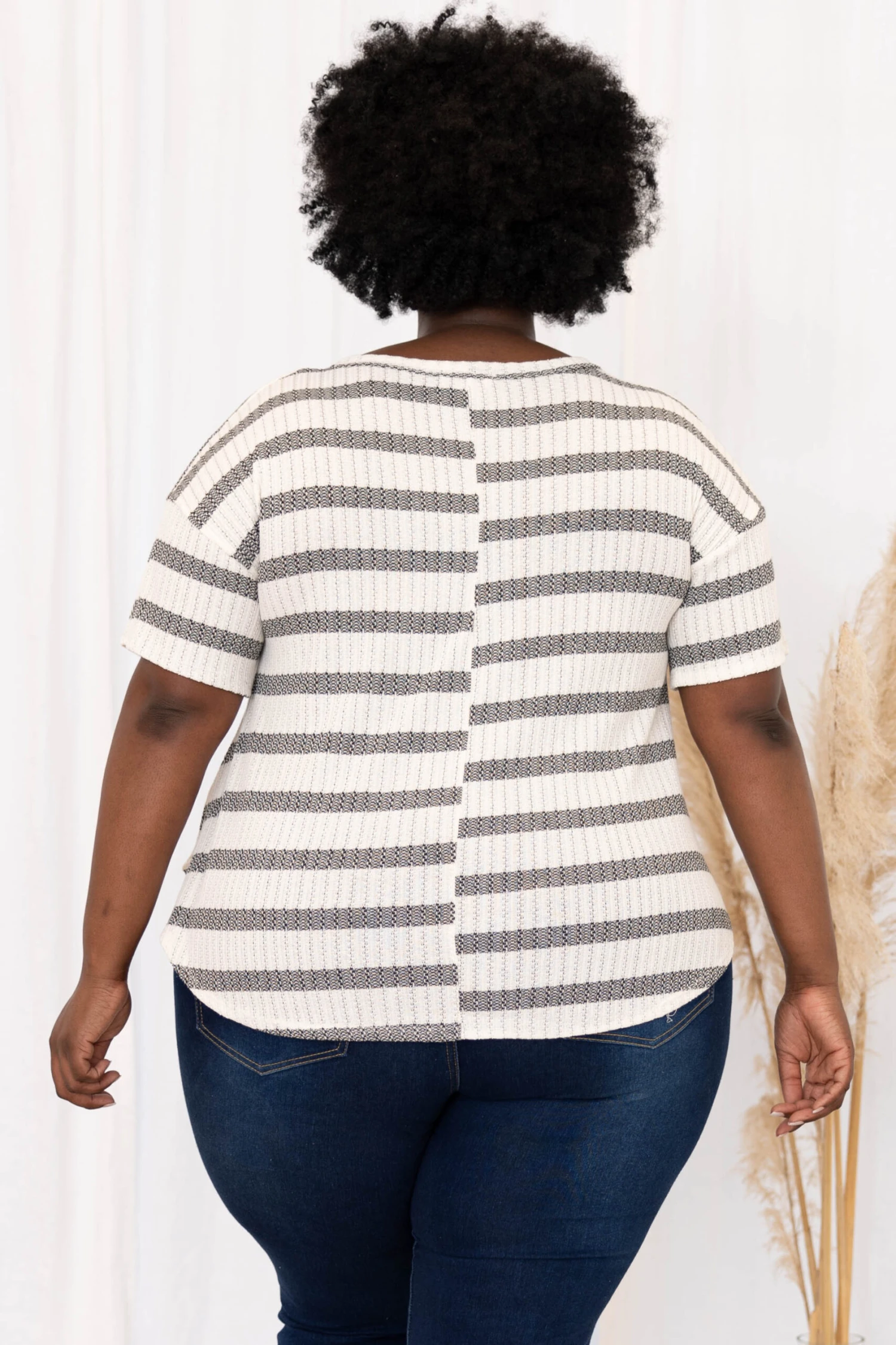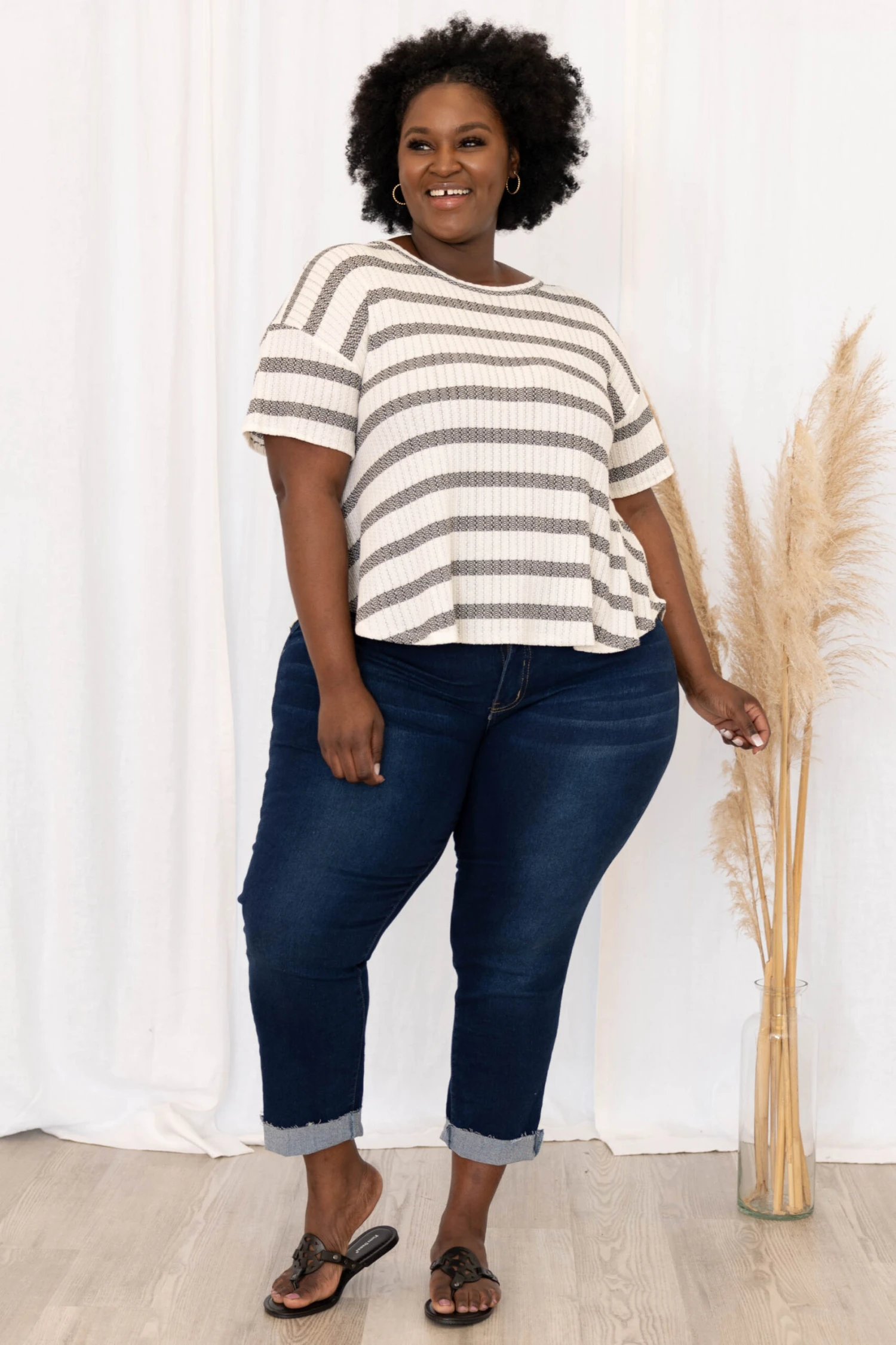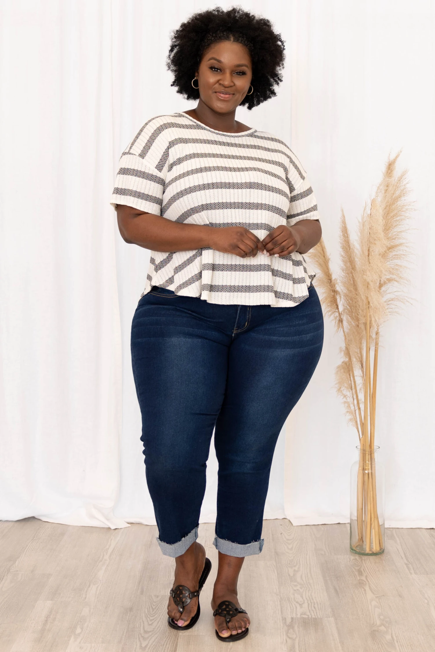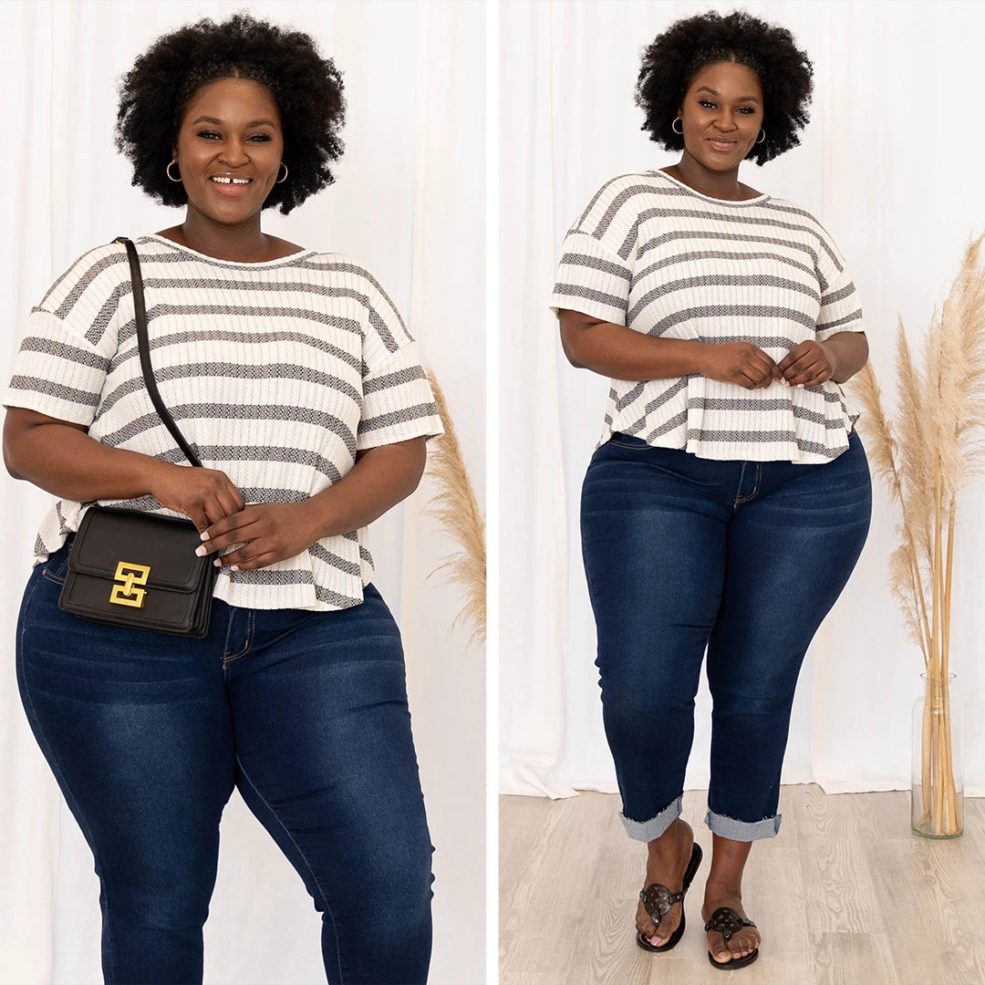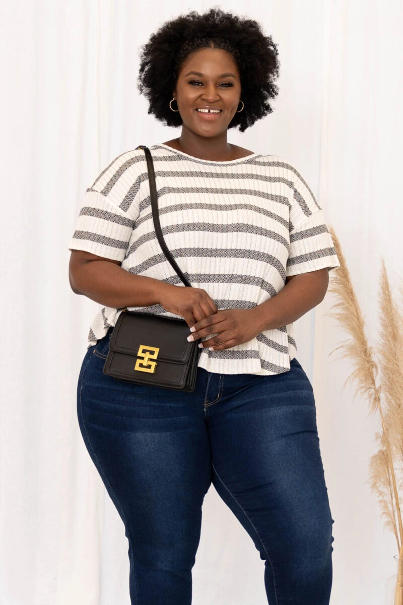Get the perfect top for perfect weather! The knit fabric of this top is so comfy for all day wear and the horizontal stripes are amazing! You will want to wear this top everywhere and we won’t blame you! We love it styled with some skinnies and sandals to look effortlessly chic!