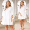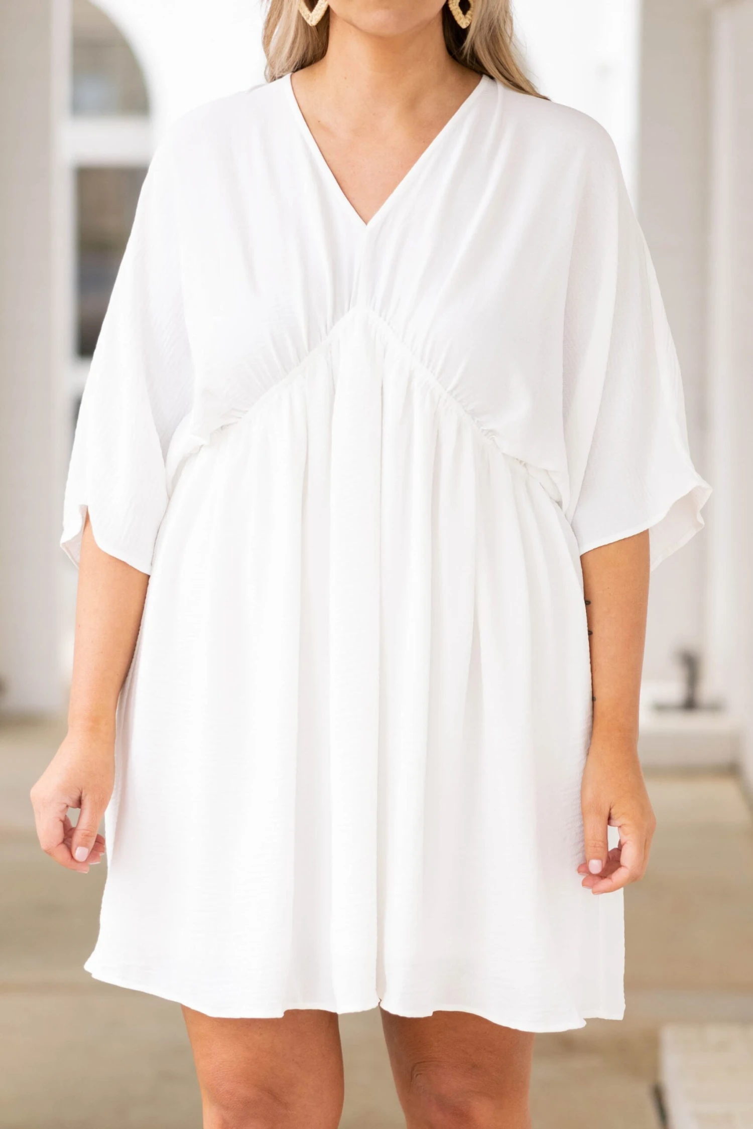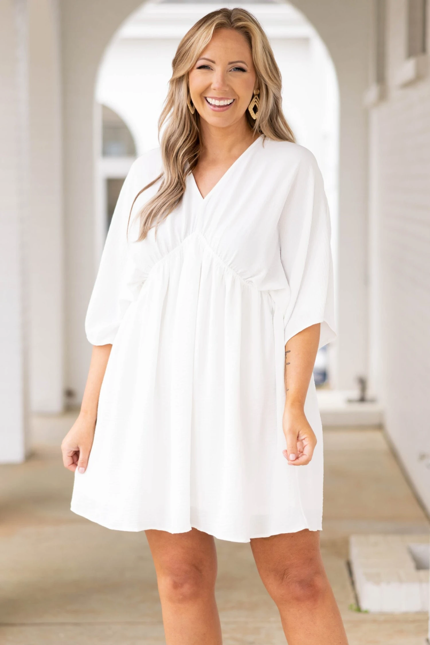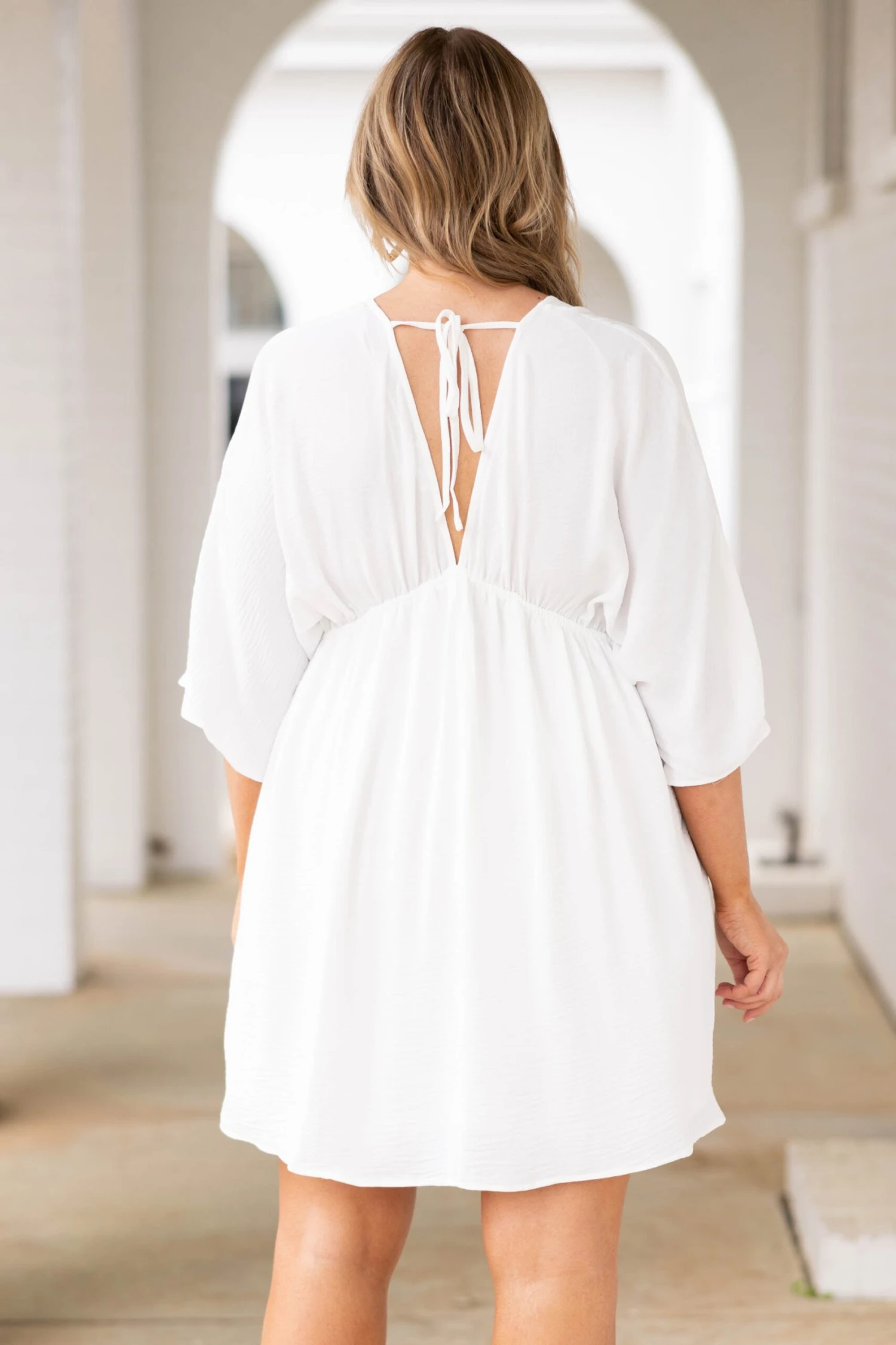The pleasure will be all yours in this chic dress! This dress features a classic ivory color with a trendy batwing sleeve design! The flowy silhouette looks great on everyone and is perfect for the season! Its lightweight design makes it perfect for summer events and the warm weather ahead. We see this dress paired with heels or wedges for your next event!