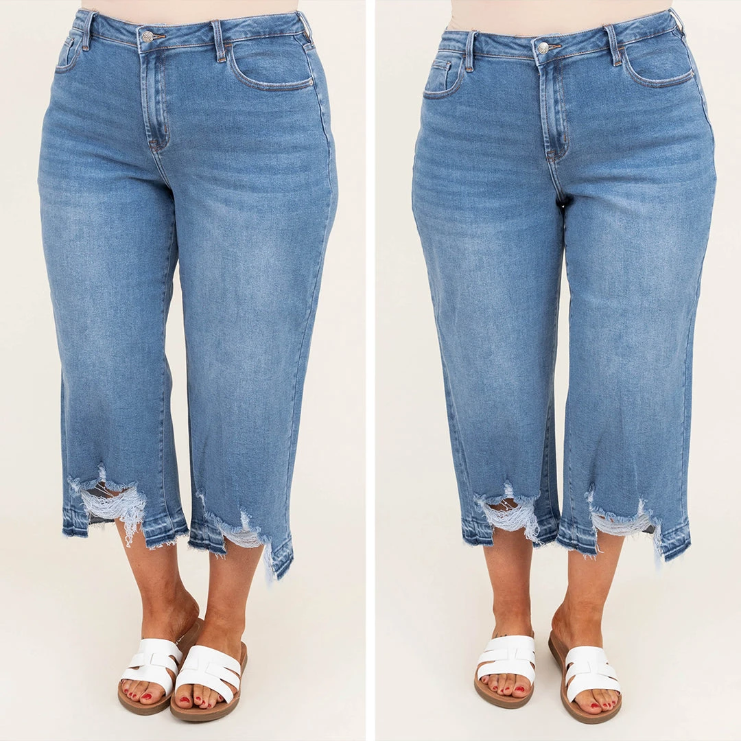 These jeans are the real deal! The cropped style is so in right now and the distressing is super chic! These look so good with any top and some fun shoes for a easy everyday look!