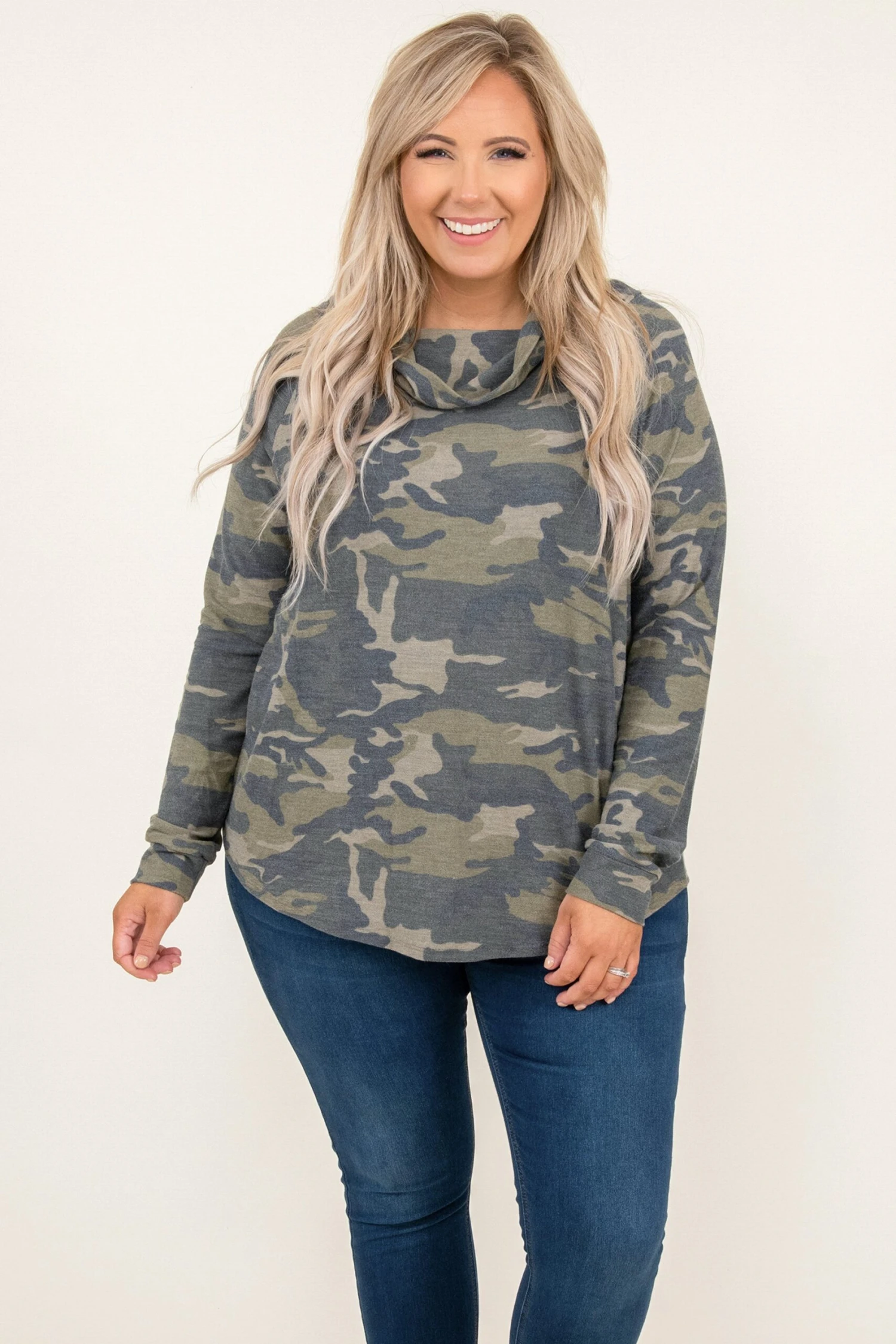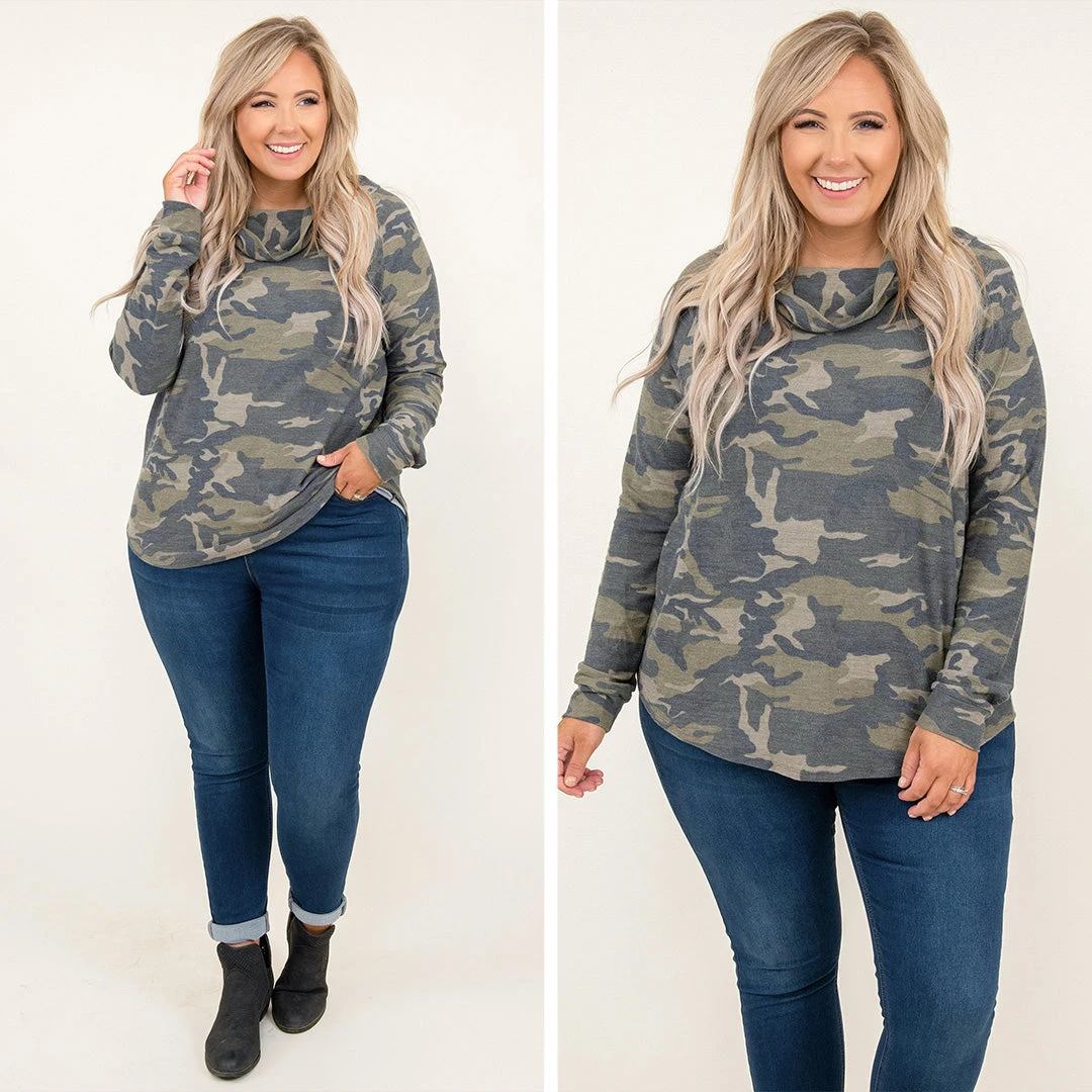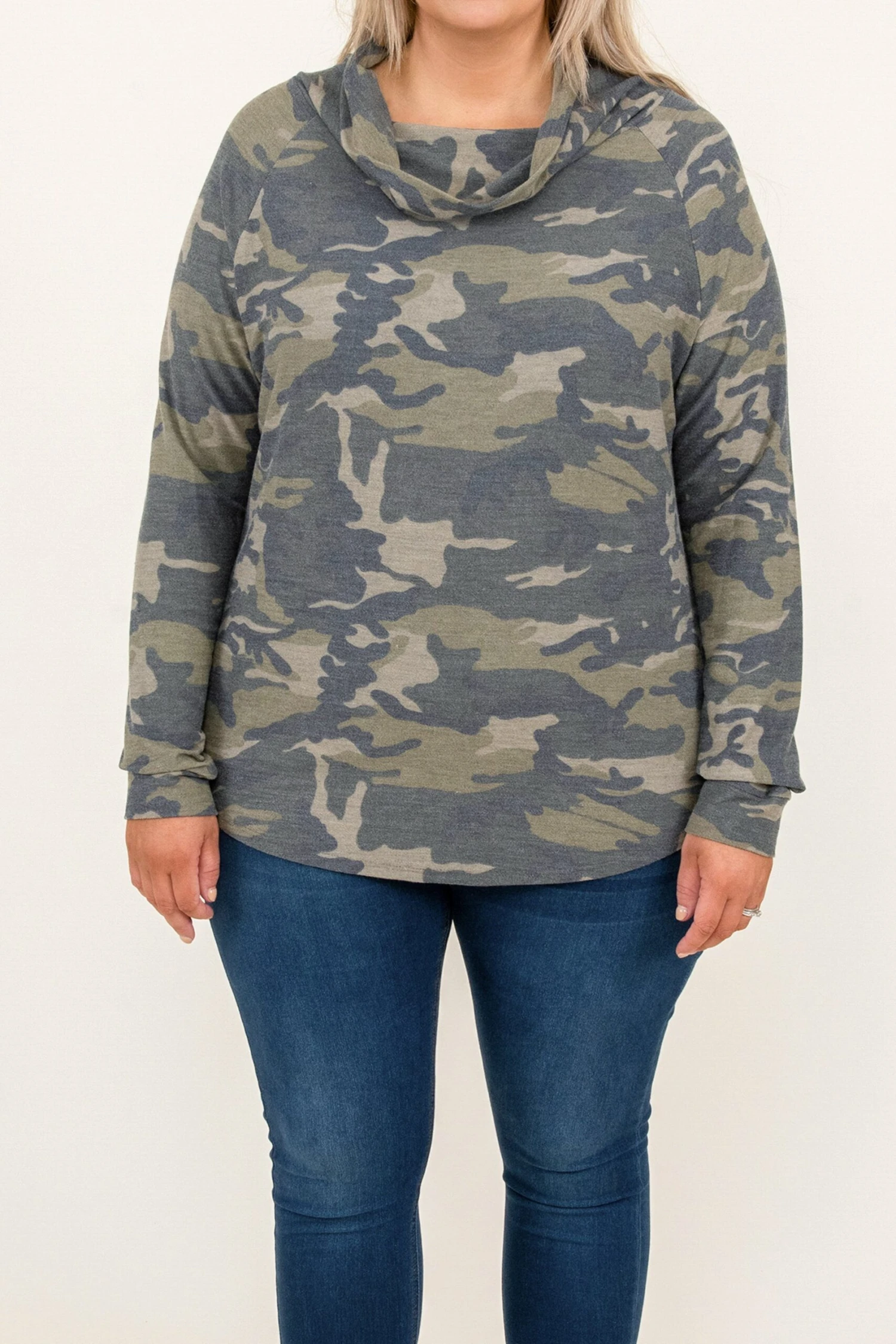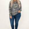 The truth is you need this top! This top has a trendy camo print, the softest inner lining, and ample stretch to allow comfort all day long! This top also serves as a great layering piece! Pair with a cozy vest and jeans for a comfortable, chic look!Â