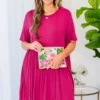 The Sawyer dress is the baby doll dress you’ve been searching for!!! It’s a must have for the season! It has a beautiful berry color and a super flattering fit. It’s light and breezy, making it perfect for warmer days and nights! Style it with a layered necklace and wedges to complete the look!