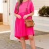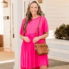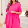 The Sawyer dress is the baby doll dress you’ve been searching for!!! It’s a must have for the season! It has a beautiful fuchsia color and a super flattering fit. It’s light and breezy, making it perfect for warmer days and nights! Style it with cute accessories and sandals to complete the look!