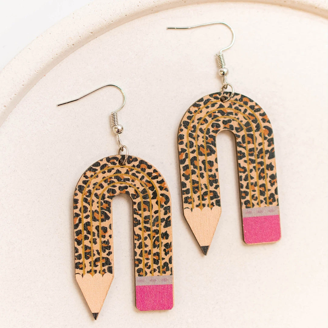 You will be the sharpest person in the room in these earrings! The pencil design is so cute and the geometric shape is so stylish! We love the leopard print and dangle style that ensures that these will be seen! Style them with a fun top and skinnies for a super cute look!
