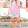 The Sugar Top is perfect for any season! Crafted with a classic stripe pattern, it’s comfortable enough for all day wear, while the soft white and pink colors are accented by a contrasting pop of color along the hem of the sleeve for a subtle yet stylish look!