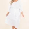 Listen to the voice within and get this fabulous dress! The faux buttons on the front are so cute and the tie at the waist brings attention to all the right areas! We are loving the crepe style fabric that makes this dress perfect for warmer weather! Pair it with some fun accessories and shoes for the perfect look!Â