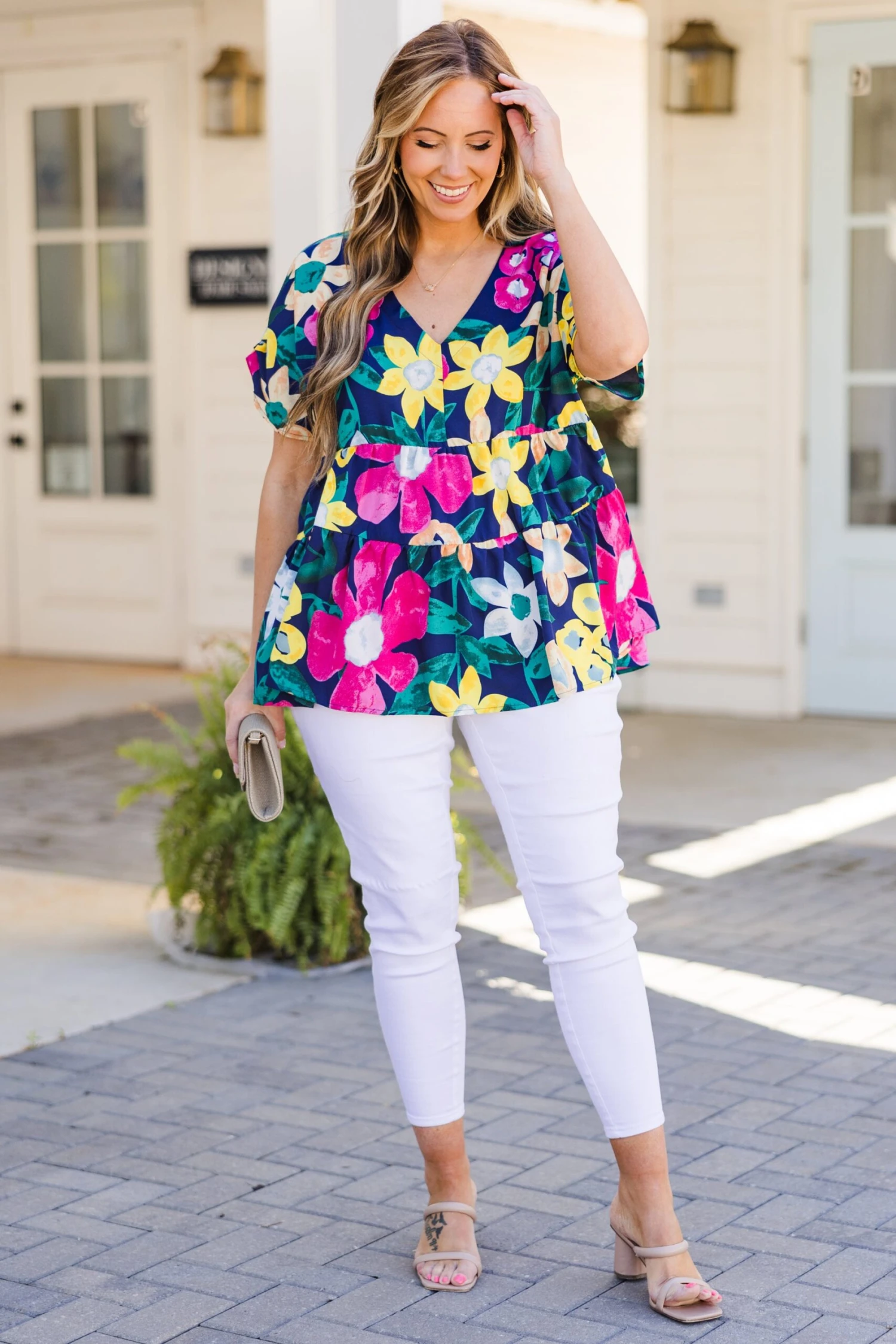 Every day will be a good day in this FAB top! It features a gorgeous navy color mix that is so sweet! It has a beautiful babydoll design with a lovely floral pattern that is just in time for the season! This top will make you stand out in a crowd, making you feel confident and stylish!