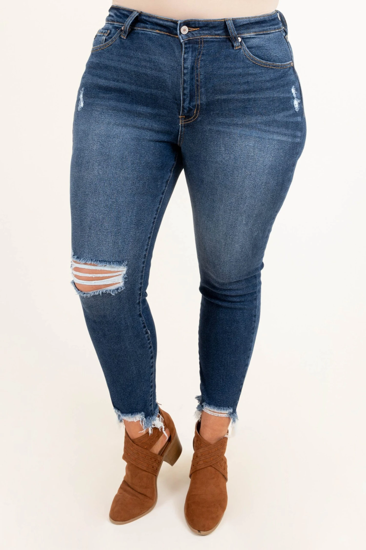 Things are sure to go your way when you’re wearing these jeans! These jeans have a trendy dark wash fabric you can style for every occasion! They’re comfortable for all day wear, have a figure-flattering fit, and feature the cutest distressing! Simply, wear these jeans with a flowy top and wedges for an effortlessly chic look!Â