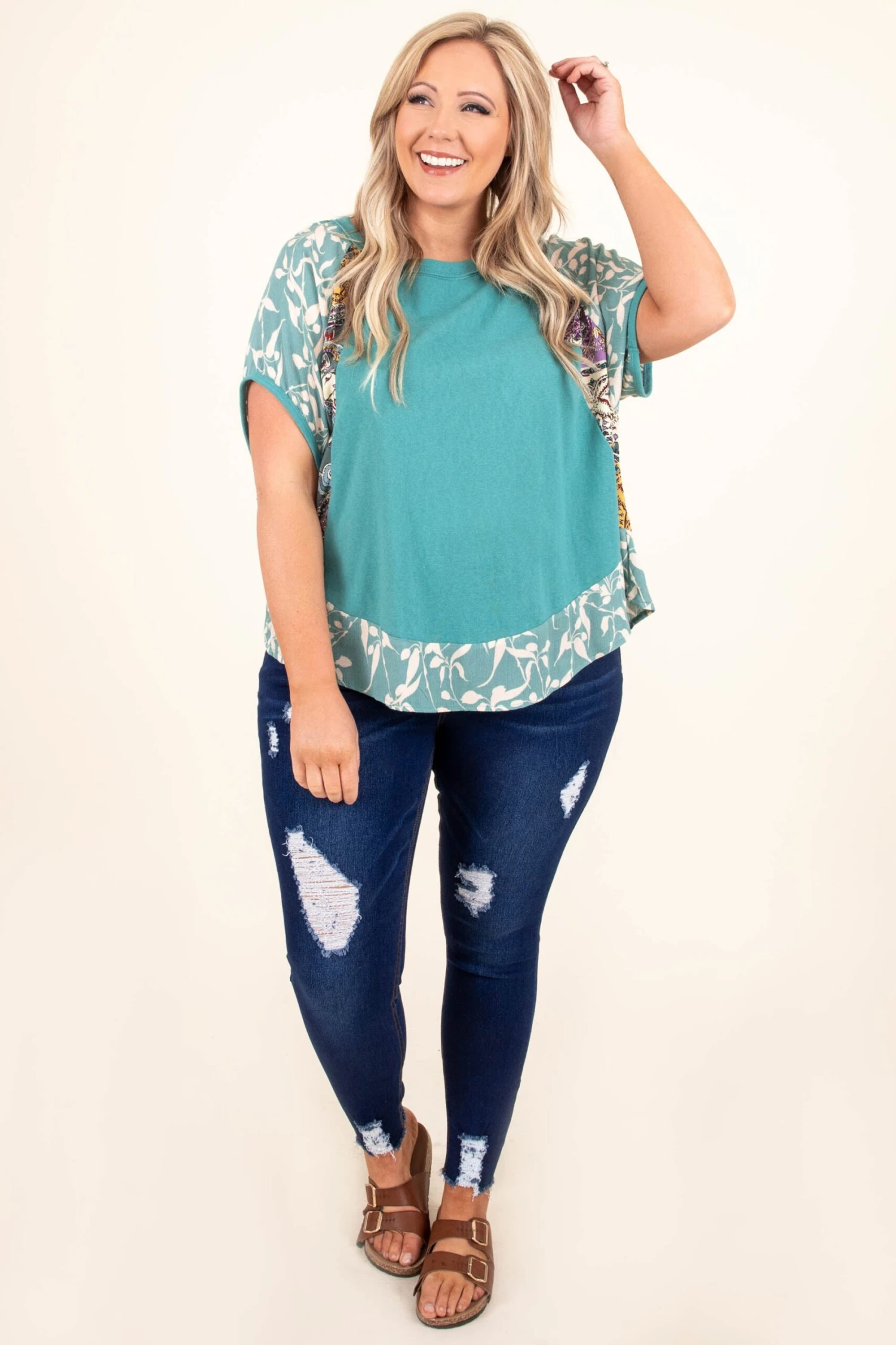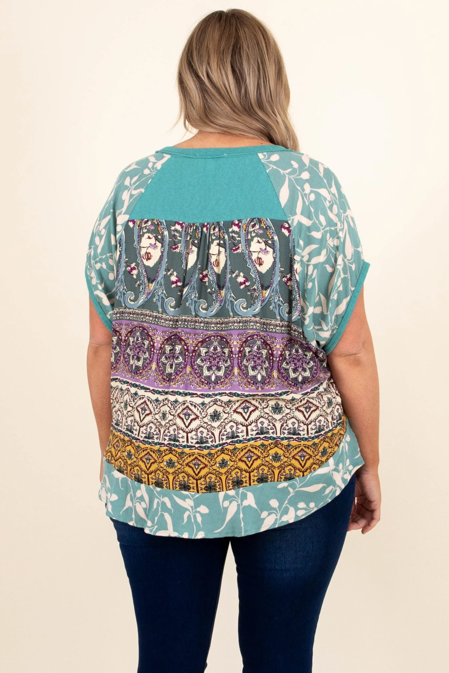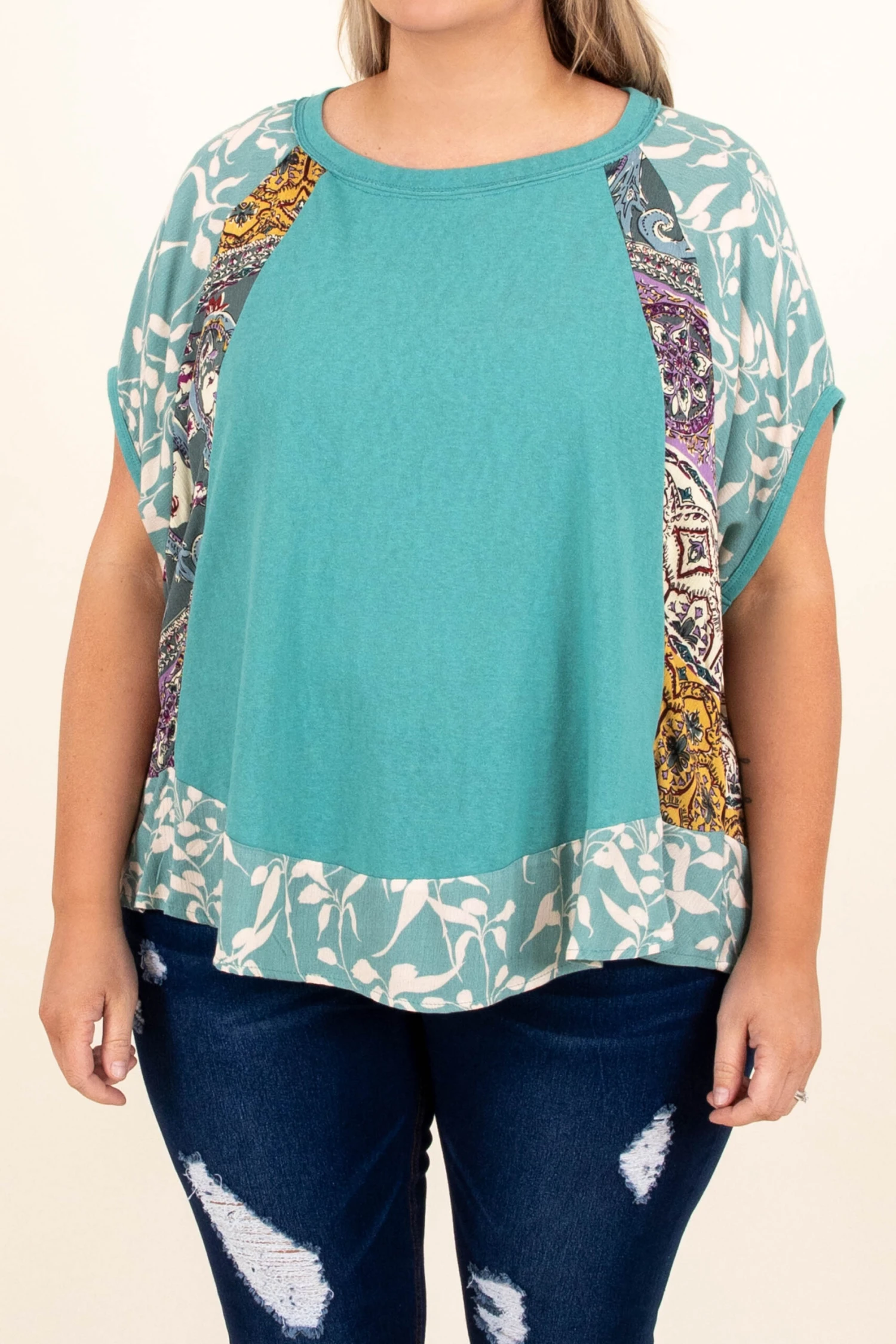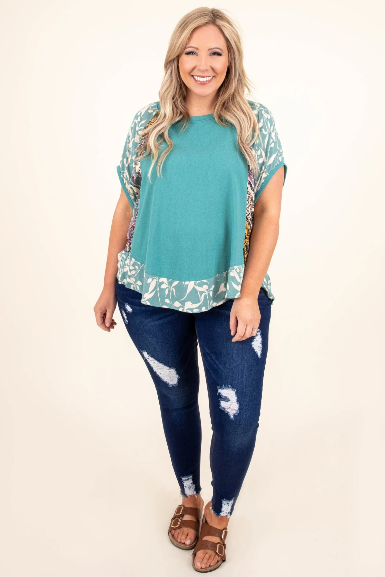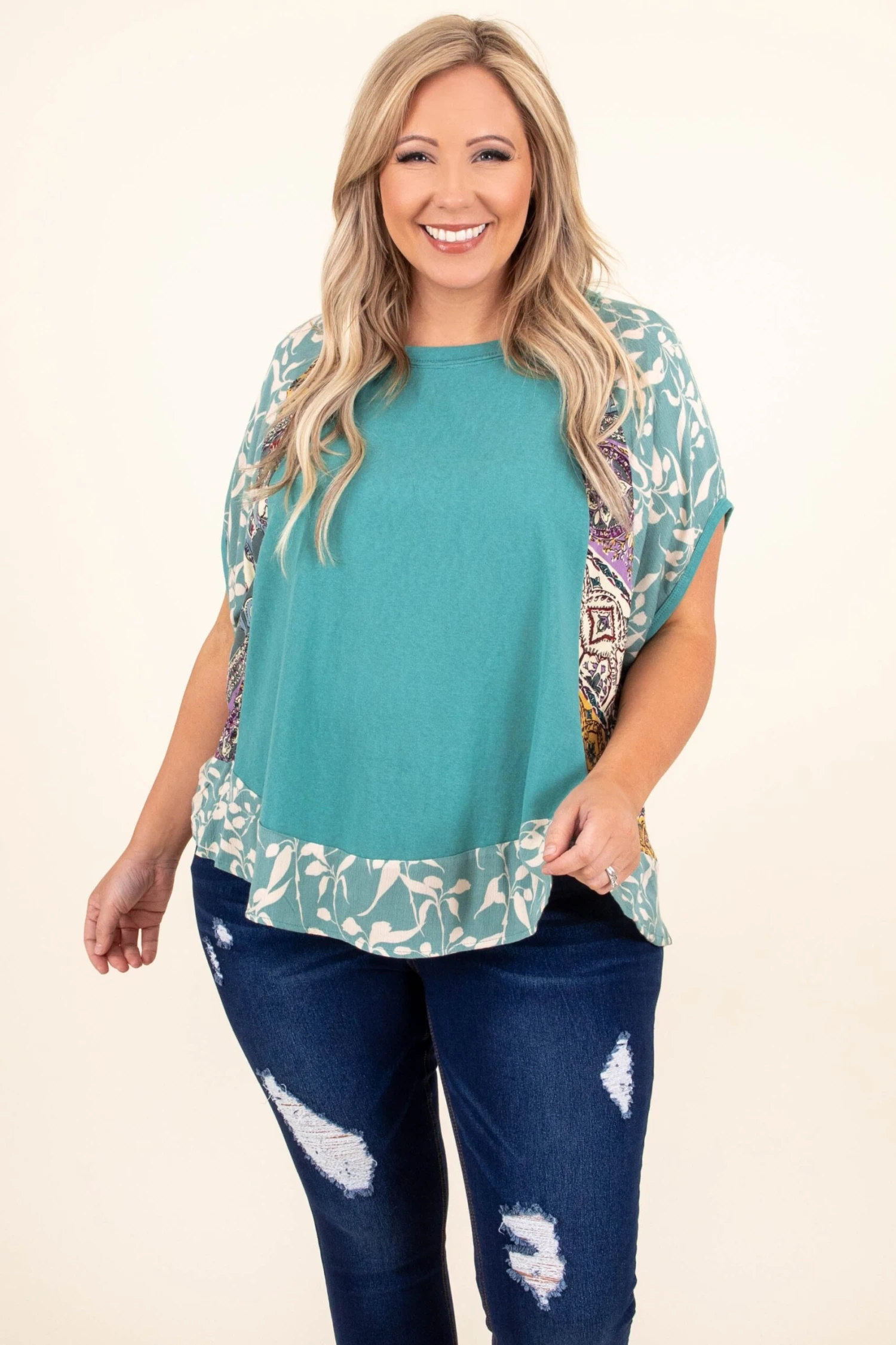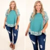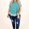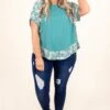 Put this fabulous top on and embrace your me moment! This cutie has a fab paisley design on the back and a solid green front that we love! The ruffle hem is so sweet and the dolman sleeves are so trendy! Pair this with some skinnies and sandals for the perfect look!