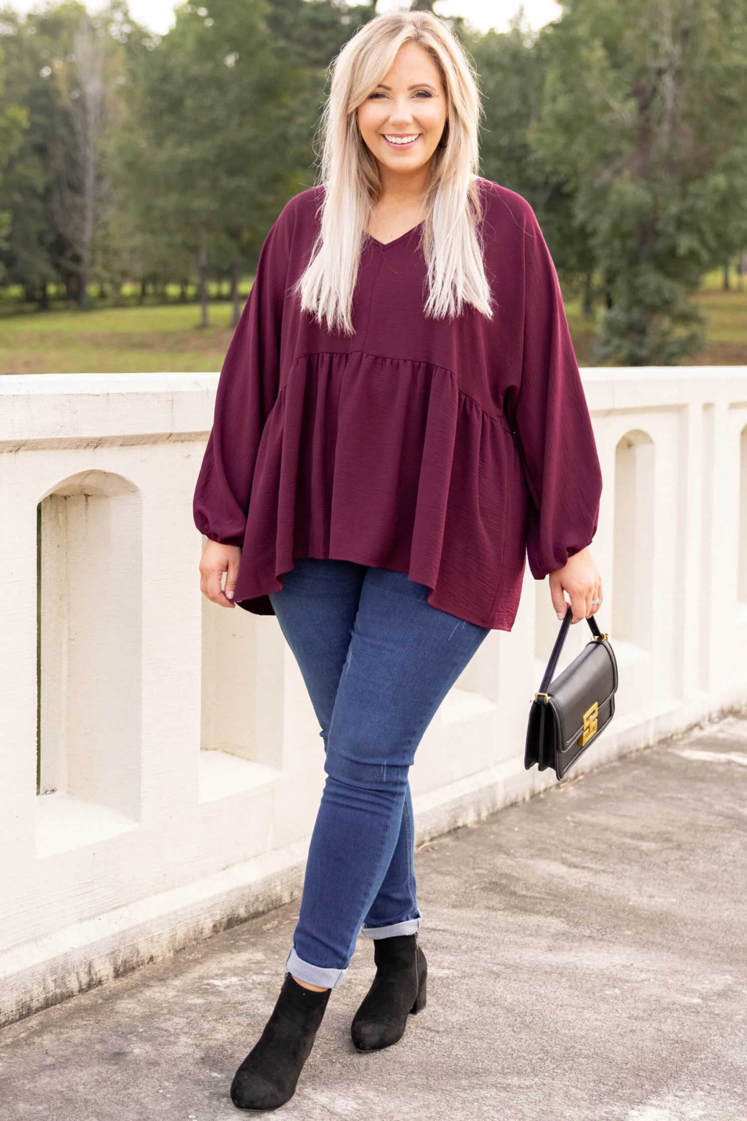 You’ll be exactly who you are supposed to be in this chic top!  It has a solid burgundy color with a fun and flirty baby doll fit to flatter your figure! It’s comfortable for all-day wear, is easy to style with your favorite shoes and accessories, and is just what your wardrobe needs for the season! Pair this top with skinnies or leggings for an effortlessly chic look!
