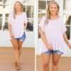 There’s always time to look beautiful in this tunic! This tunic has a solid lavender color that’s perfect for the season! It’s comfortable for all day wear, has a flowy fit to flatter your figure, and features the cutest tiered ruffles for the ultimate design! Simply style this top with skinnies or shorts for an effortlessly chic look!Â