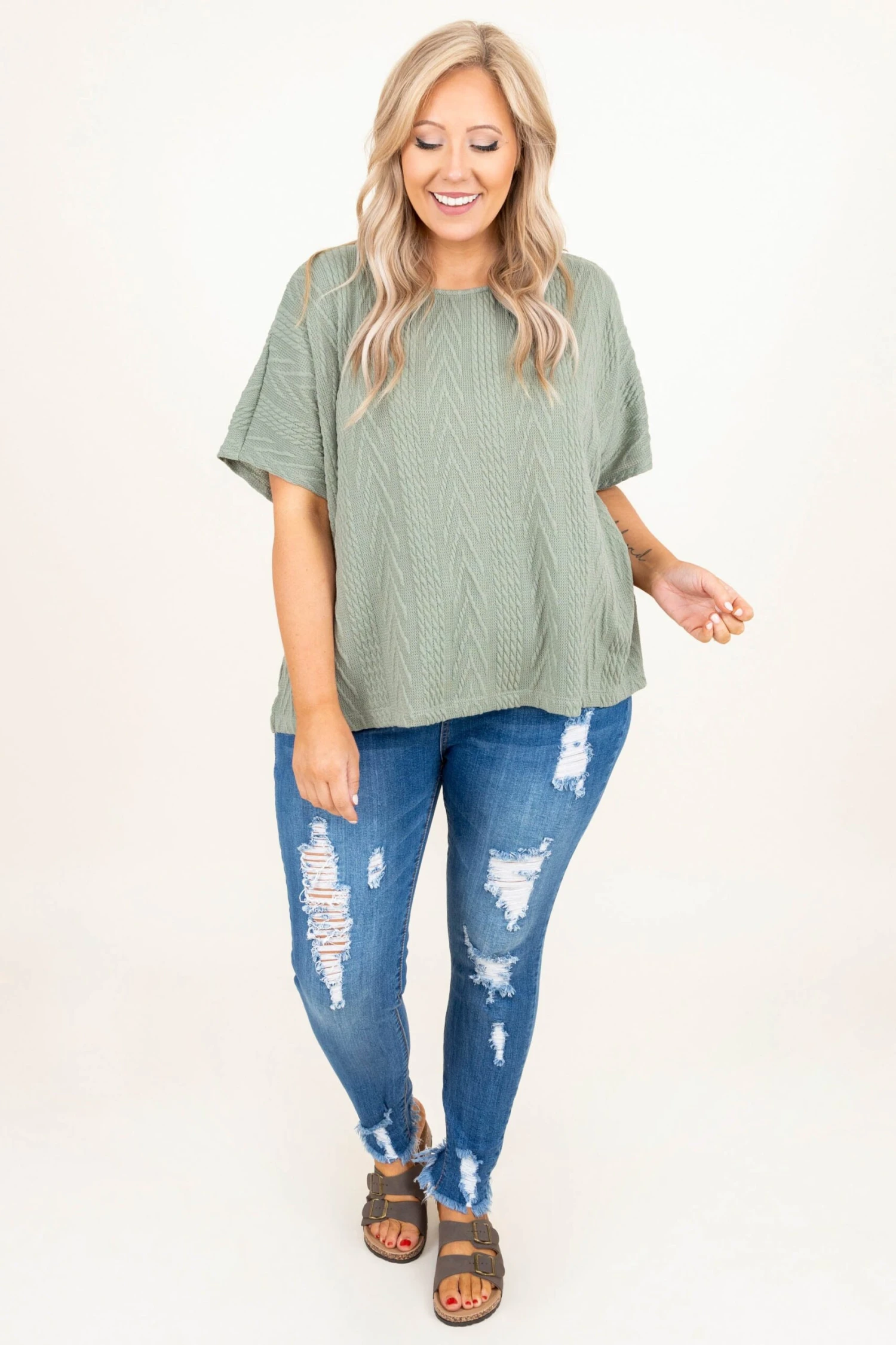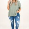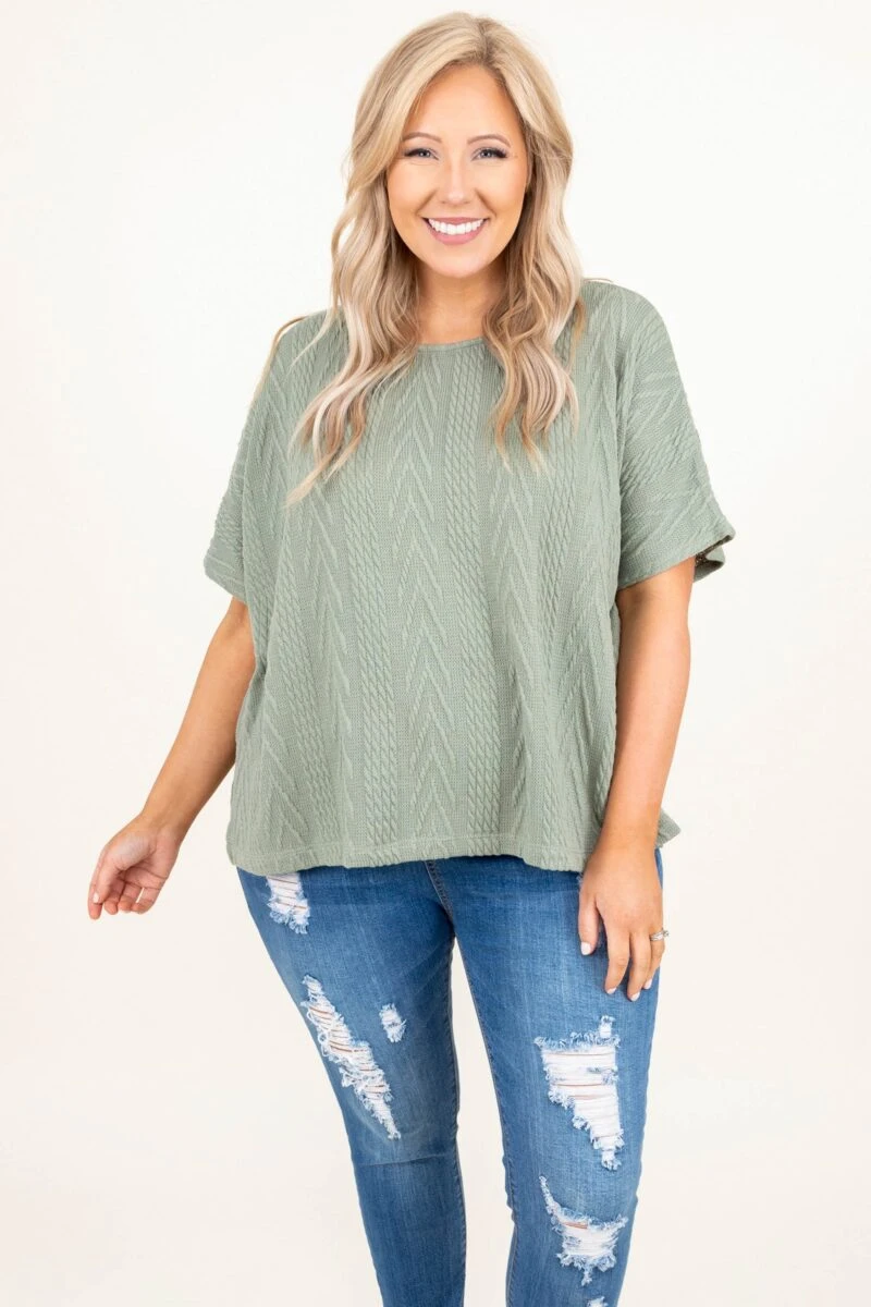 The timing is just right for you to get this top! We love the olive color and knit fabric design. Pair this cutie with your fave skinny jeans and sandals for a casual chic look this season!Â