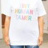 Tiny human tamers, you have the best job in the world! Use this adorable tee to show it loud and proud! We love the white color that can match anything and the fun graphic is so cute! Style this with jean shorts and sandals for a super cute look!