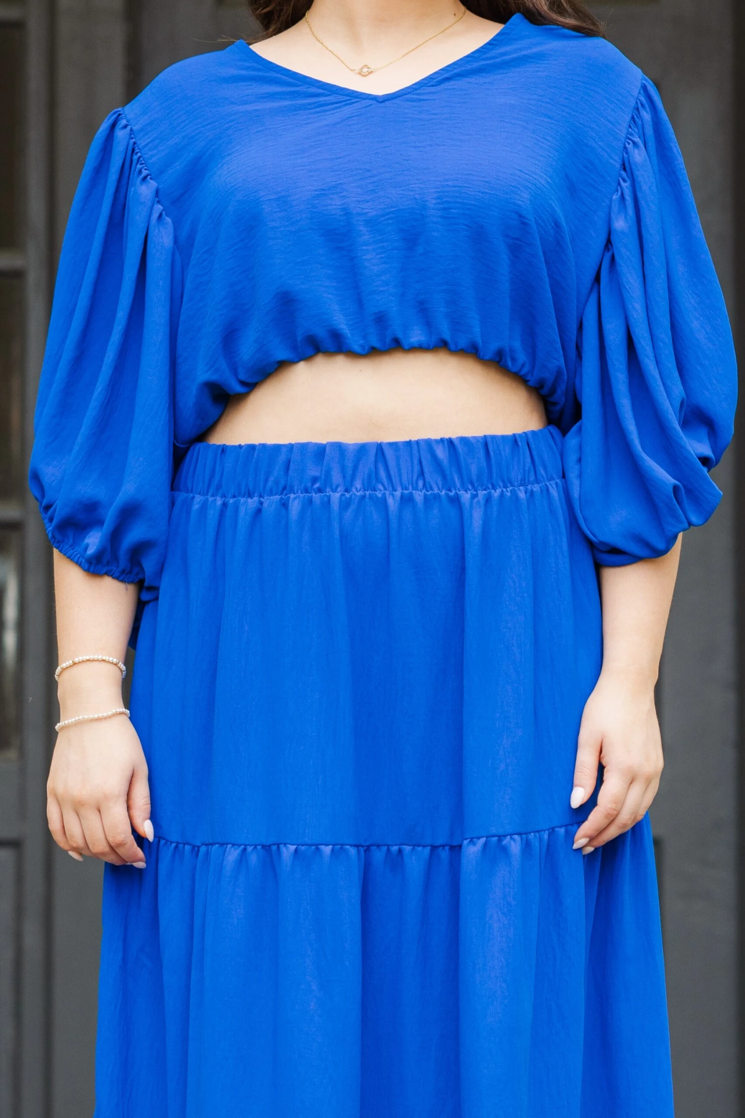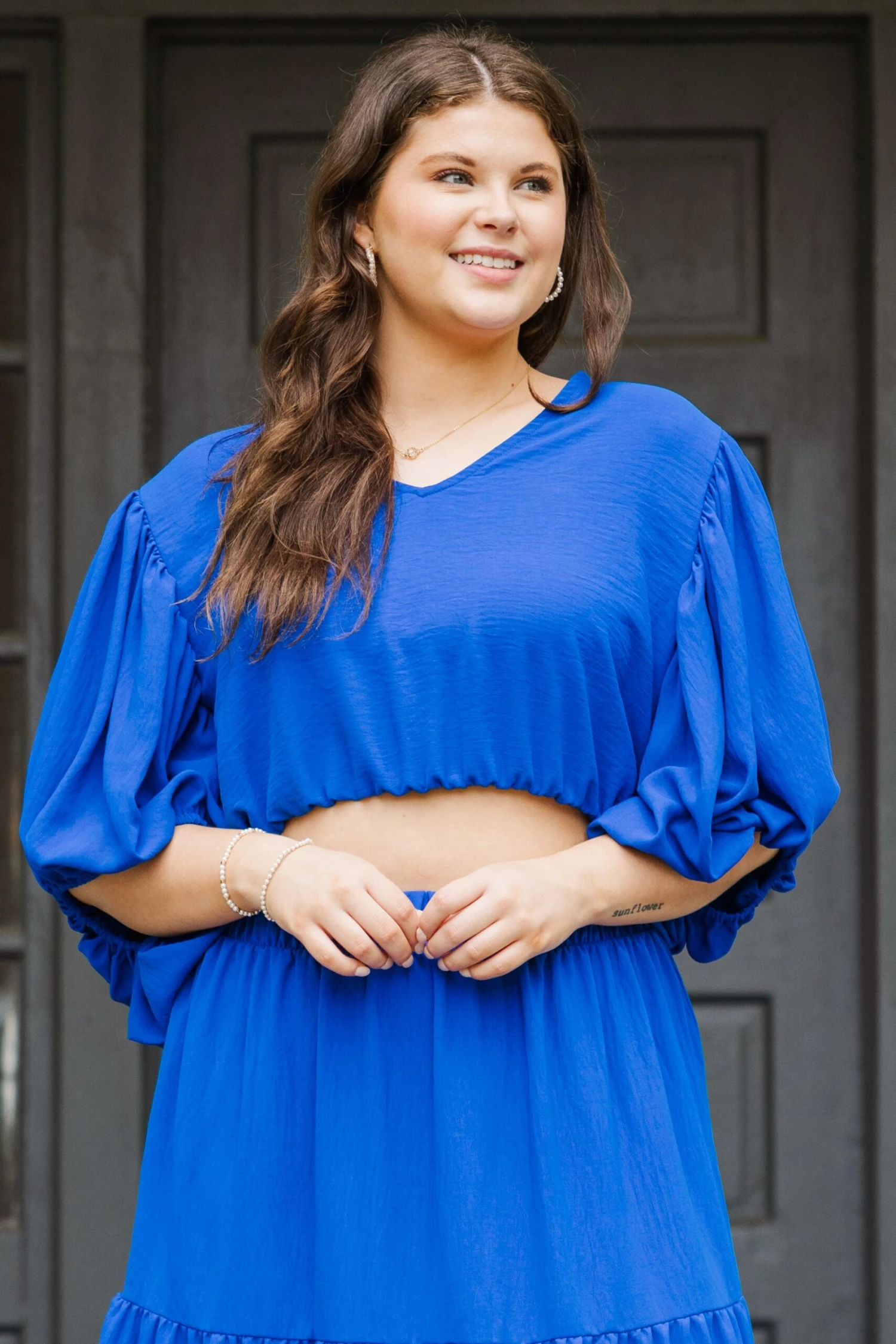 Let this beauty inspire you for the season! This top is perfect for all occasions! The gorgeous royal blue color, bubble sleeves and cropped fit ensure that you will look and feel your best! Feel comfortable and confident in this FAB top!