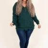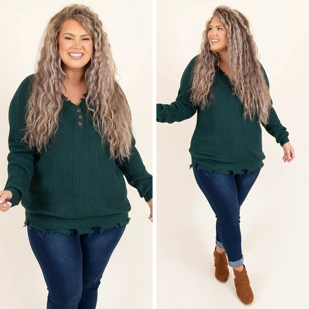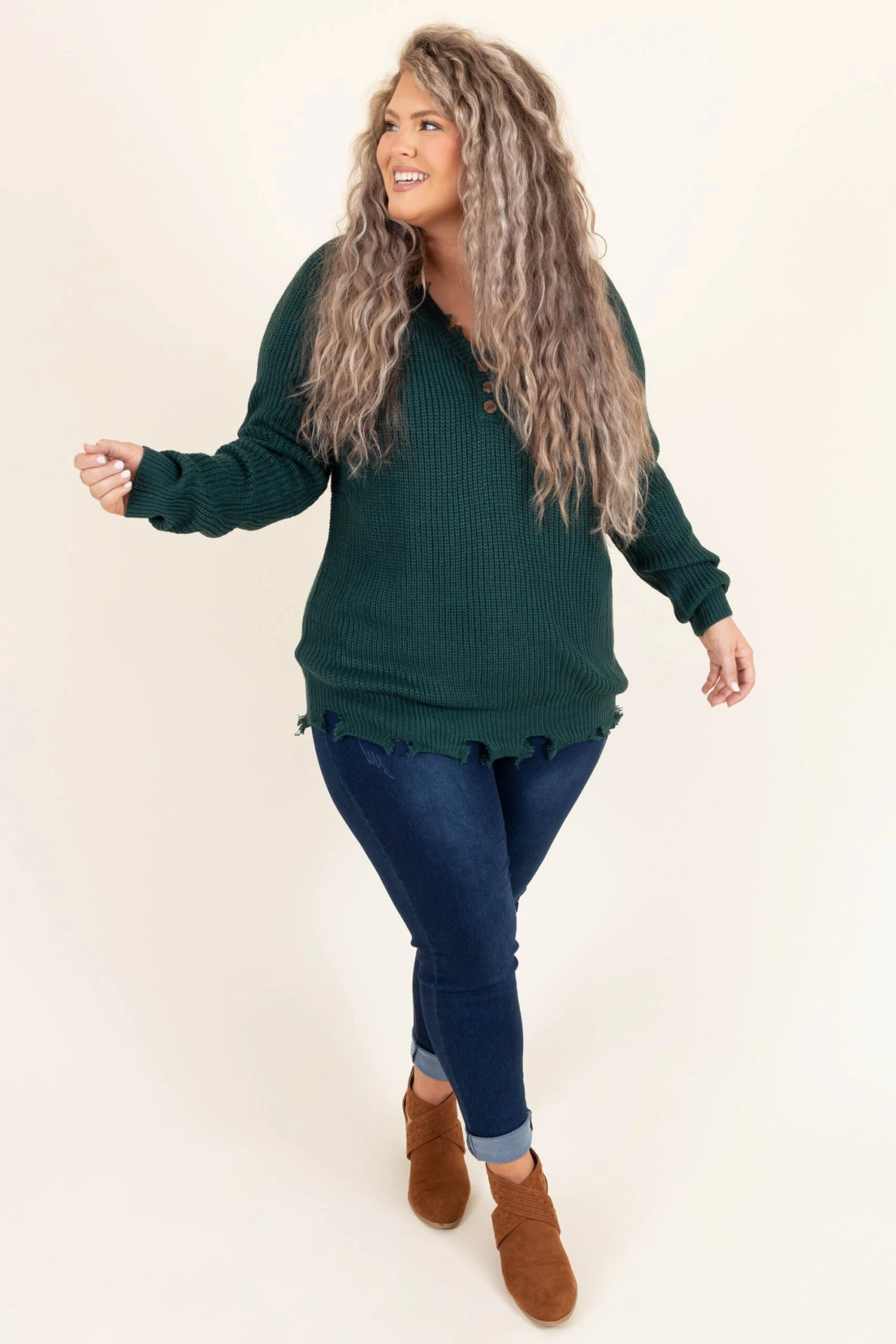 Everyone will want to be near you in this beautiful sweater! The bold hunter green color and sweet frayed neckline and hemline is SO chic! This sweater has a figure flattering fit and is so comfy for all day wear! Simply style this sweater with some skinnies and booties for a timeless, trendy look!