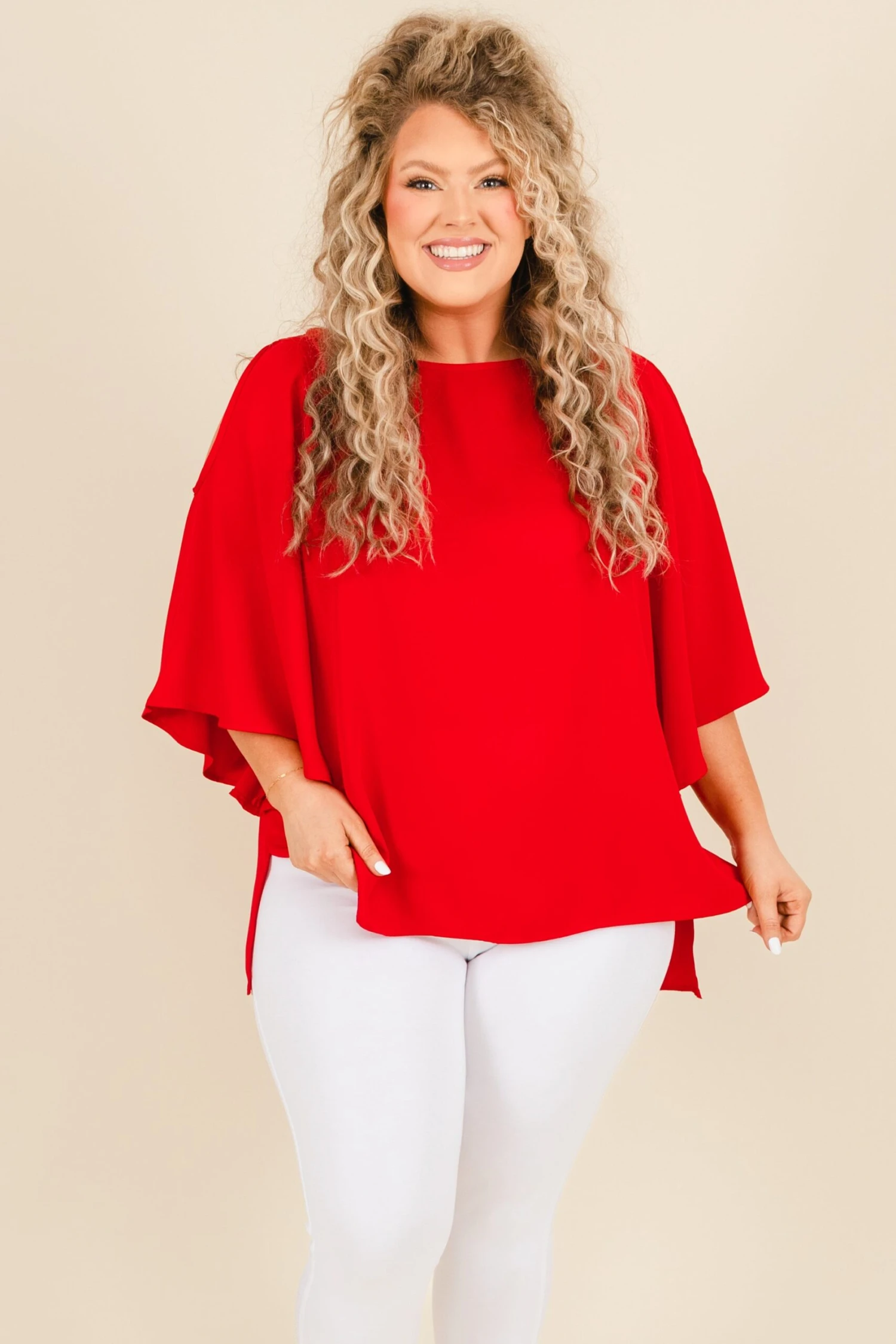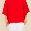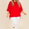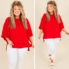 This cute top gives us major island vibes! This top has a bold red color you can dress up or down for every occasion! It’s comfortable for all-day wear, has a flowy fit, and features the cutest cold shoulder sleeves! Style this top with white denim and wedges for an easy everyday outfit! Â