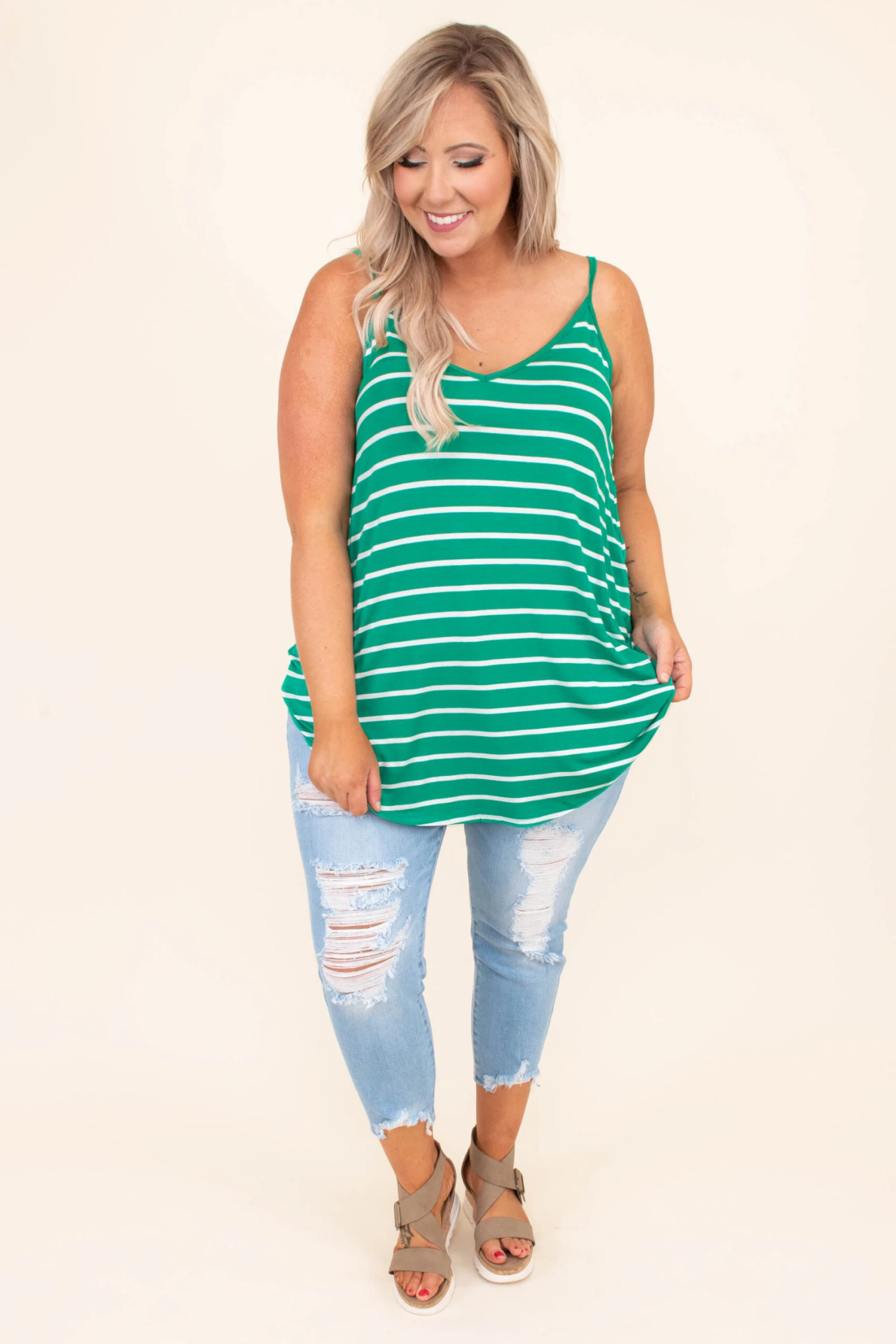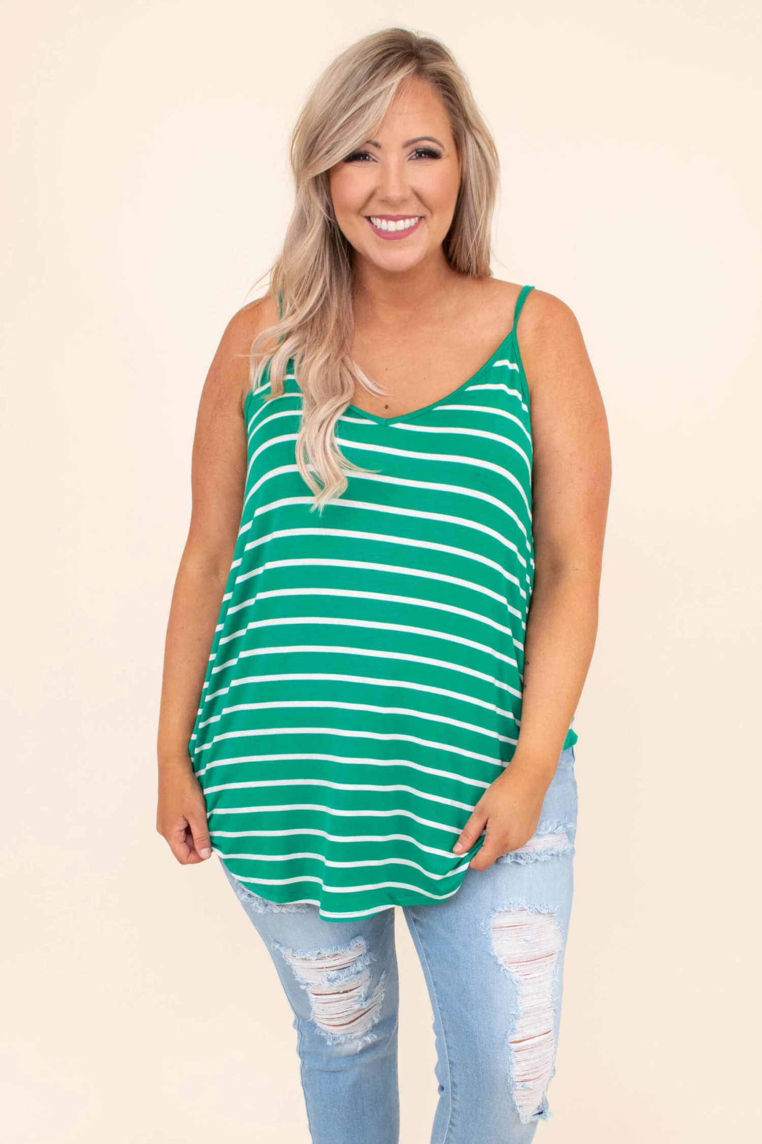 This top was made for a day at the beach! This tank has a simple stripe pattern with colors that are perfect for the season! It’s easy to style with your favorite shoes and accessories, has a flattering fit, and features a lightweight fabric you’ll want to wear all day long! Style this tank with shorts and sandals for your next vacation!