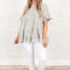 You + this gorgeous top = together forever! This top has a heather gray color that is so simple to style with all of your fave bottoms and accessories! The stretchy, figure flattering fit is great for all day wear throughout the season! Style this top with some jeggings and sandals for a classic chic look!