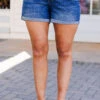 Tour the town while wearing these cuties! With a trendy dark wash and a playful length, these shorts are the perfect addition to your wardrobe! Pair them with a cute top and heels for a sassy and stylish look that’s perfect for any occasion! Elevate your fashion game with these must-have shorts!