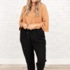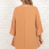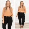 You’ll treasure this top forever! It has a solid mocha color you can dress up or down with ease! It’s comfortable for all-day wear, has a flowy fit, and features a classic v-neckline with a cute front pocket! Simply pair this top with some cute pants and sandals for an easy everyday look!Â