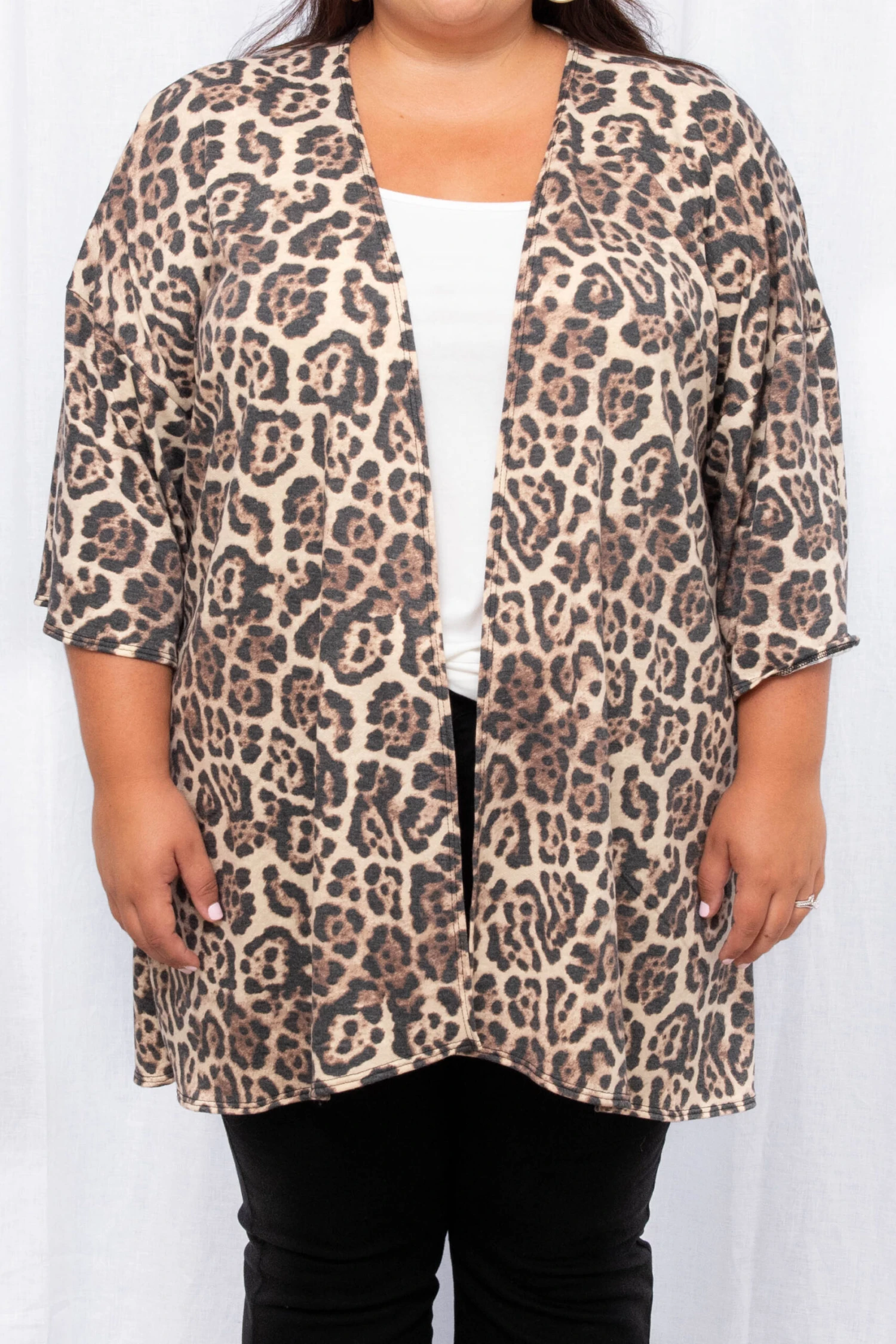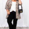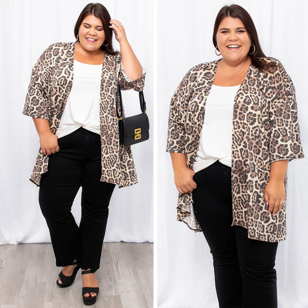 Make them tremble in their bland cardigans! This cardigan is fierce and sure to make you feel that way too! It has a trendy animal print pattern, the softest material, and ample stretch to offer the best comfortability! We see this cardigan paired with a cute basic top, jeans, and booties for a chic look!