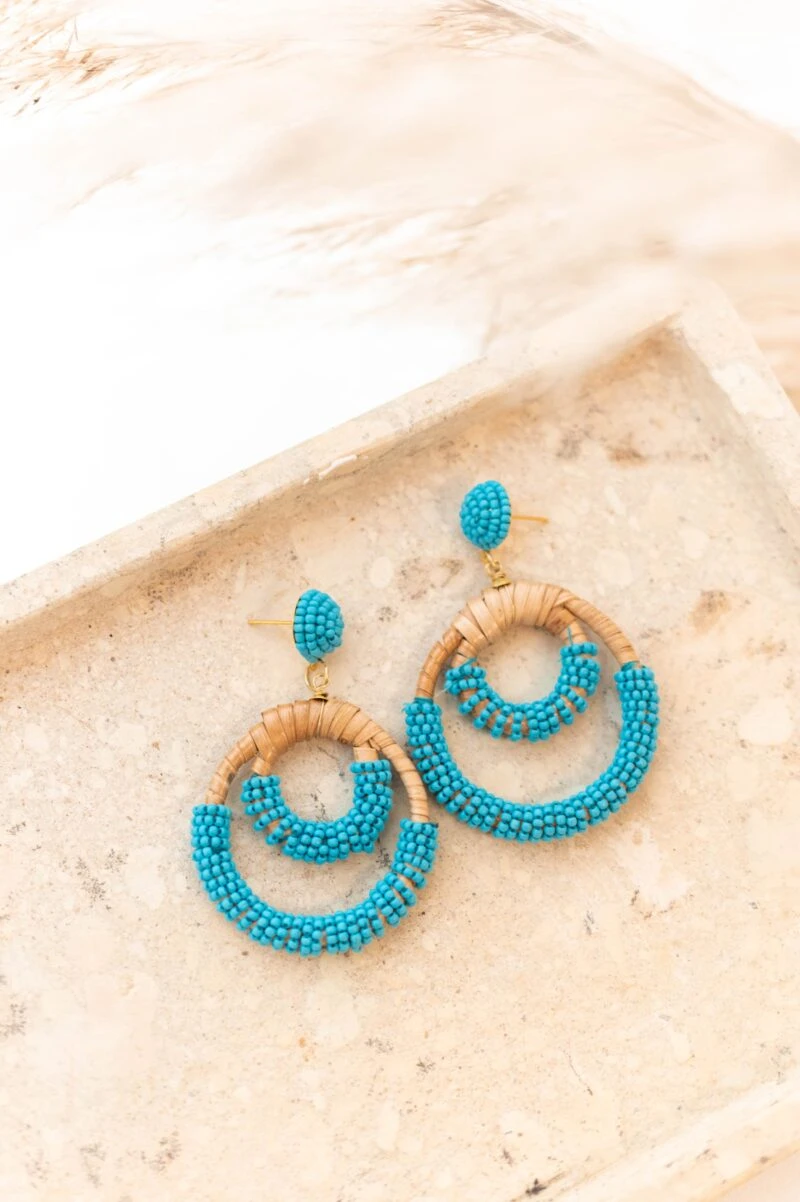 Grab these gorgeous earrings for your next adventure! They have a bold blue color with a super sweet beaded design that is a must-have for the season! Pair these earrings with a sassy dress or cute top and skinnies for the ultimate chic look!
