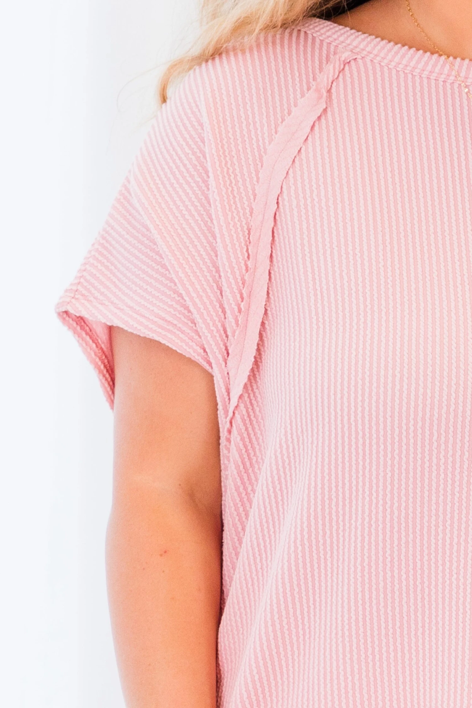This ribbed knit top will be a staple piece in your wardrobe! Its poncho bodice and round neckline make it a true and charming addition to any outfit! Versatile and comfortable, this blush top will quickly become one of your favorite go-to pieces for any occasion!