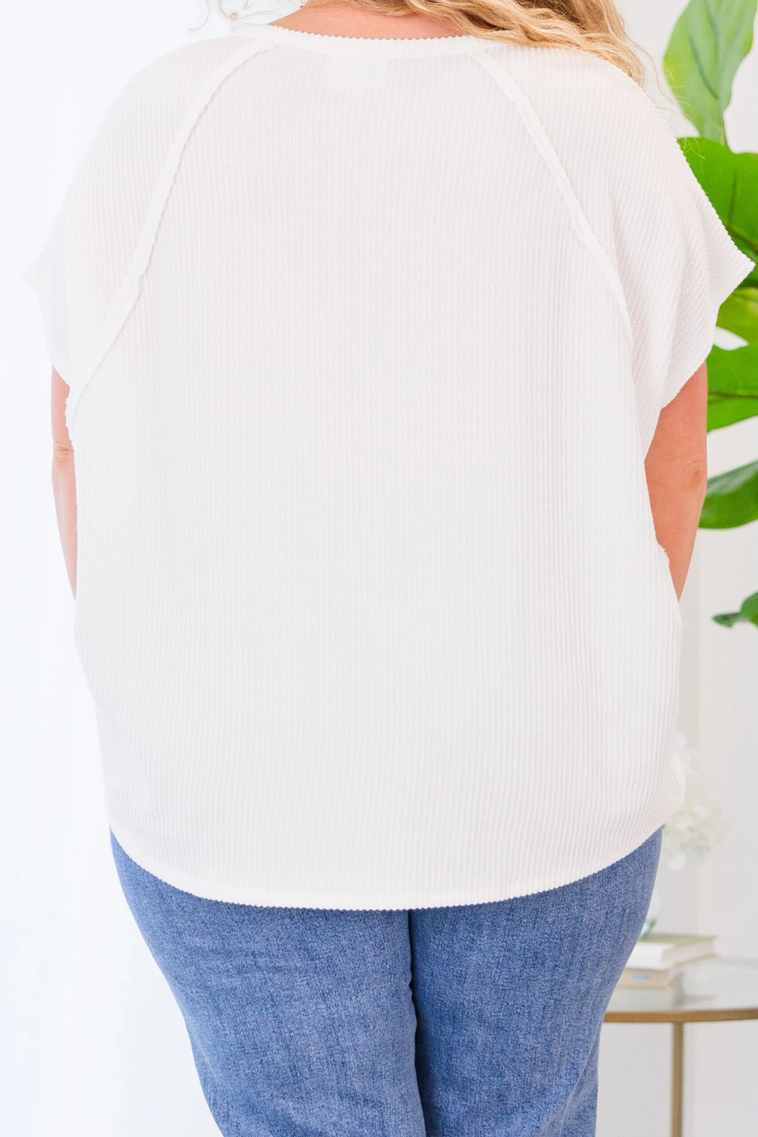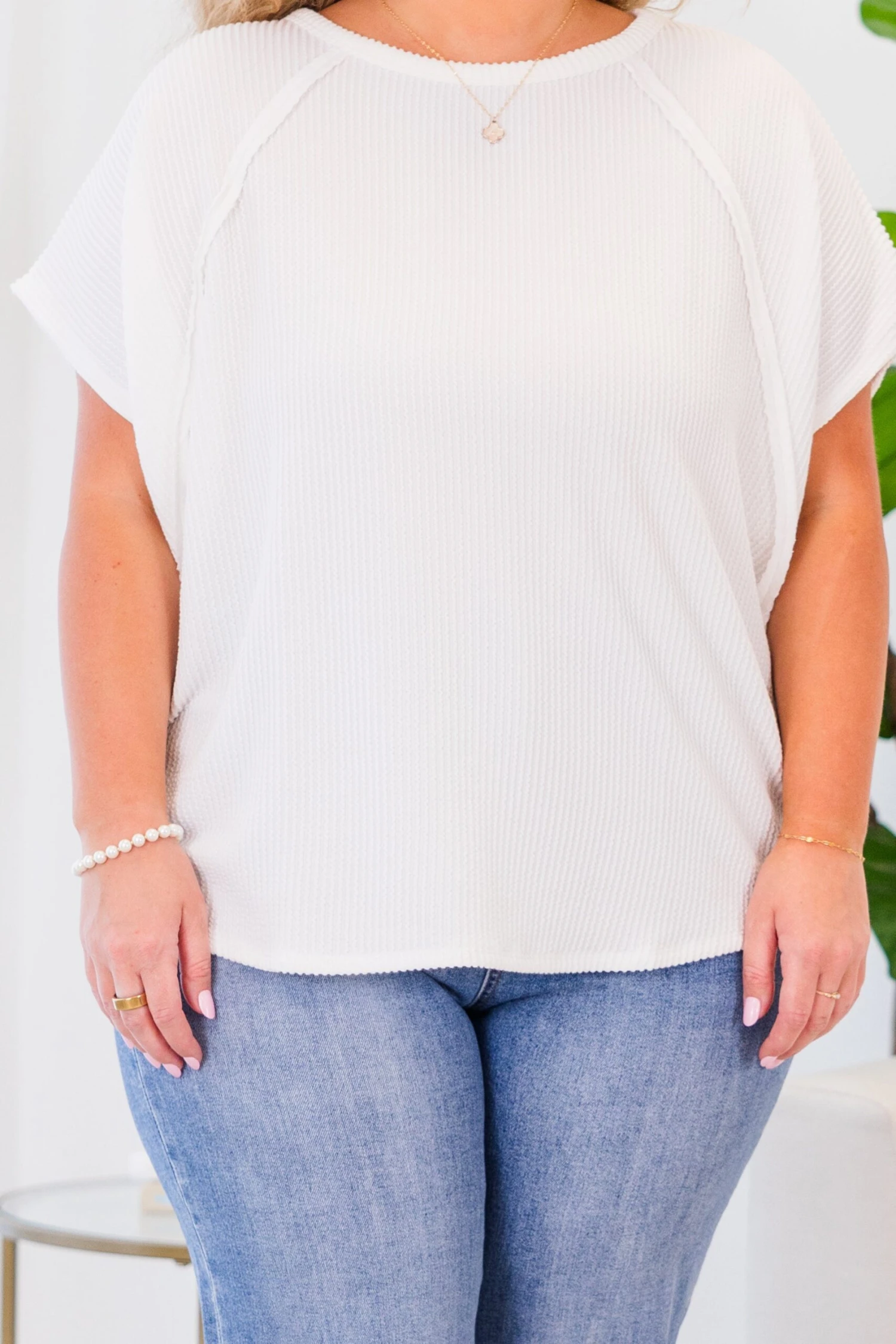 This ribbed knit top will be a staple piece in your wardrobe! Its poncho bodice and round neckline make it a true and charming addition to any outfit! Versatile and comfortable, this ivory top will quickly become one of your favorite go-to pieces for any occasion!