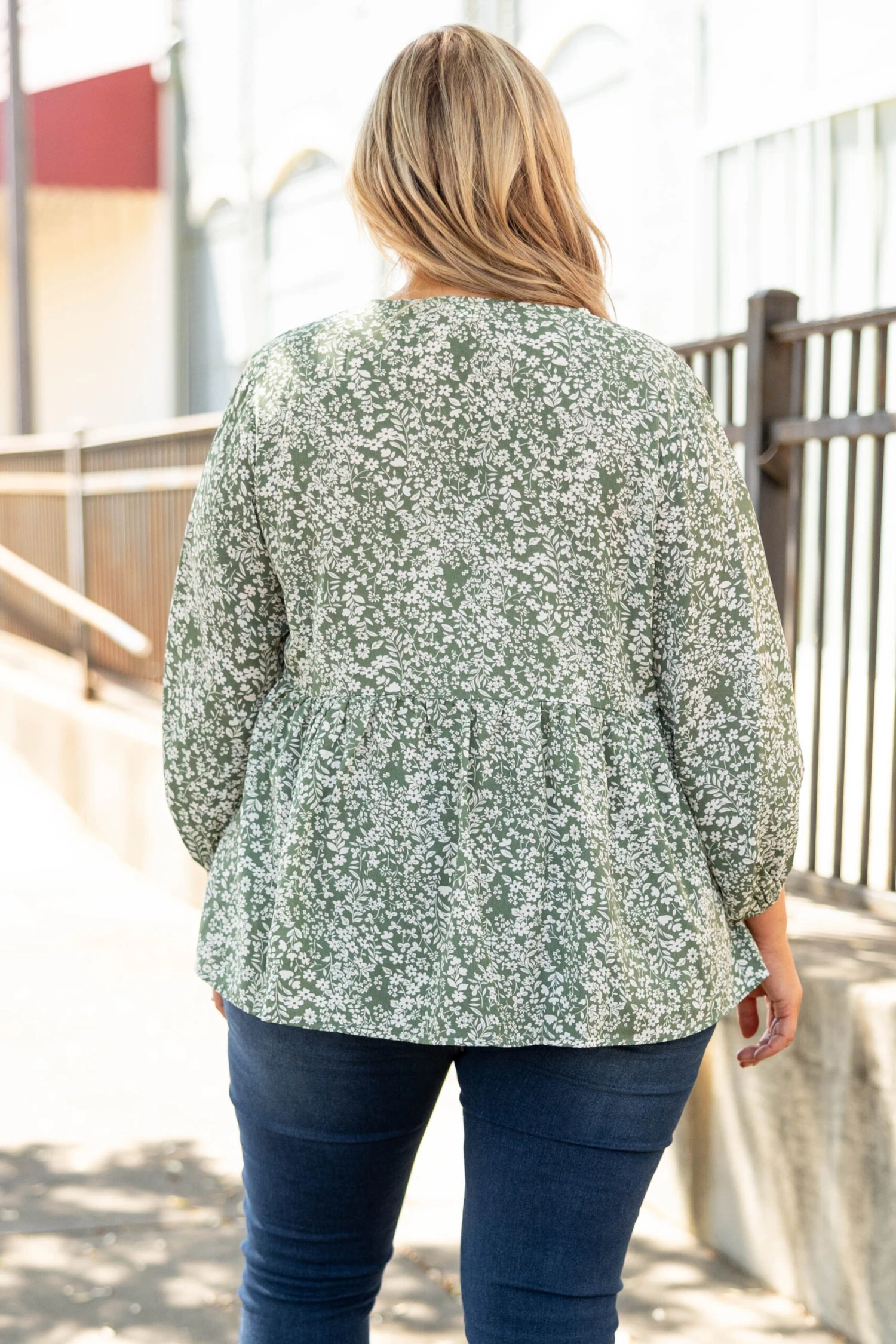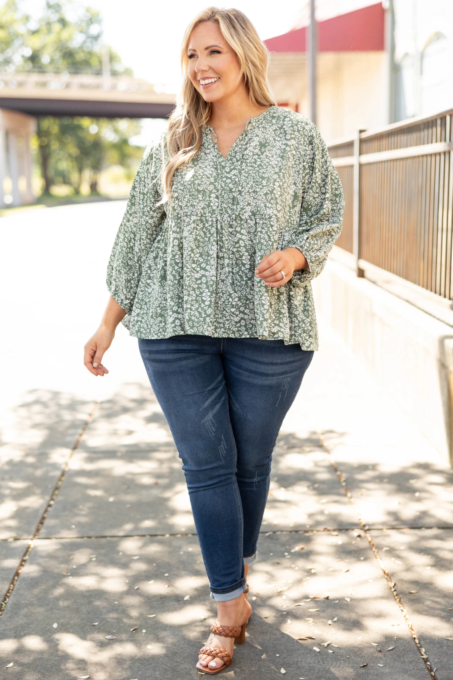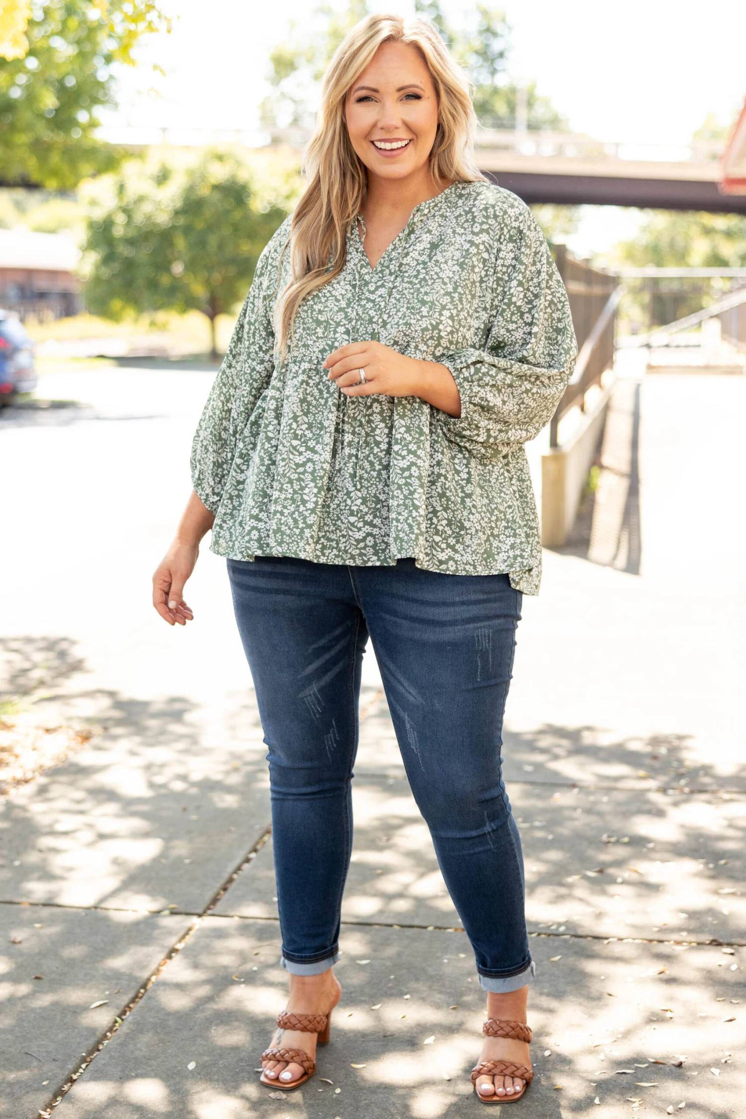 Trust your instincts and grab this top! This top has a lovely green color with a beautiful floral pattern that is a season favorite! The flowy babydoll design and keyhole tie is super chic! Style this top with some skinnies and heels for a sassy chic look!