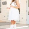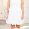 Trust us when we say you’ll LOVE this dress! Crafted with a smocked bodice and delicate lace detailing, this ivory dress is the perfect combination of comfort and style! Perfect for formal events or everyday wear!