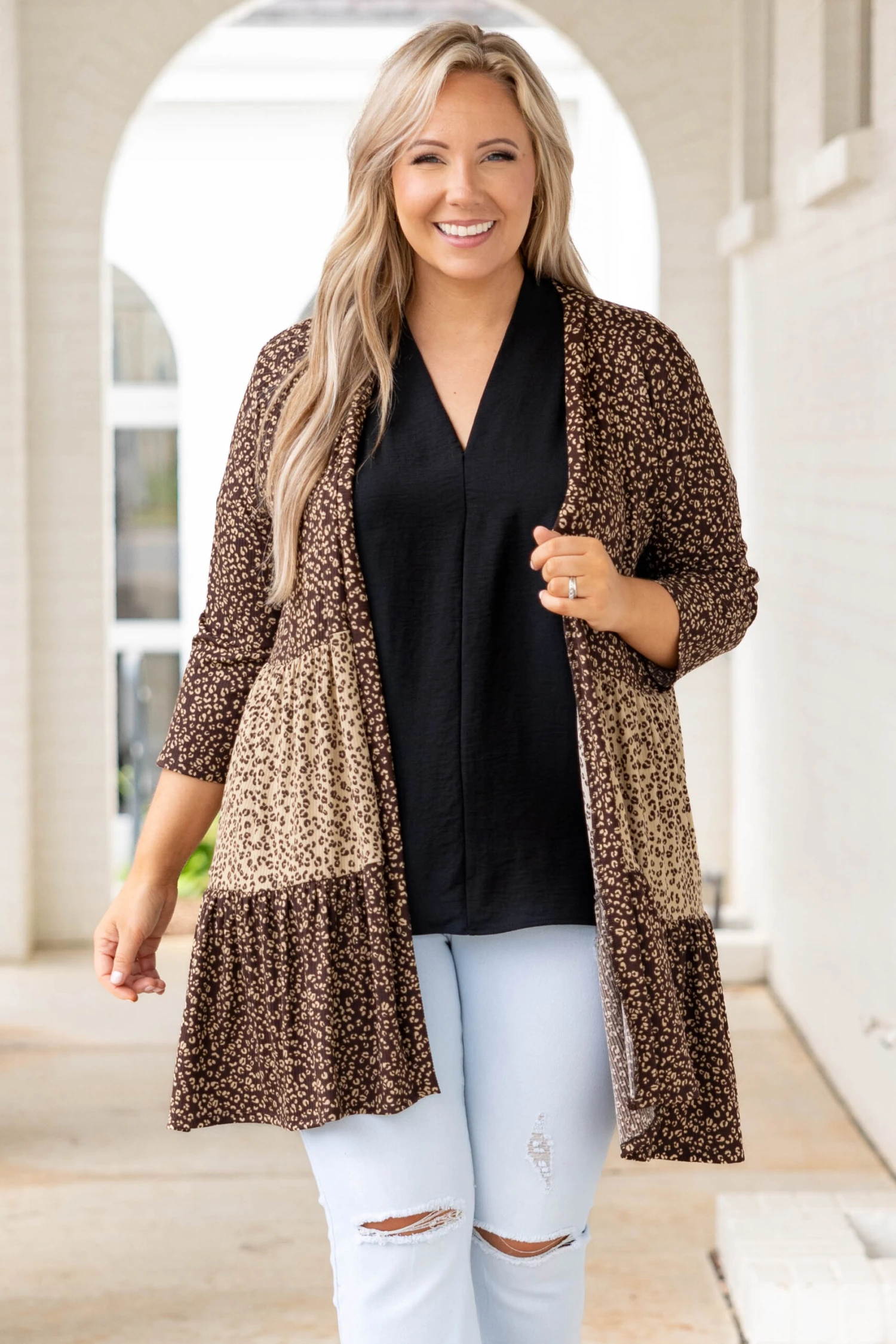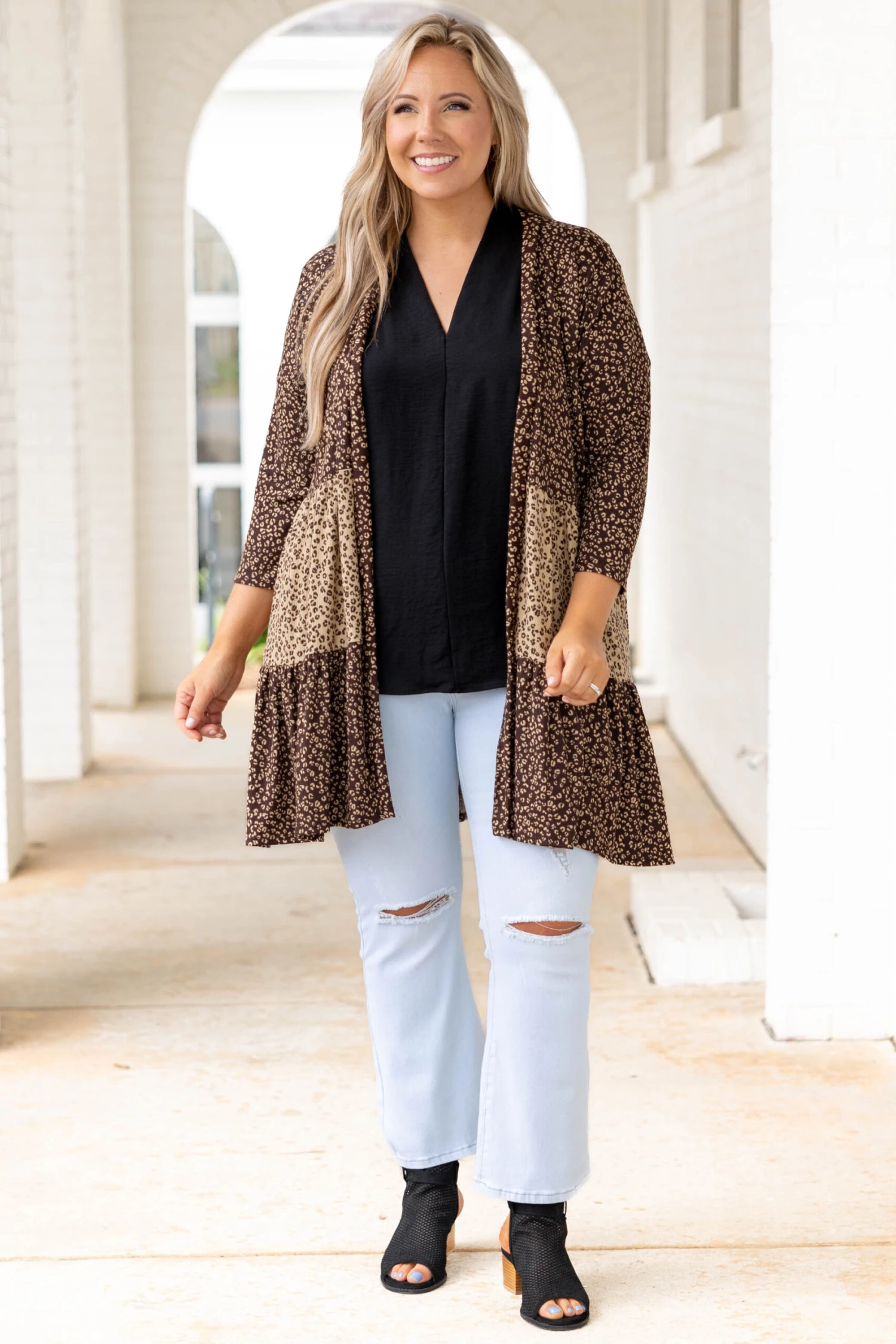 Watch the stars in this cute cardi! This cardigan is such a refreshing color for the changing seasons! It has a bold color you can dress up or down and style with everything in your wardrobe! It’s comfortable for all-day wear, has a relaxed fit to flatter your figure, and is perfect for the season! Simply style this cardigan with a cute solid top and denim or a solid dress for an effortlessly chic look!