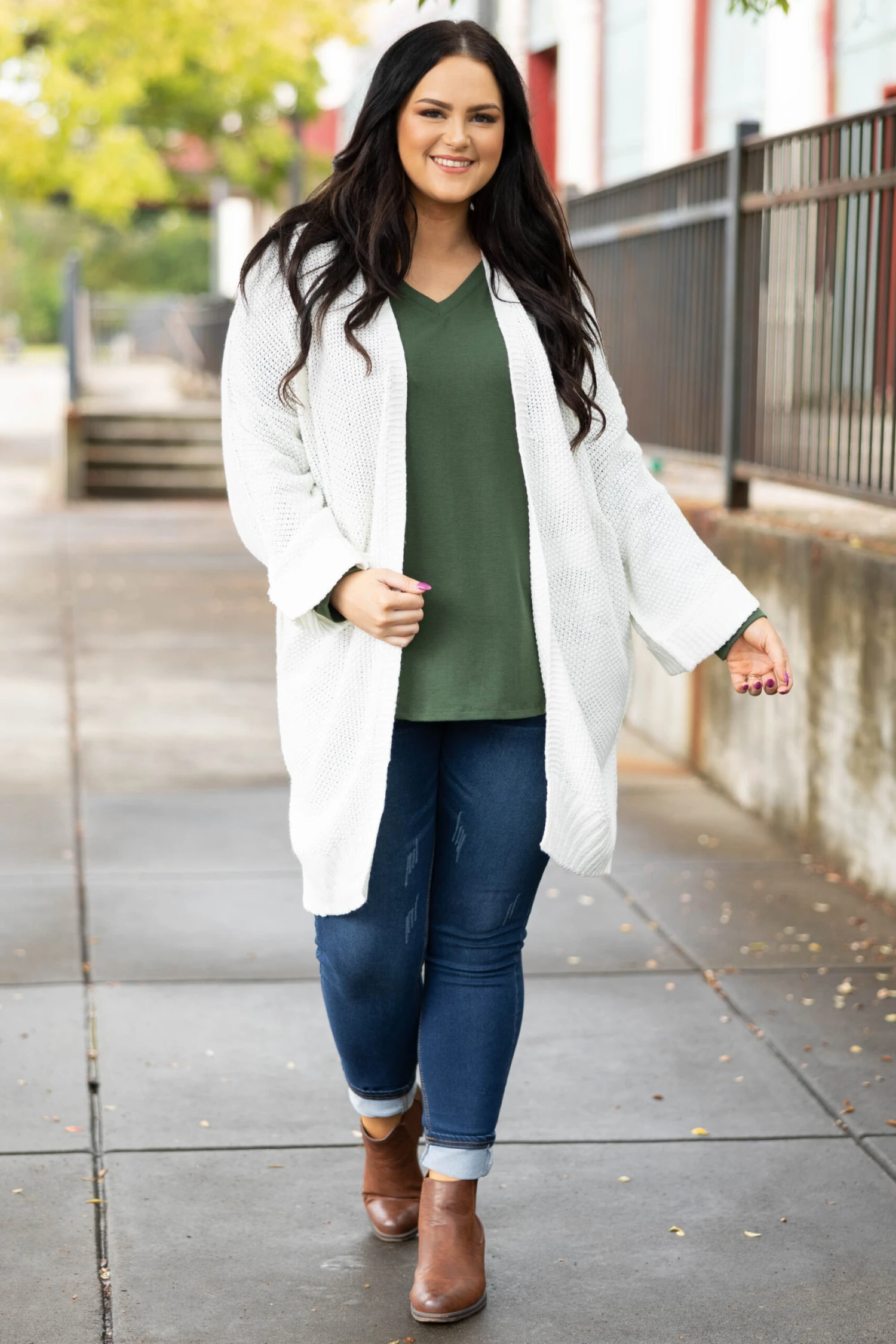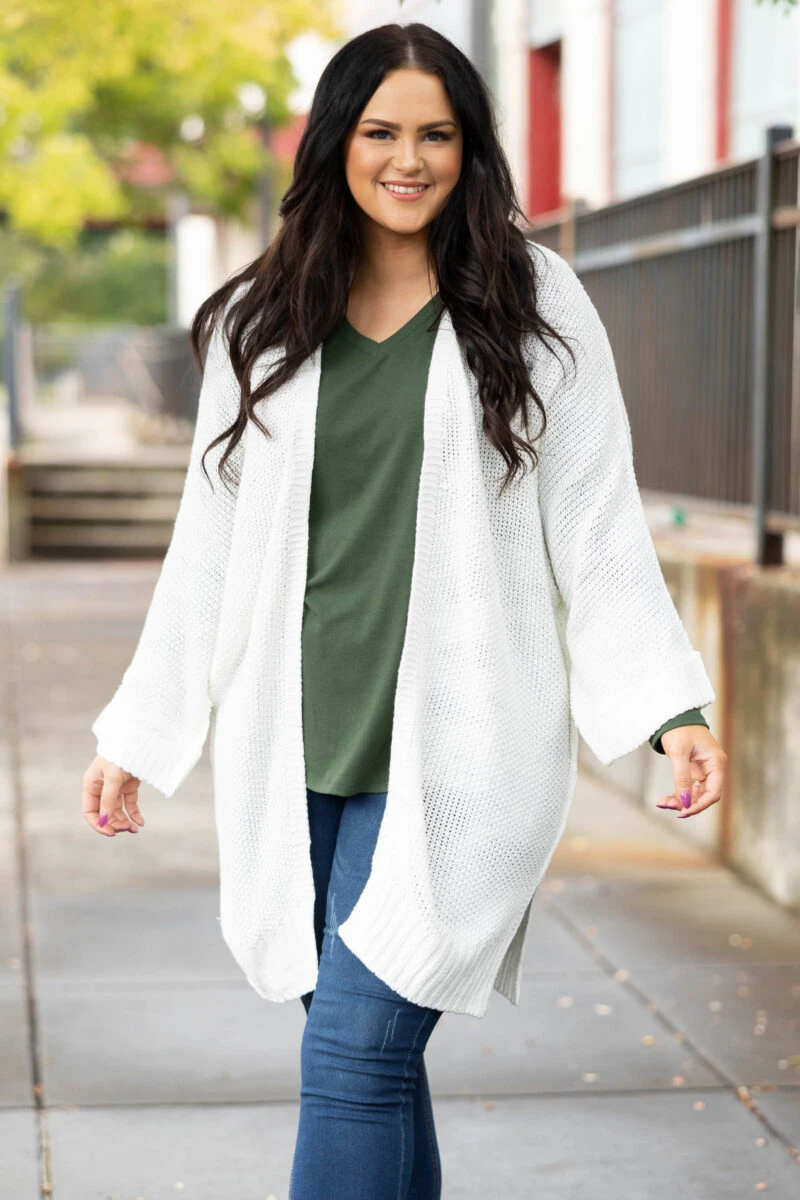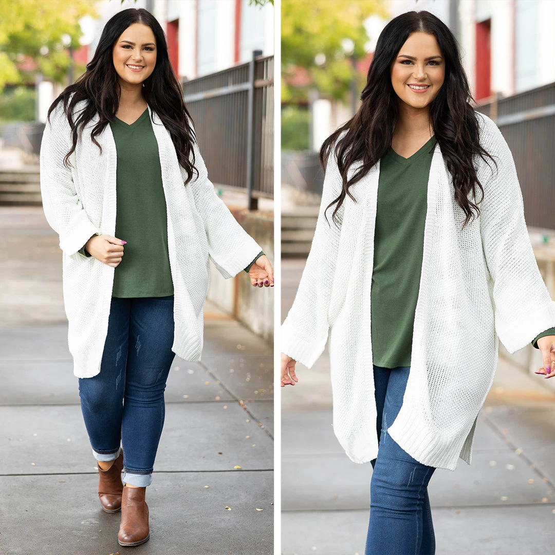 This cardigan is such a refreshing color for the changing seasons! ! It has a simple color you can dress up or down and style with everything in your wardrobe! It’s comfortable for all-day wear, has a relaxed fit to flatter your figure, and is perfect for the season! Simply style this cardigan with a solid or patterned top and skinnies for an effortlessly chic look!