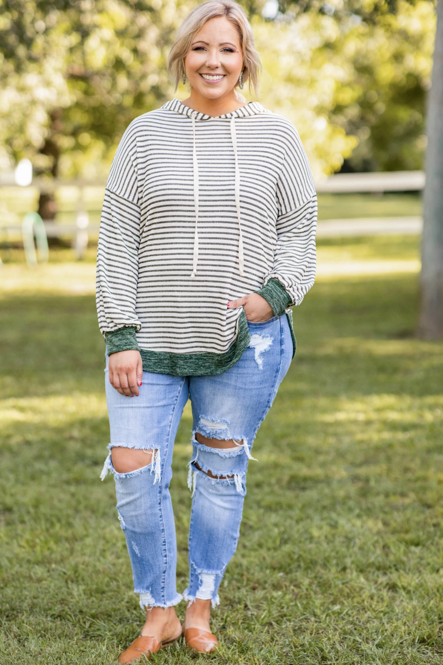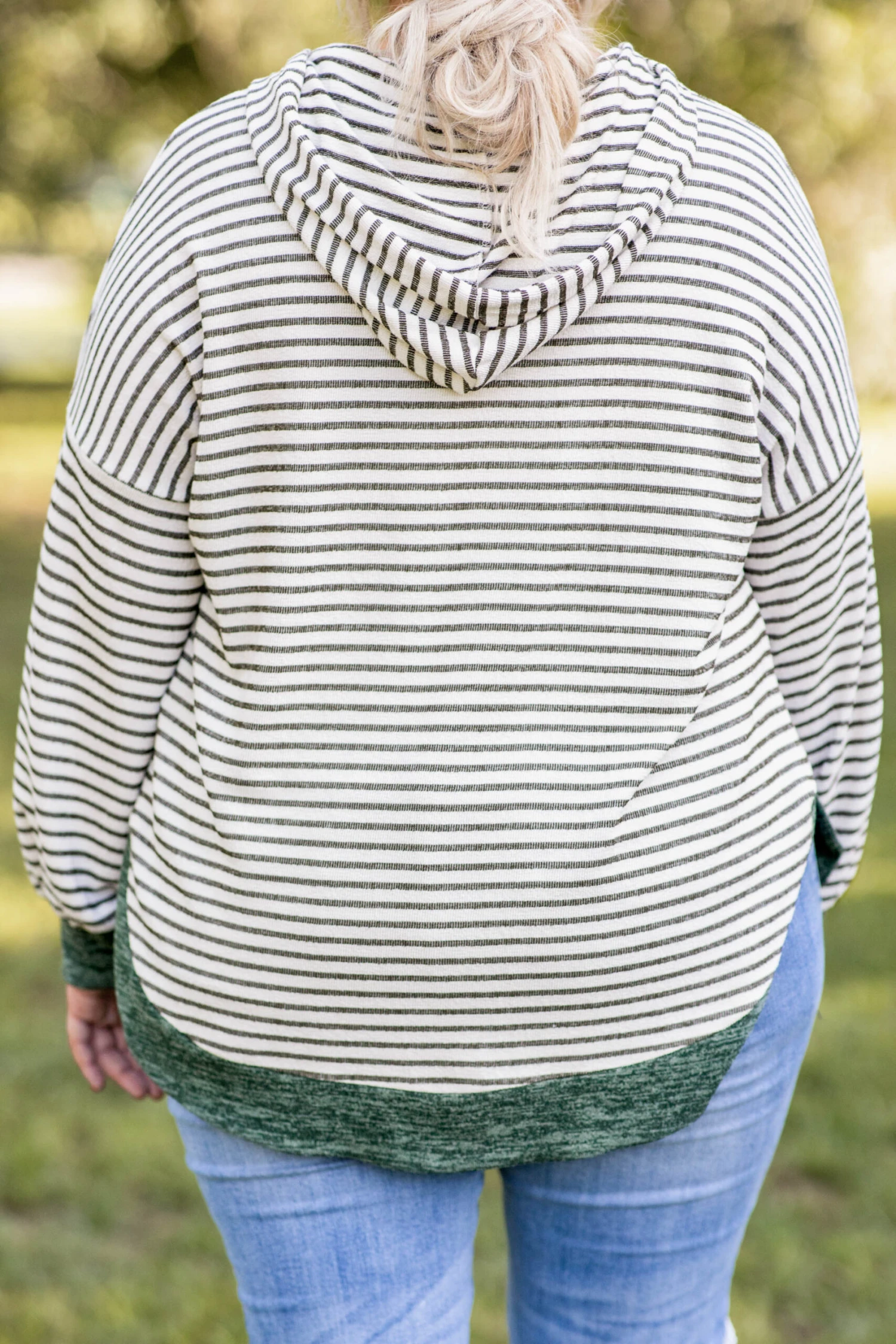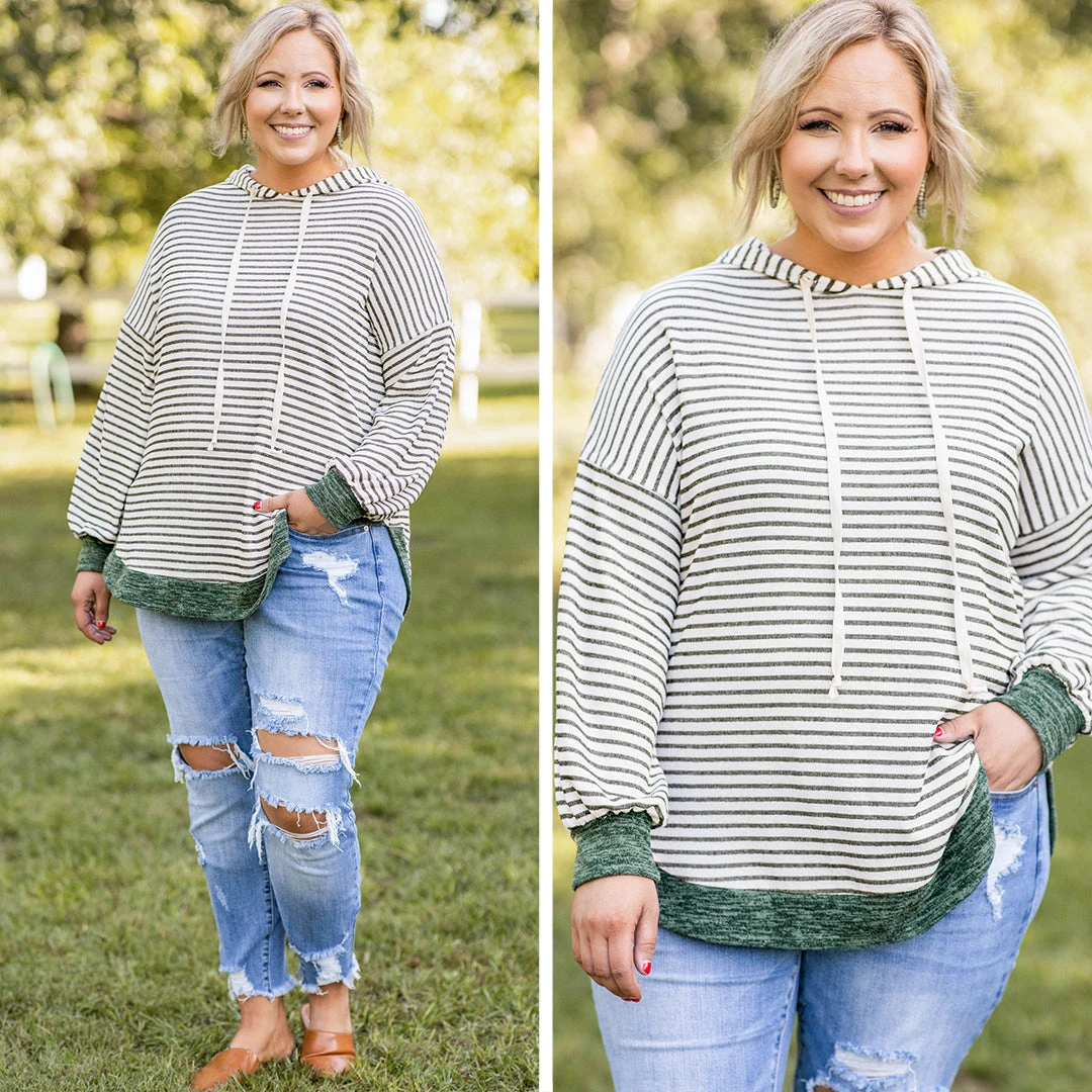 This hoodie is anything but underrated! This hoodie has a classic stripe pattern with neutral colors you can style for every occasion! It’s comfortable for all day wear, has an over sized fit, and features the cutest drawstring hood! Pair this hoodie with skinnies and sneakers for an easy everyday look!Â