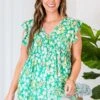 This gorgeous green top boasts an adorable back tie and a flattering babydoll design that is perfect for the season! The stretchy material ensures a comfortable and perfect fit, while the beautiful floral pattern adds a touch of sass!. Perfect for a stylish and comfortable look, this top is a must-have for any wardrobe!