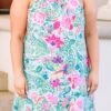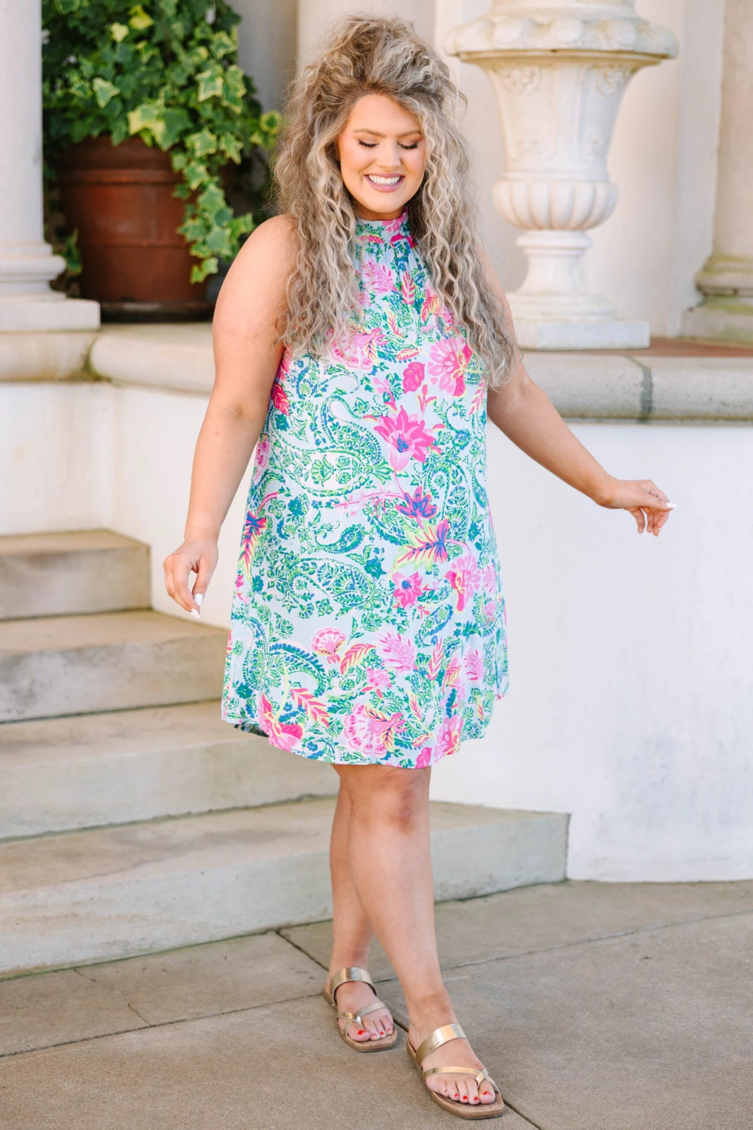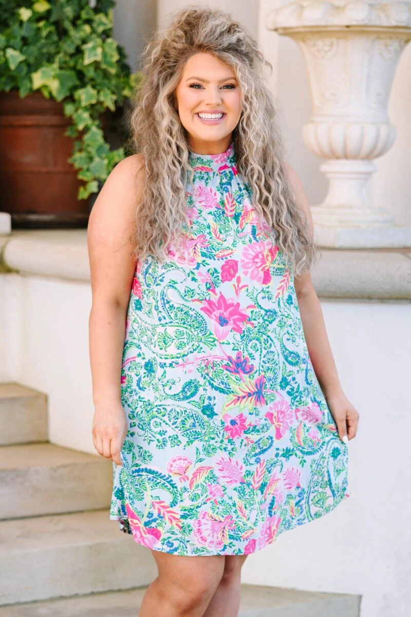 This dress is perfect for your next Spring event! Its halter design ensures a contemporary, modern look, while its floral and paisley patterns give it a timeless charm! Look beautiful and elegant in this dress all season long!