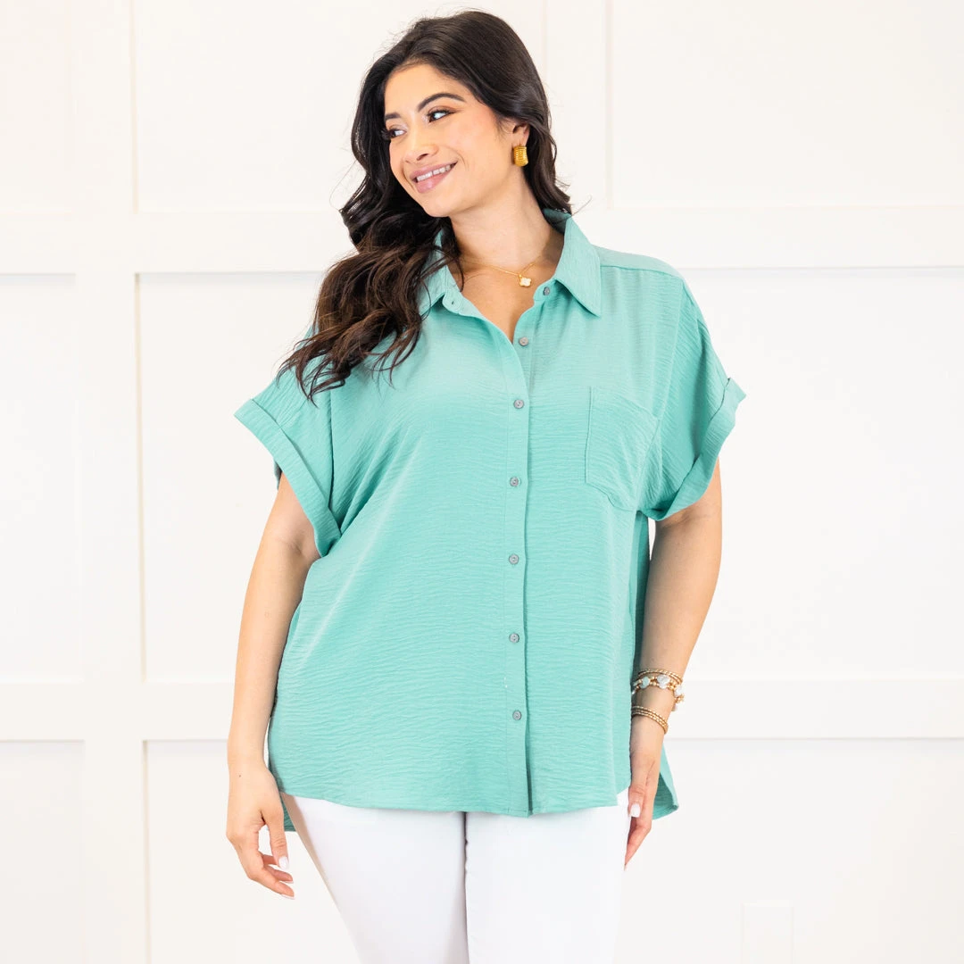 Get ready to take your style to new heights with this top! Made with air flow fabric for a breezy feel, this top also features a button down design and a collared neckline for a touch of sophistication! Perfect for a day out in the sun, or even just running errands – you’ll feel light as a feather in this dusty teal top!