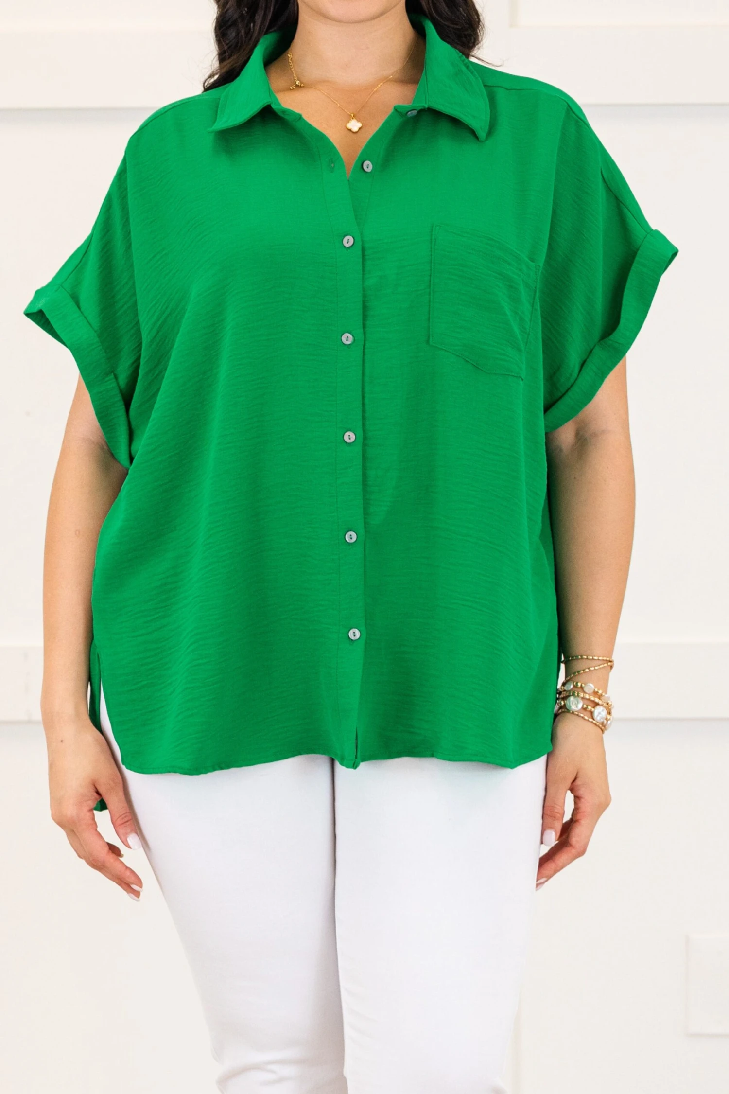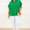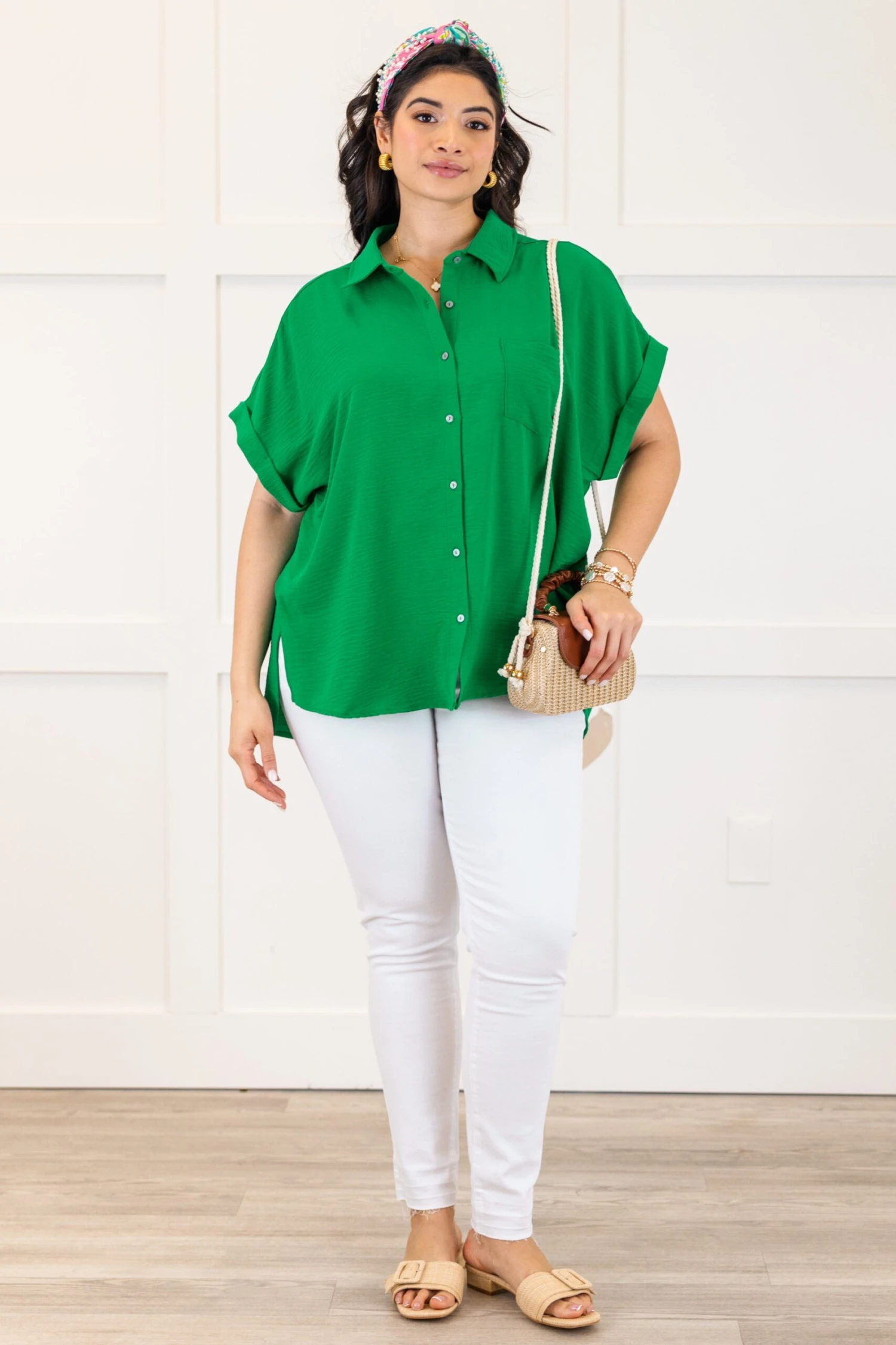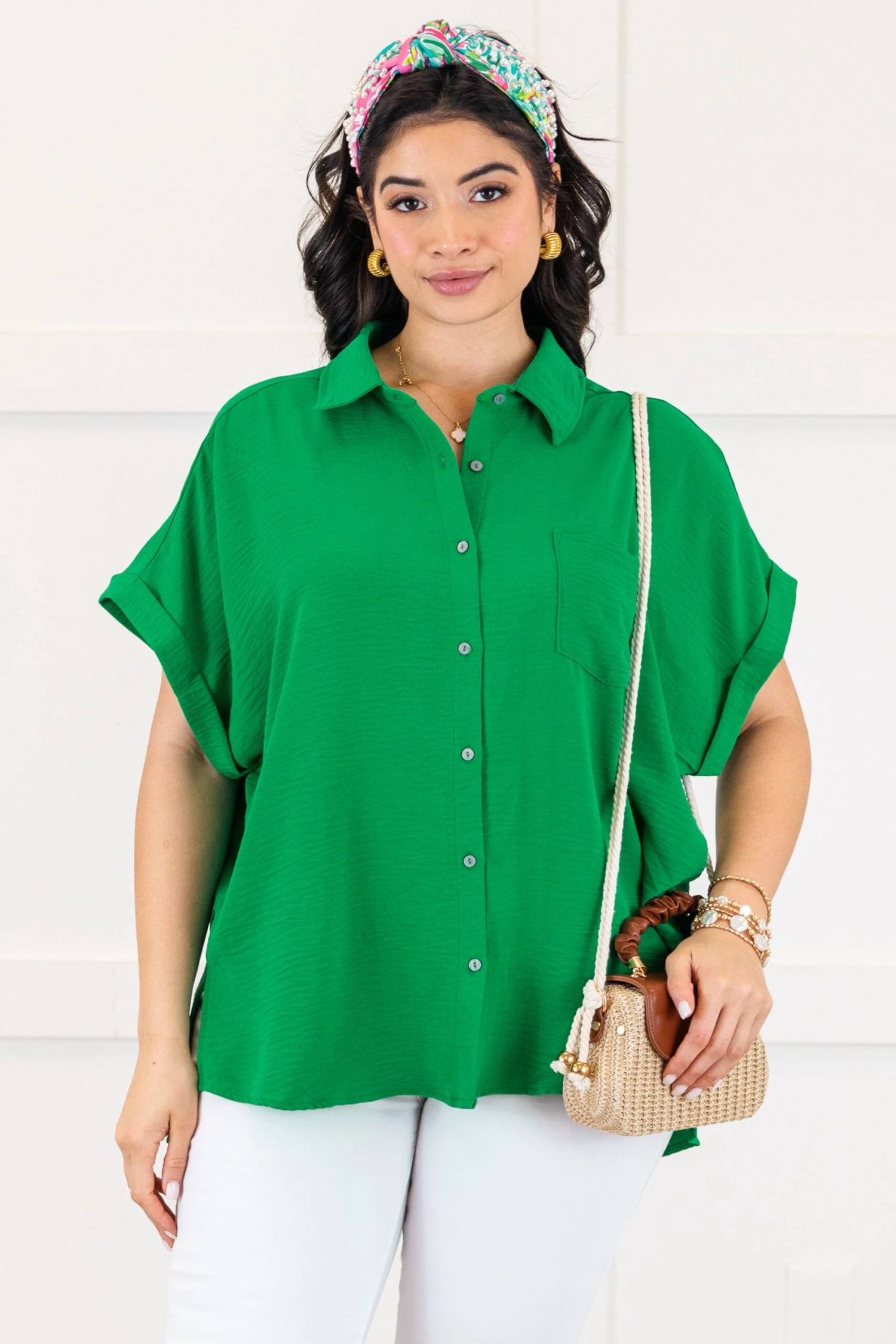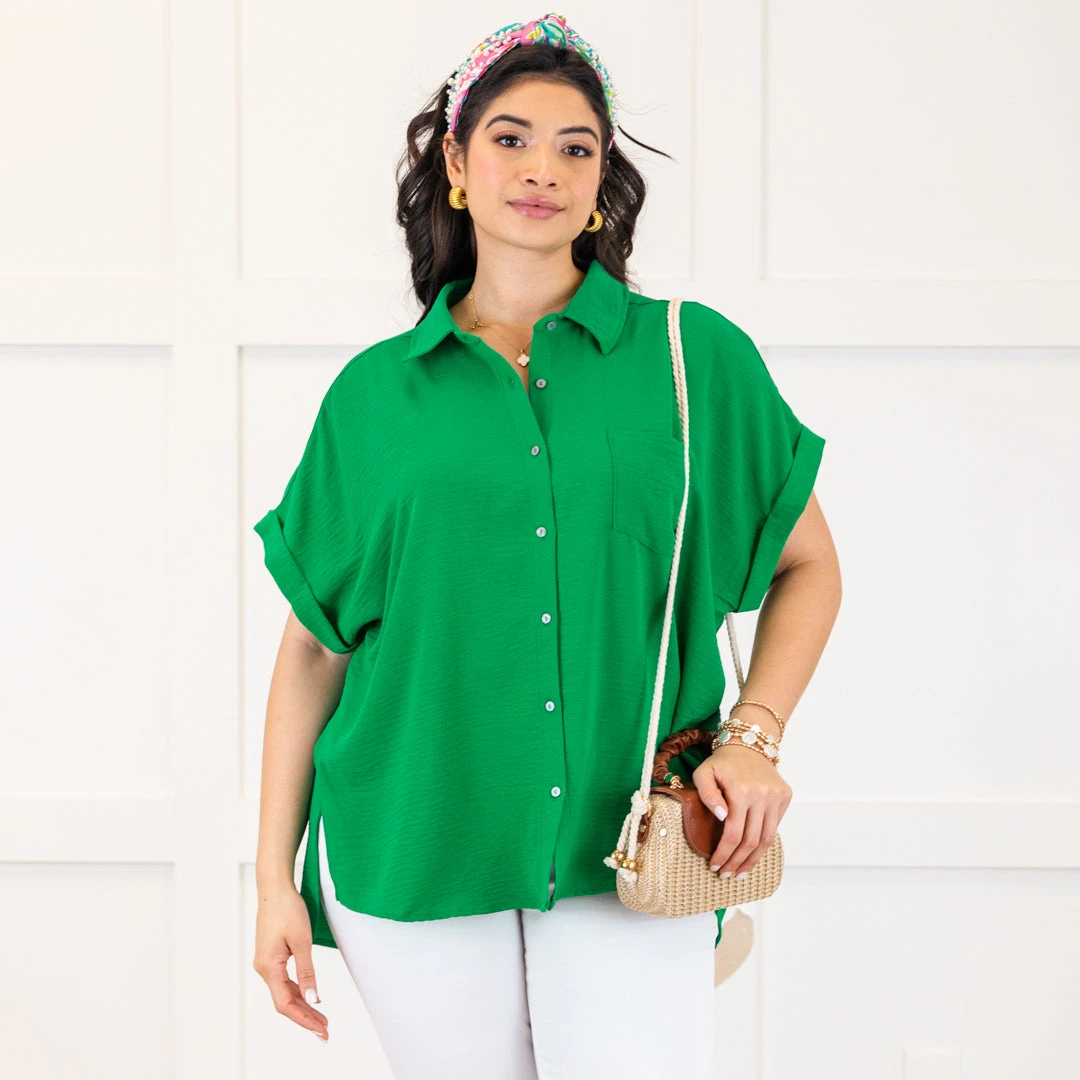 Get ready to take your style to new heights with this top! Made with air flow fabric for a breezy feel, this top also features a button down design and a collared neckline for a touch of sophistication! Perfect for a day out in the sun, or even just running errands – you’ll feel light as a feather in this kelly green top!