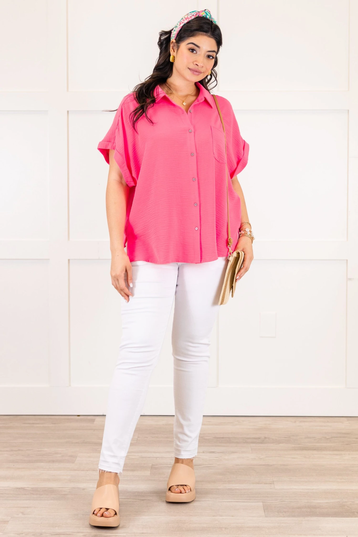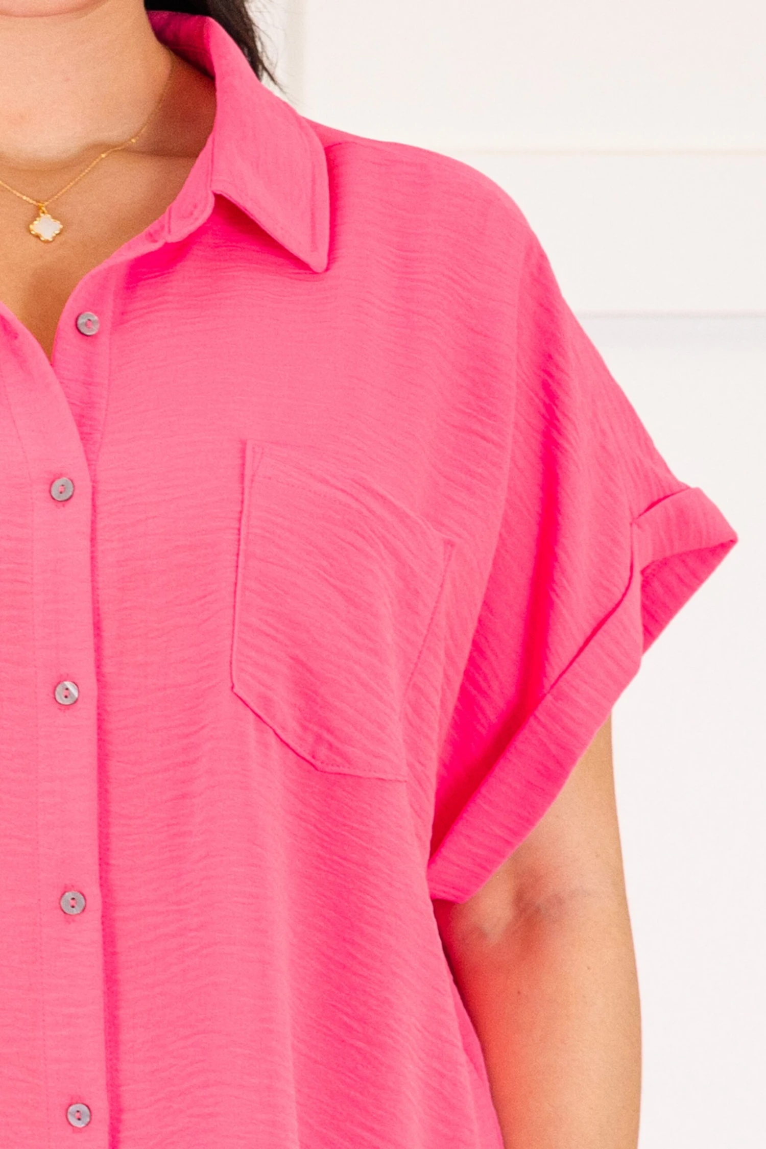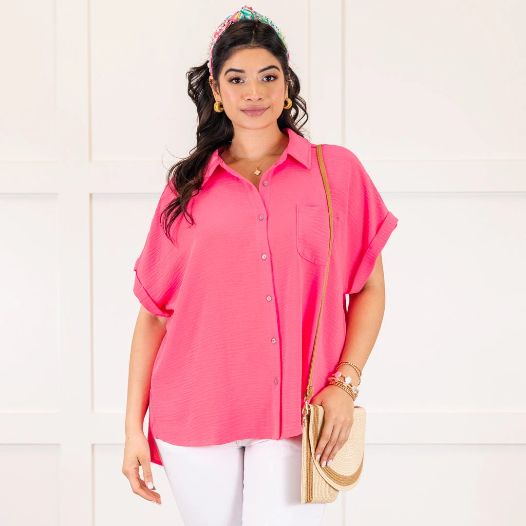 Get ready to take your style to new heights with this top! Made with air flow fabric for a breezy feel, this top also features a button down design and a collared neckline for a touch of sophistication! Perfect for a day out in the sun, or even just running errands – you’ll feel light as a feather in this neon fuchsia top!