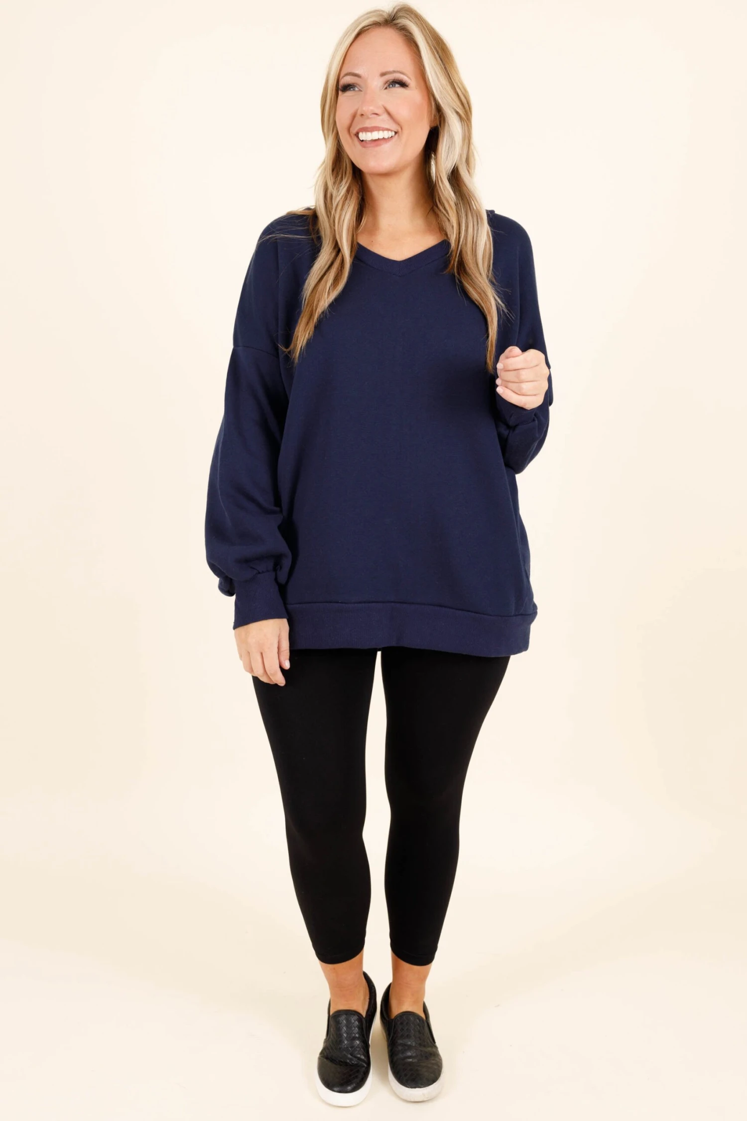 You’ll look and feel special in this beauty! This sweatshirt in navy blue is perfect for a casual day out! The classic color pairs well with leggings or skinny jeans for a fashionable look! Enjoy maximum comfort while looking your best in this quality sweatshirt!