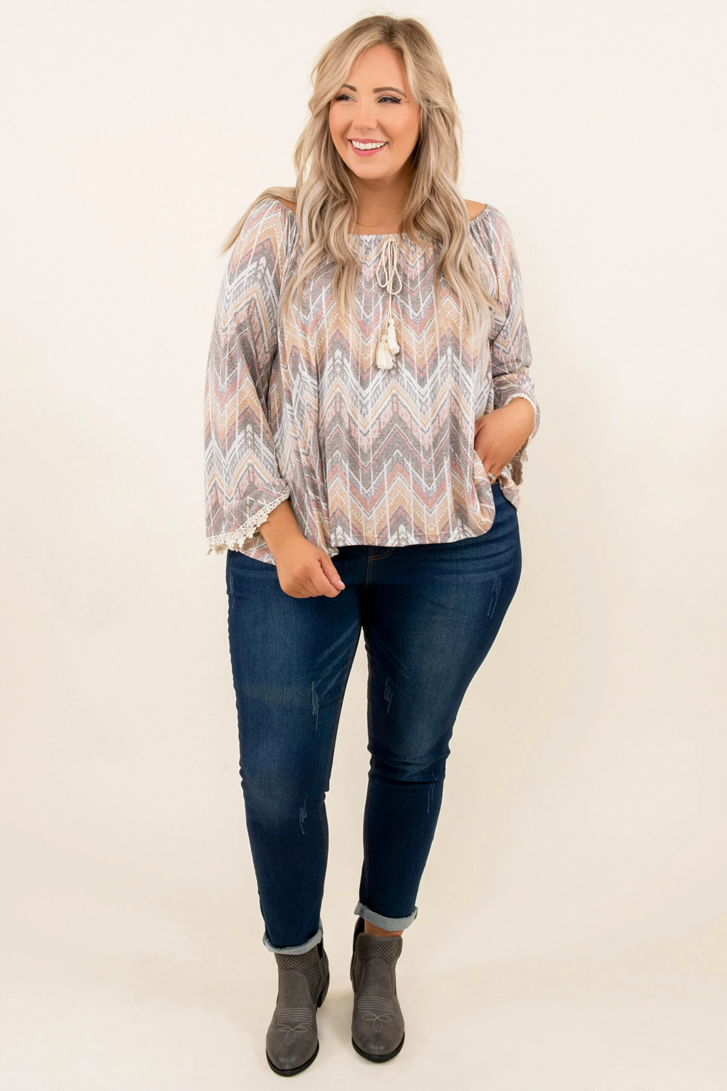 This top gives us such good vibes! This top has a pretty Aztec pattern with a bold color that’s perfect for the season! It’s comfortable for all-day wear has a flowy fit, and features the cutest tie neckline detail! Style this top with skinnies or shorts for an effortlessly chic outfit! Â