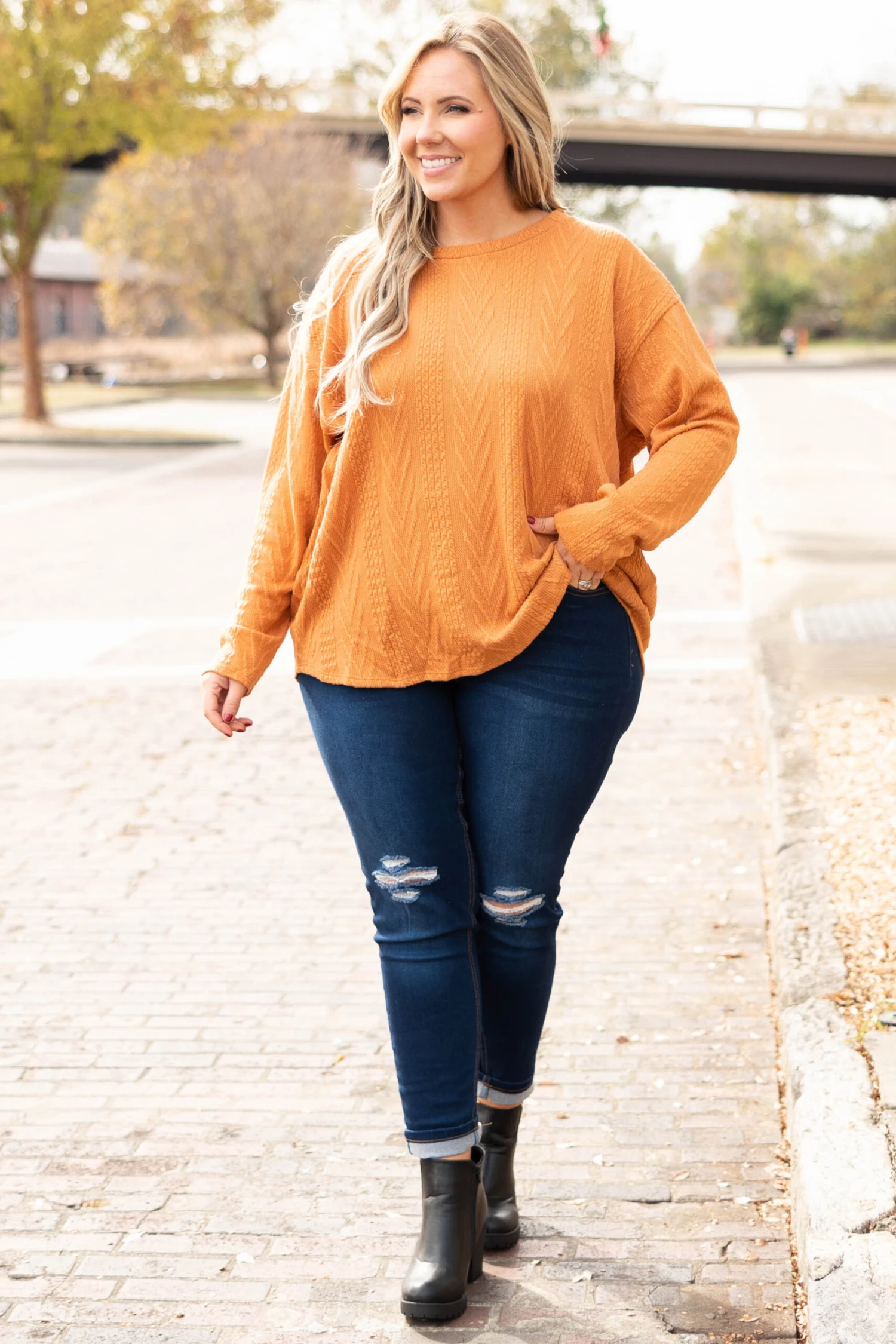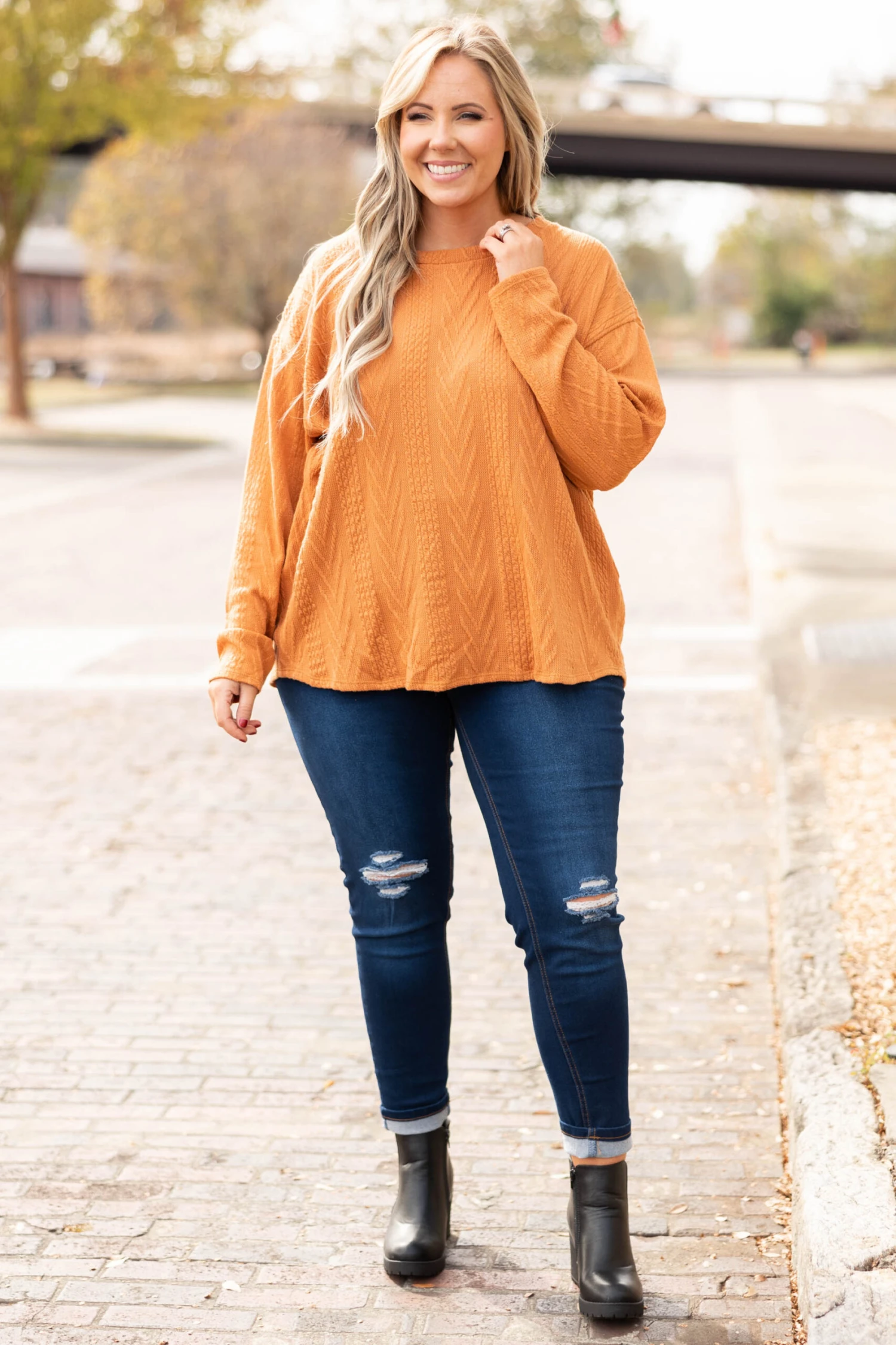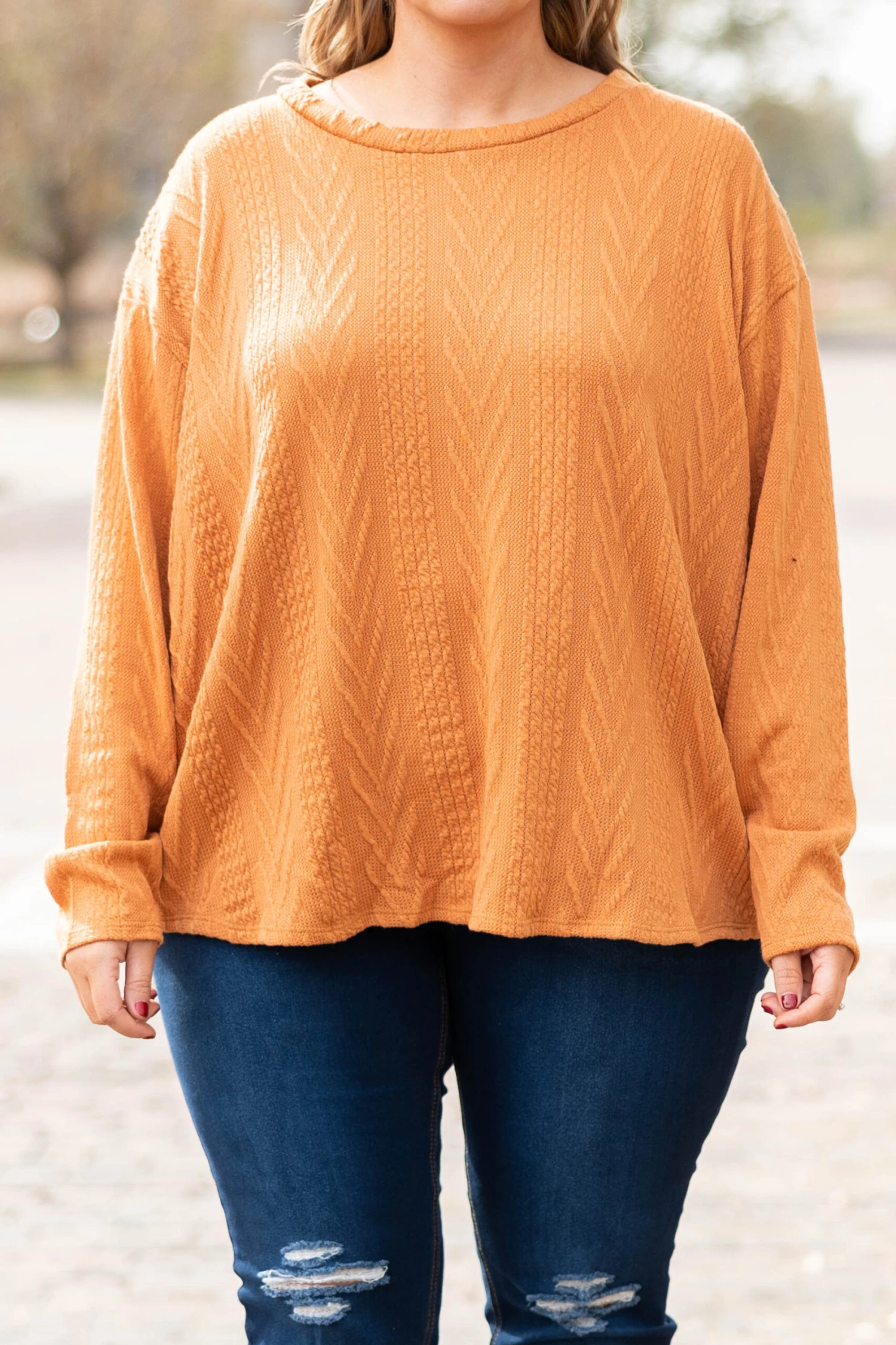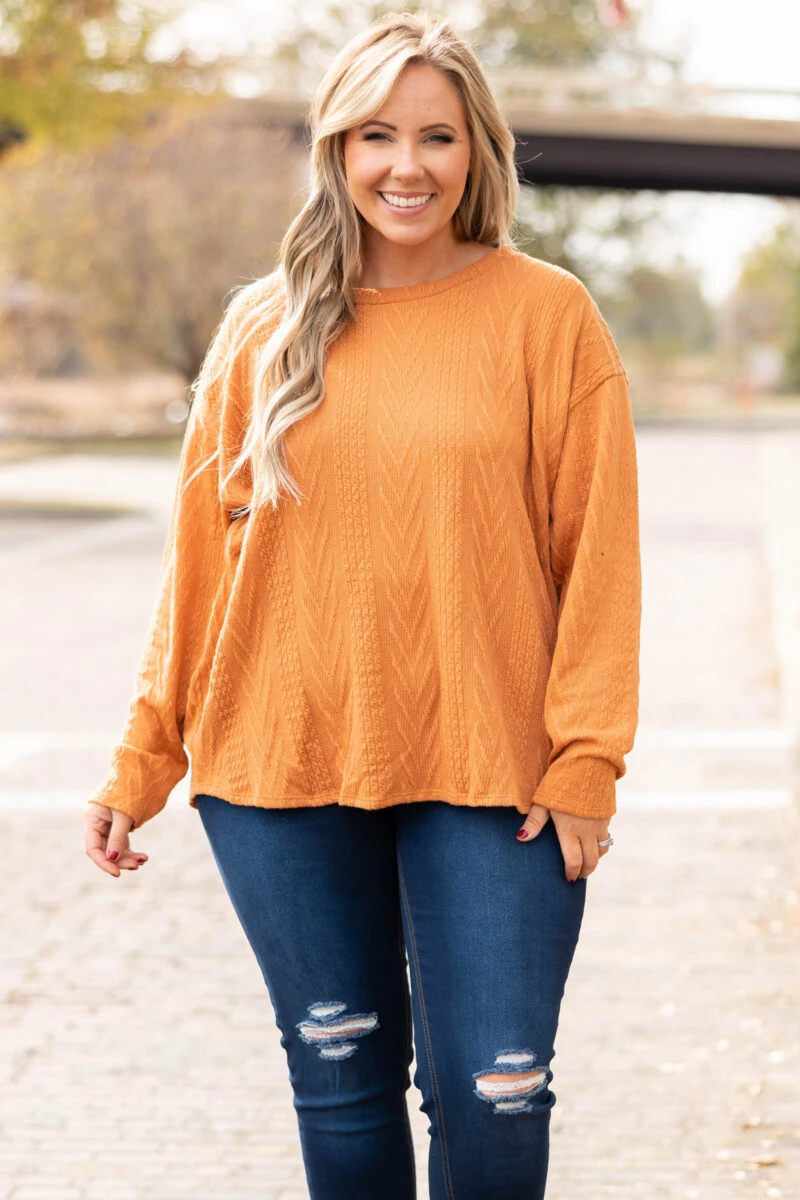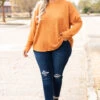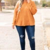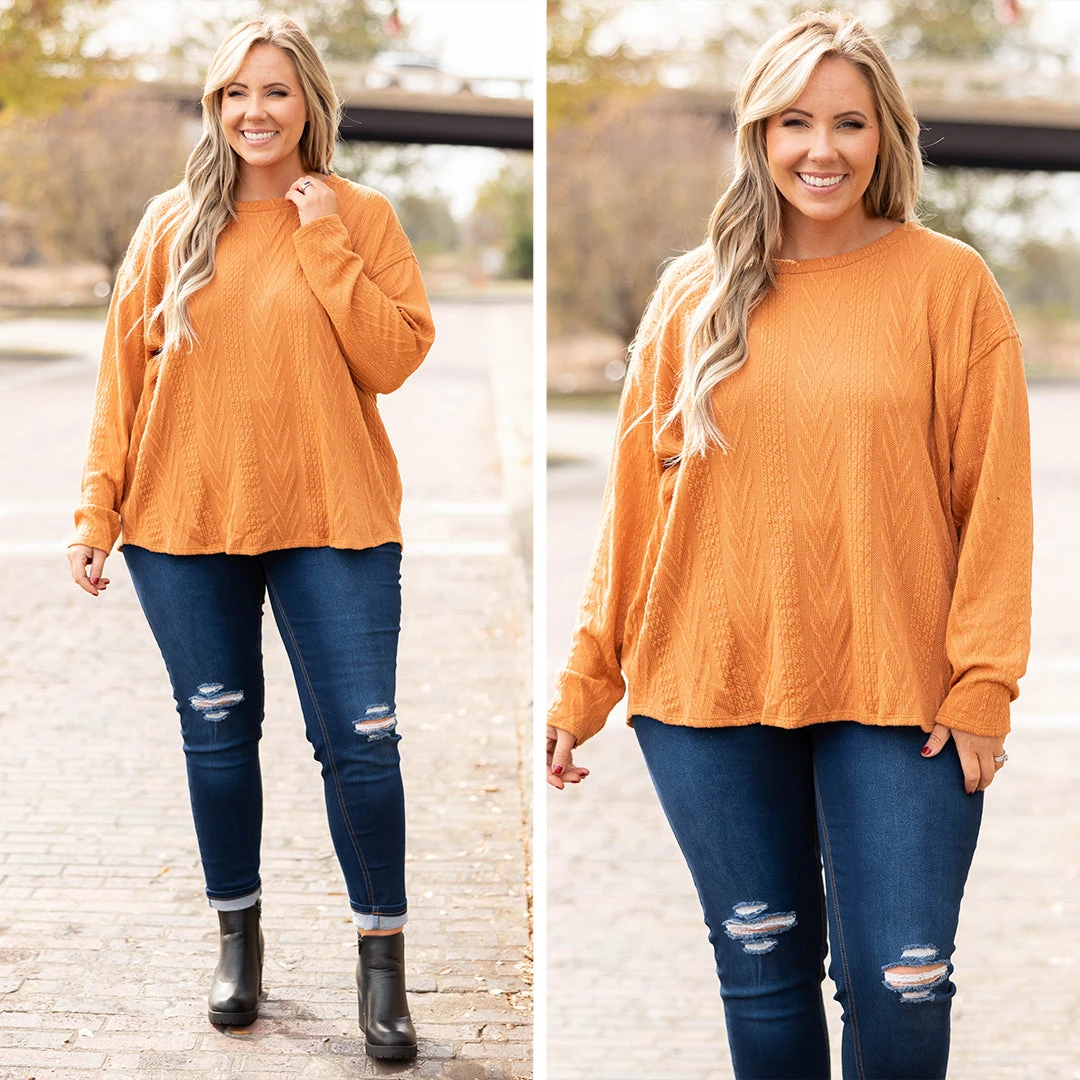 The time is now for you to get this top! It has a super relaxed, oversized fit and a dreamy textured & soft fabric! We love the rust color and how easy it is to wear casual or dressed up! Pair it with leggings and sneakers for a chill day or dress it up with a statement necklace and skinnies for a night out!