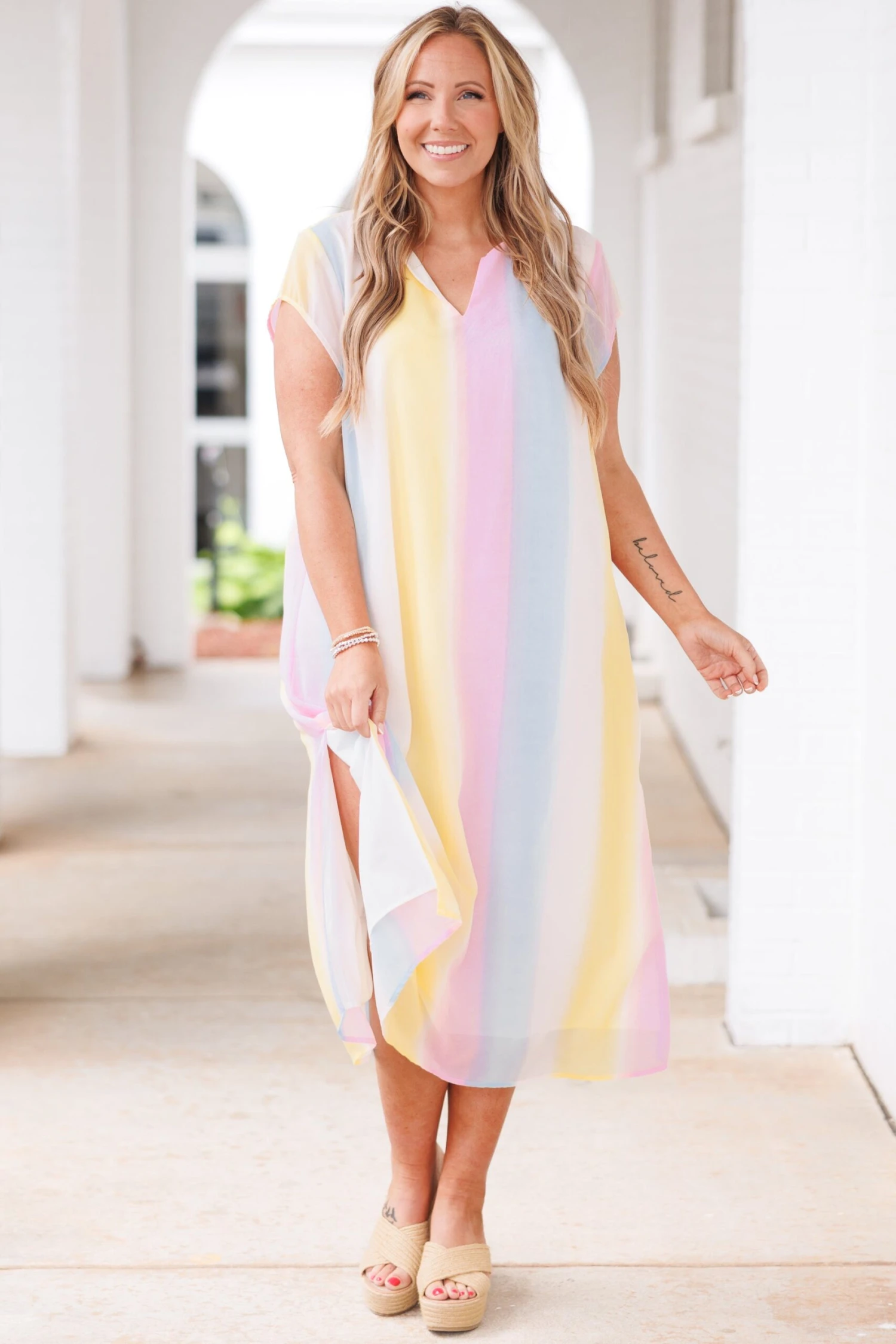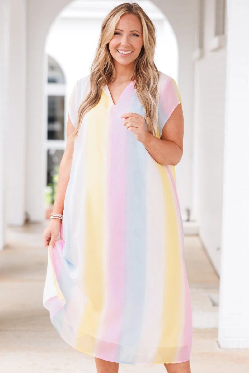 Get ready for the Summer by adding this beauty to your wardrobe! Crafted with a flowy design and beautiful watercolor pattern, this dress is perfect for a date! The light fabric and subtle colors flatter all figures for an unforgettable look!