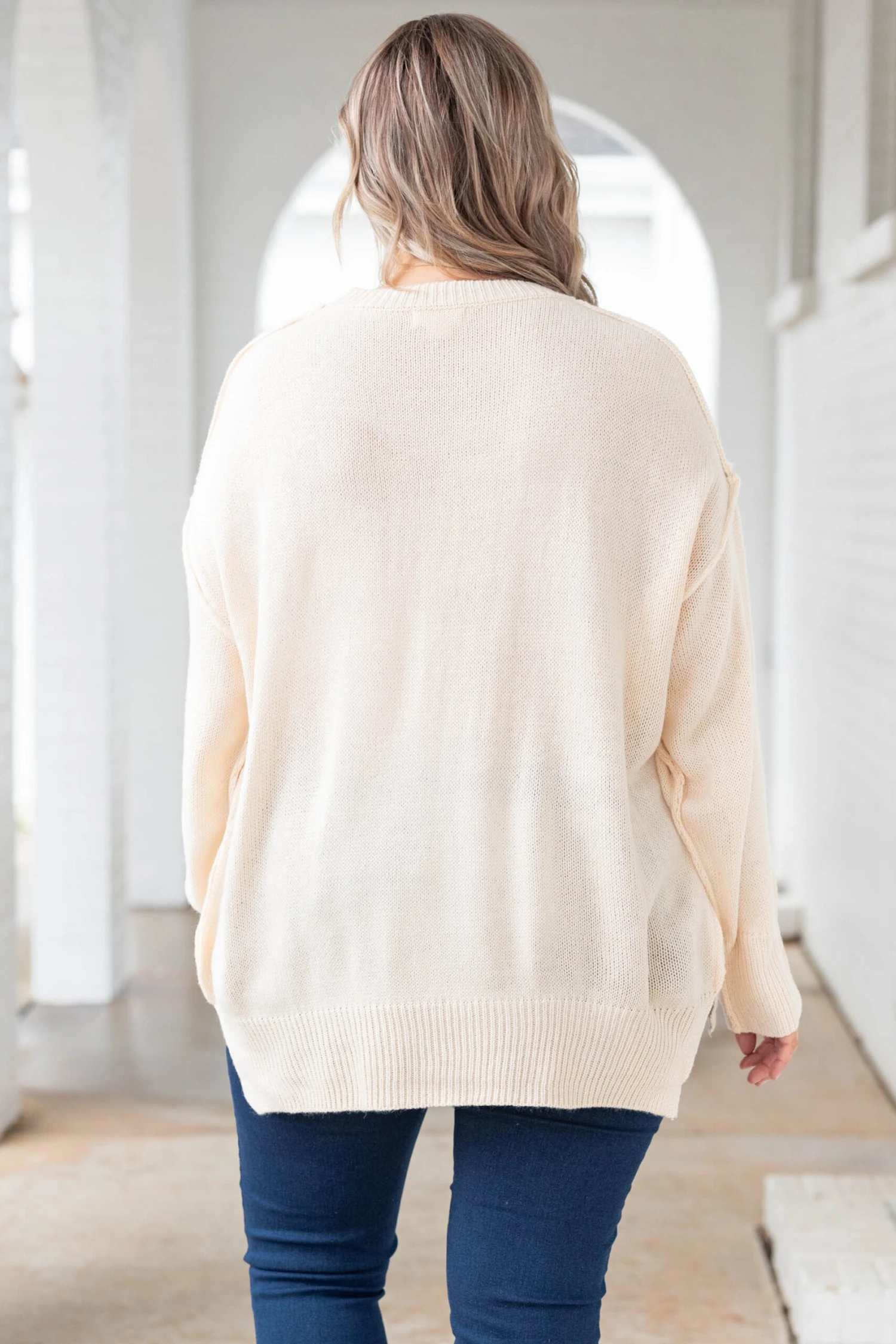This is your sign to grab this lovely sweater! This sweater has a soft ivory color that is so easy to pair with all of your faves! The flowy fit and textured design is perfect for all day wear throughout the season! We see this sweater with jeggings and boots for the ultimate look!