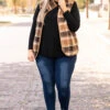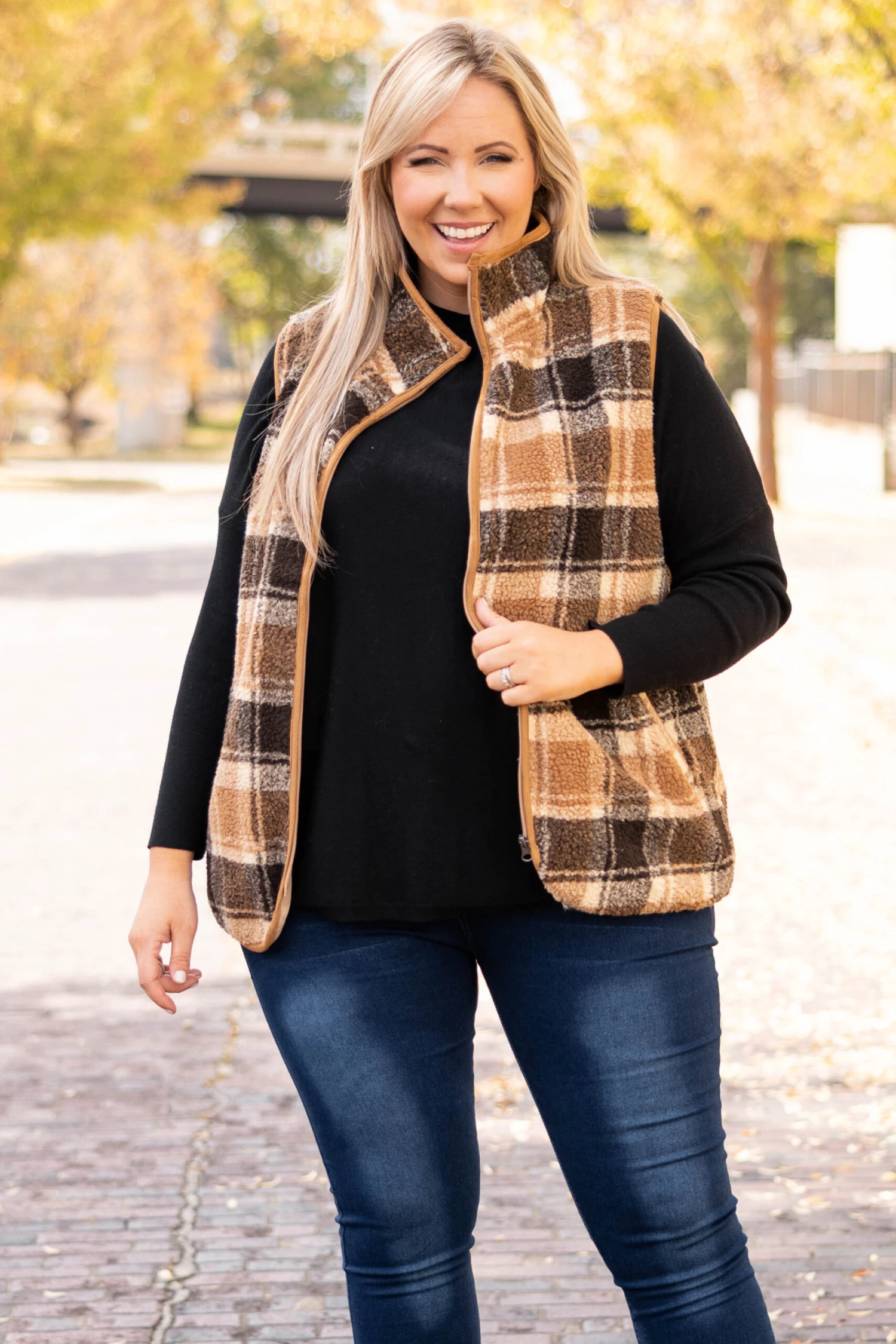 Talk a walk through nature in this lovely vest! This vest has a neutral color with a trendy plaid pattern that is just in time for the season! The functional zipper and pockets are so sweet! Style this vest over a sassy dress or a solid top and jeggings for a classic chic look!
