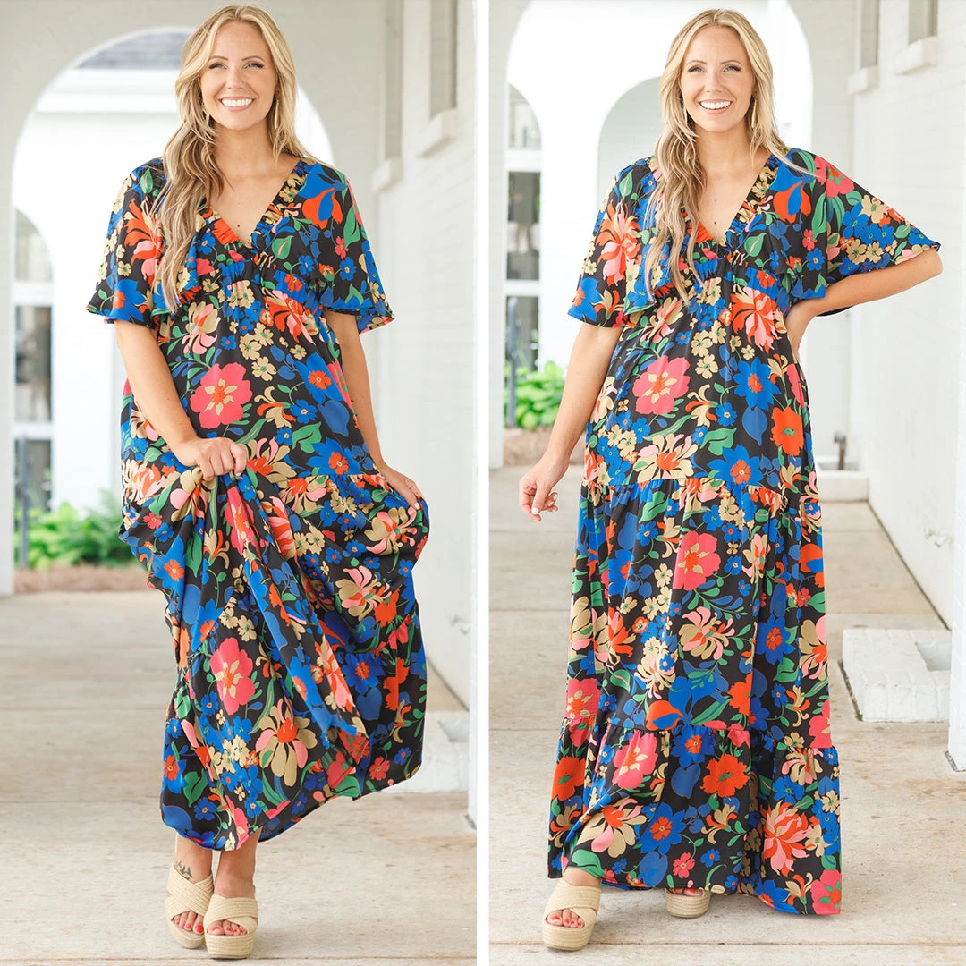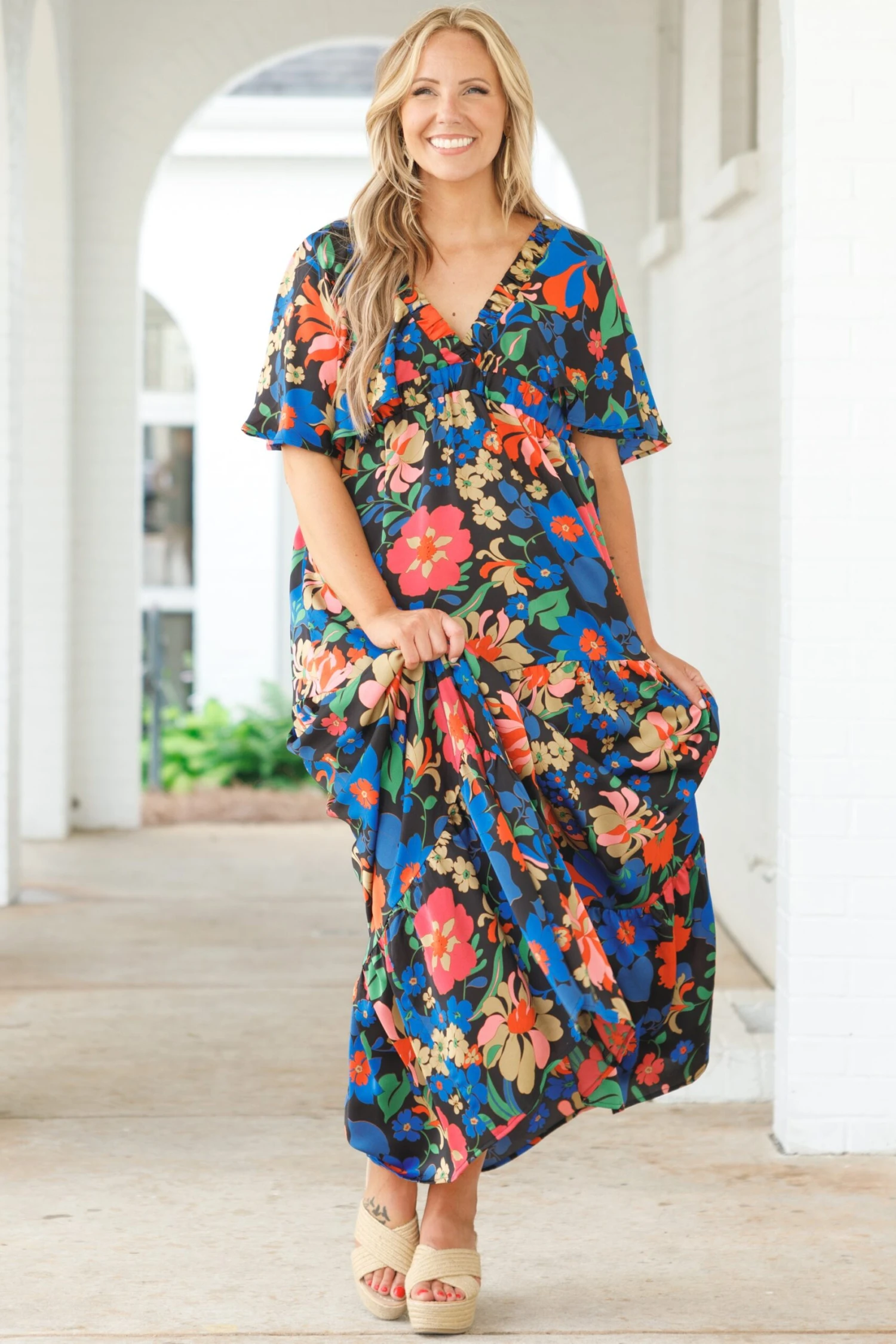 Take a walk through the flowers in this beauty! This dress could easily be your new favorite dress for the season! The lovely black floral and flirty v-neck design is a must-have! You’ll love how flowy and figure flattering it truly is! Style this dress with heels or wedges for an effortlessly chic look!