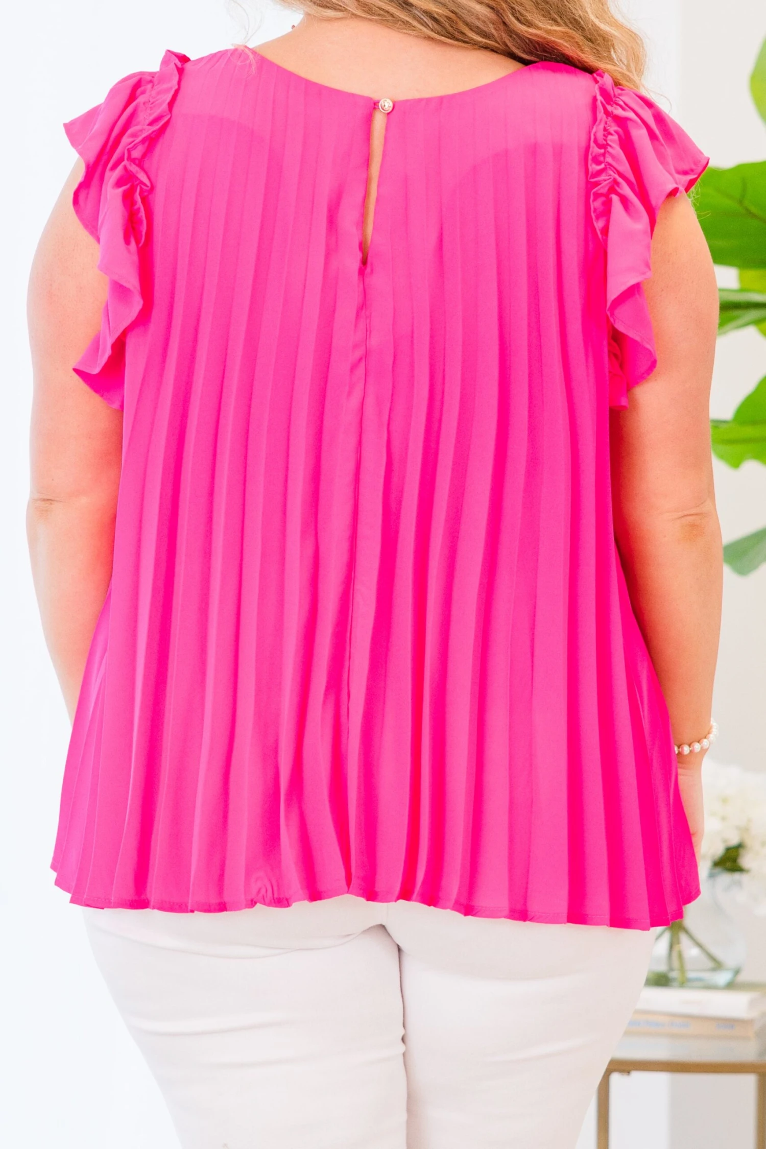 Elevate your work wardrobe with our Want To Be Here Top! Featuring delicate pleated details, flutter sleeves, and a keyhole button closure on the back, this hot pink top brings a touch of sophistication to any professional setting! Create a polished look while feeling confident and stylish!