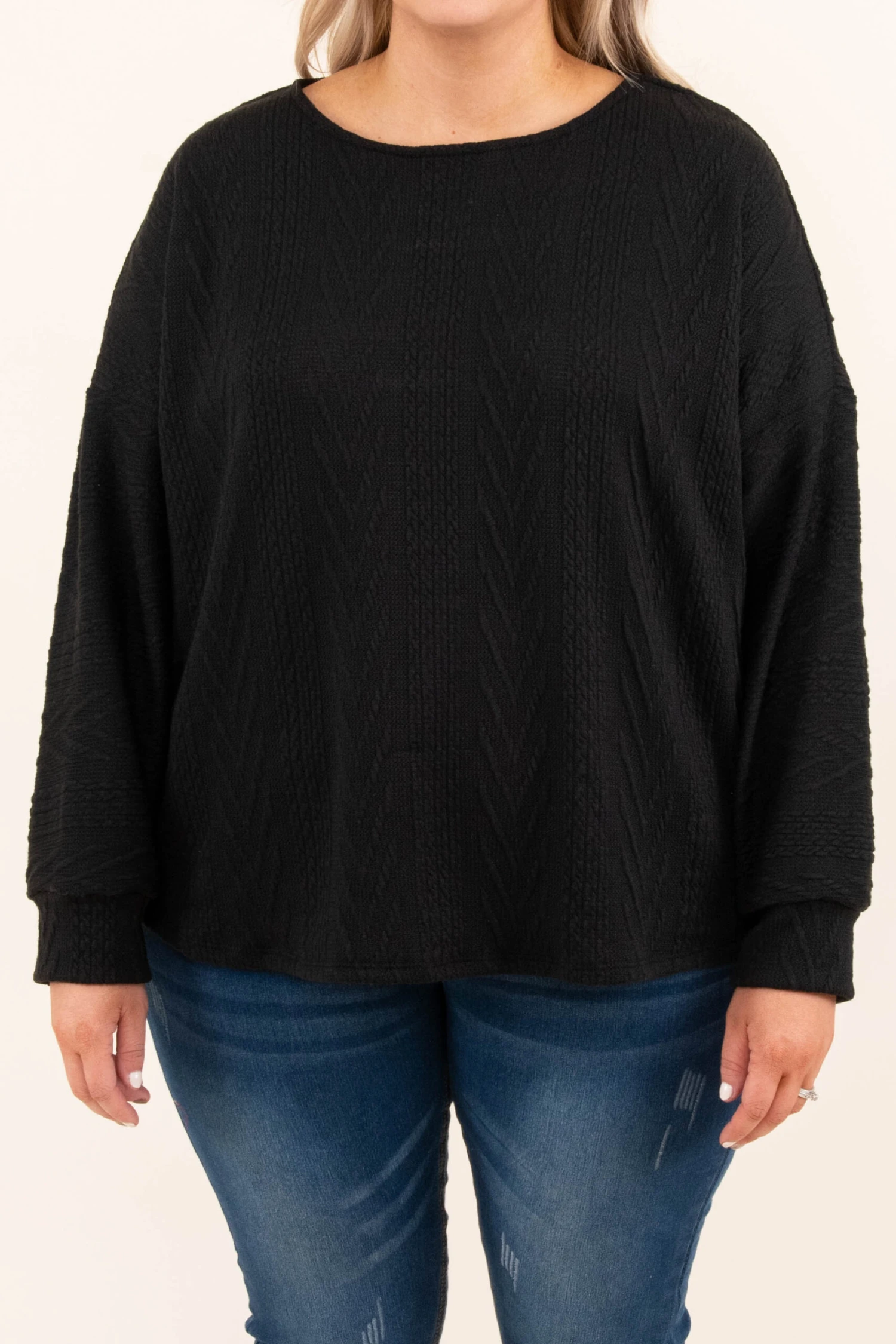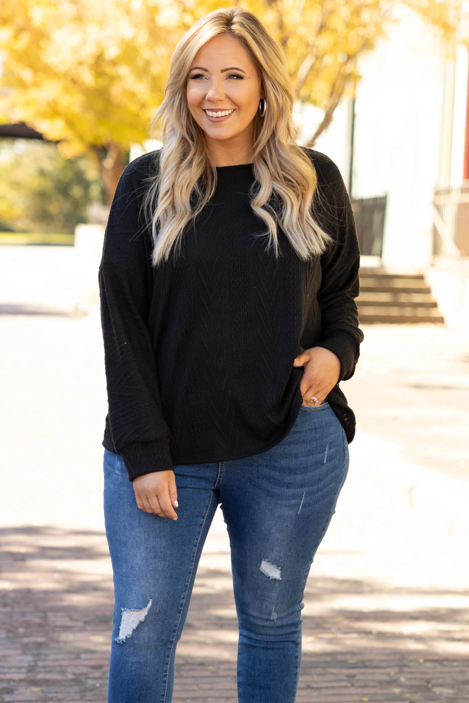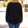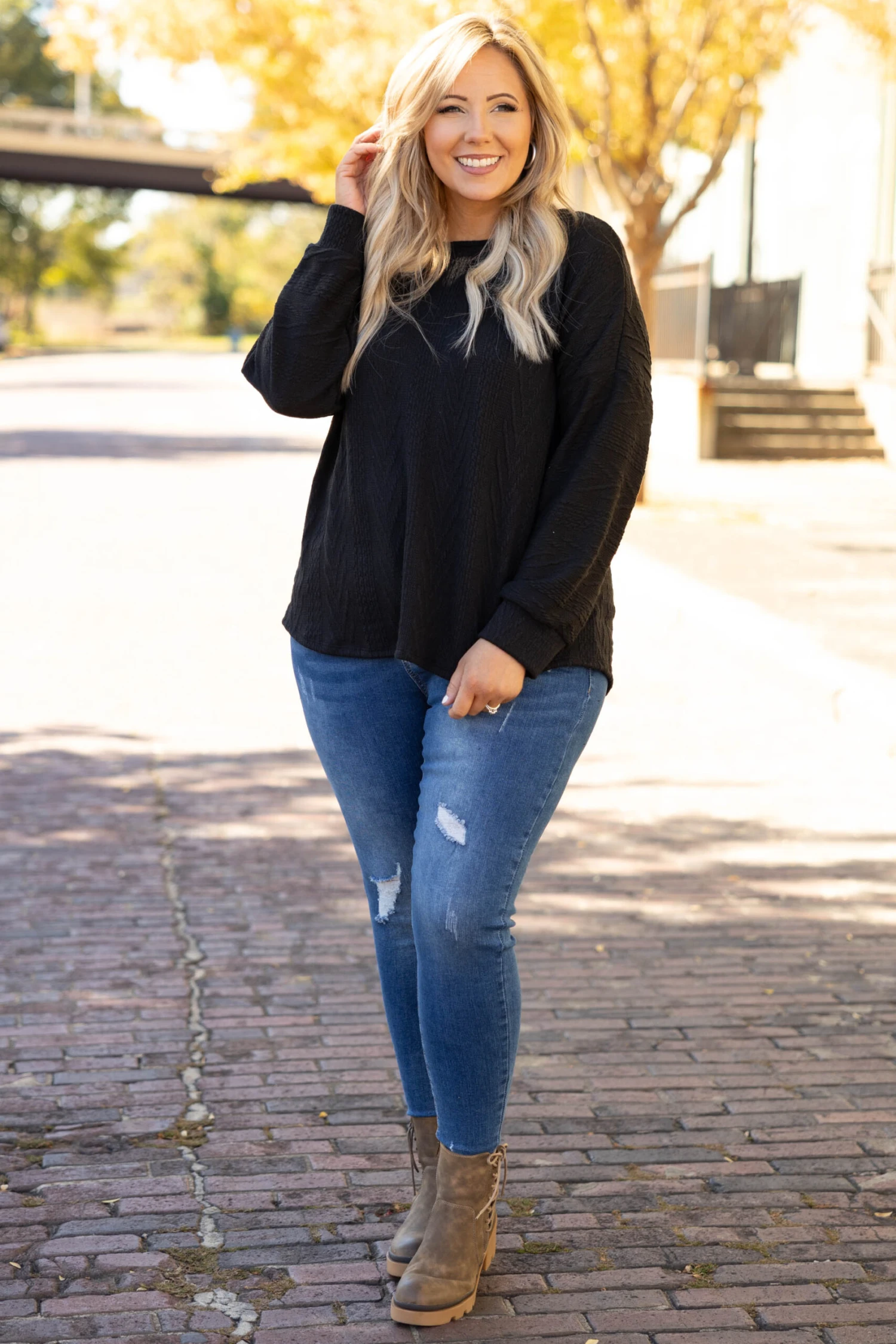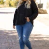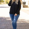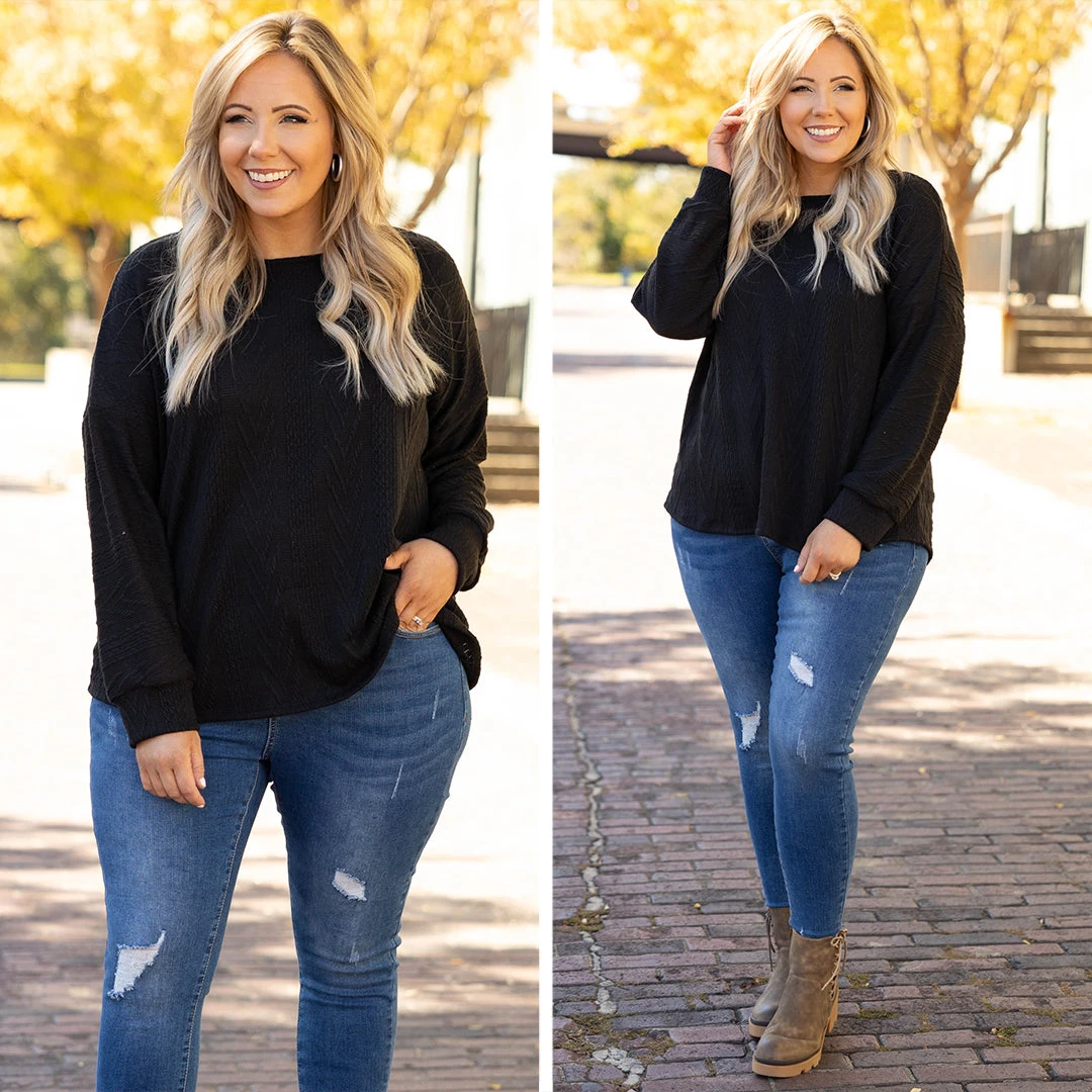 You will want to rock this chic top 24/7! It has a super relaxed, oversized fit and a dreamy textured & soft fabric! We love the classic black color and how easy it is to wear casual or dressed up! Pair it with leggings and sneakers for a chill day or dress it up with a statement necklace and skinnies for a night out!