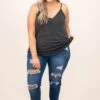 Feeling warm from the sun? Take off your kimono and reveal this chic tank! This tank is perfect for layering with your favorite pieces and wearing on its own! It’s easy to dress up or down and looks good with everything in your wardrobe! Not to mention how flattering the fit is! Simply, style this tank with skinnies and booties for an effortlessly beautiful outfit, and add a colorful kimono for a bold addition!Â