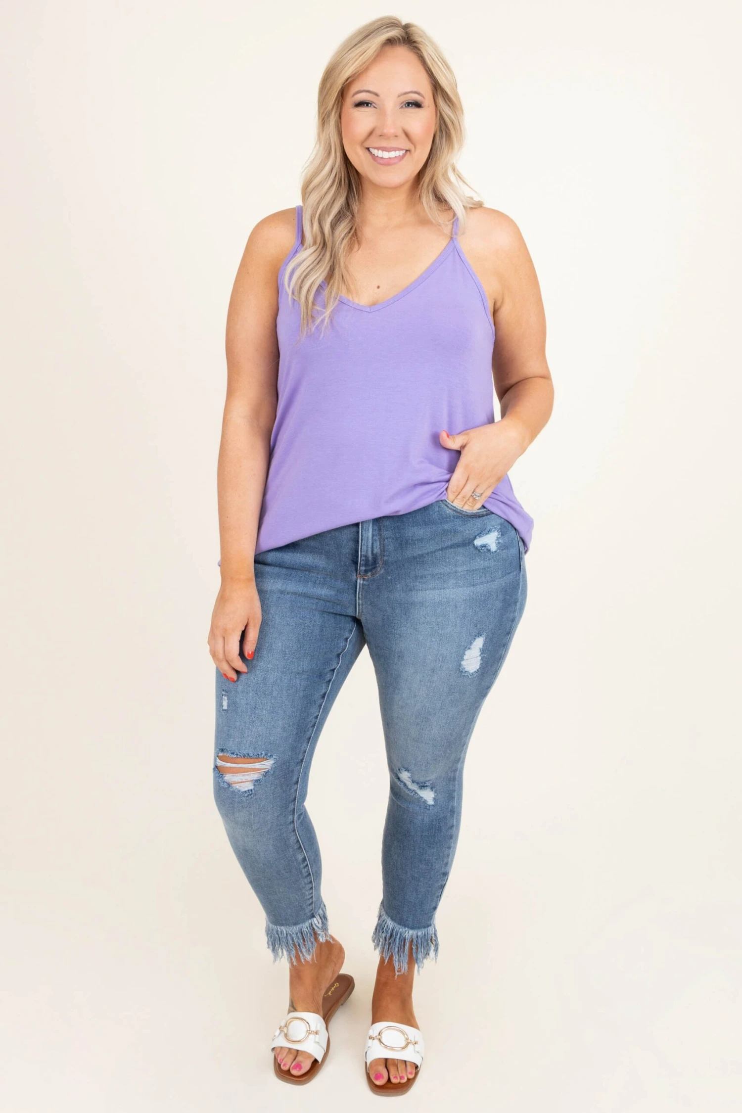 Feeling warm from the sun? Take off your kimono and reveal this chic tank! This loose-fitting tank is perfect for layering with your favorite pieces and wearing on its own! It’s easy to dress up or down, while the tunic length looks good with everything in your wardrobe, and the purple color is gorgeous! Not to mention how flattering the fit is! Simply, style this tank with skinnies and sandals for an effortlessly beautiful outfit and add a colorful kimono for a bold addition!Â